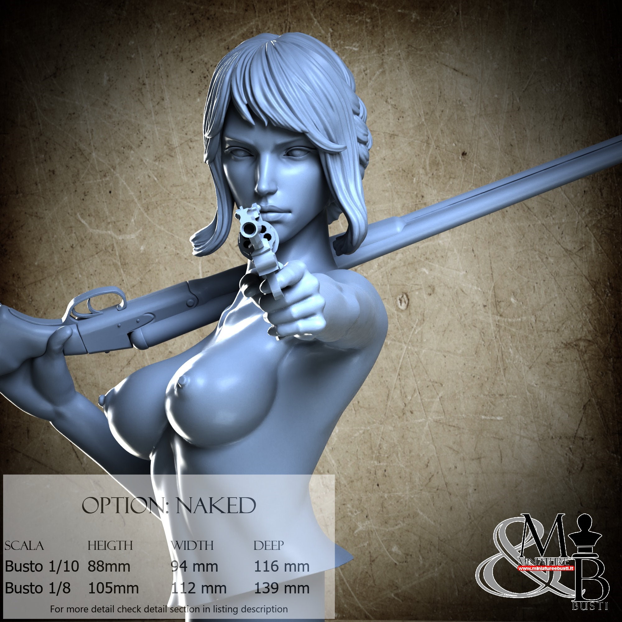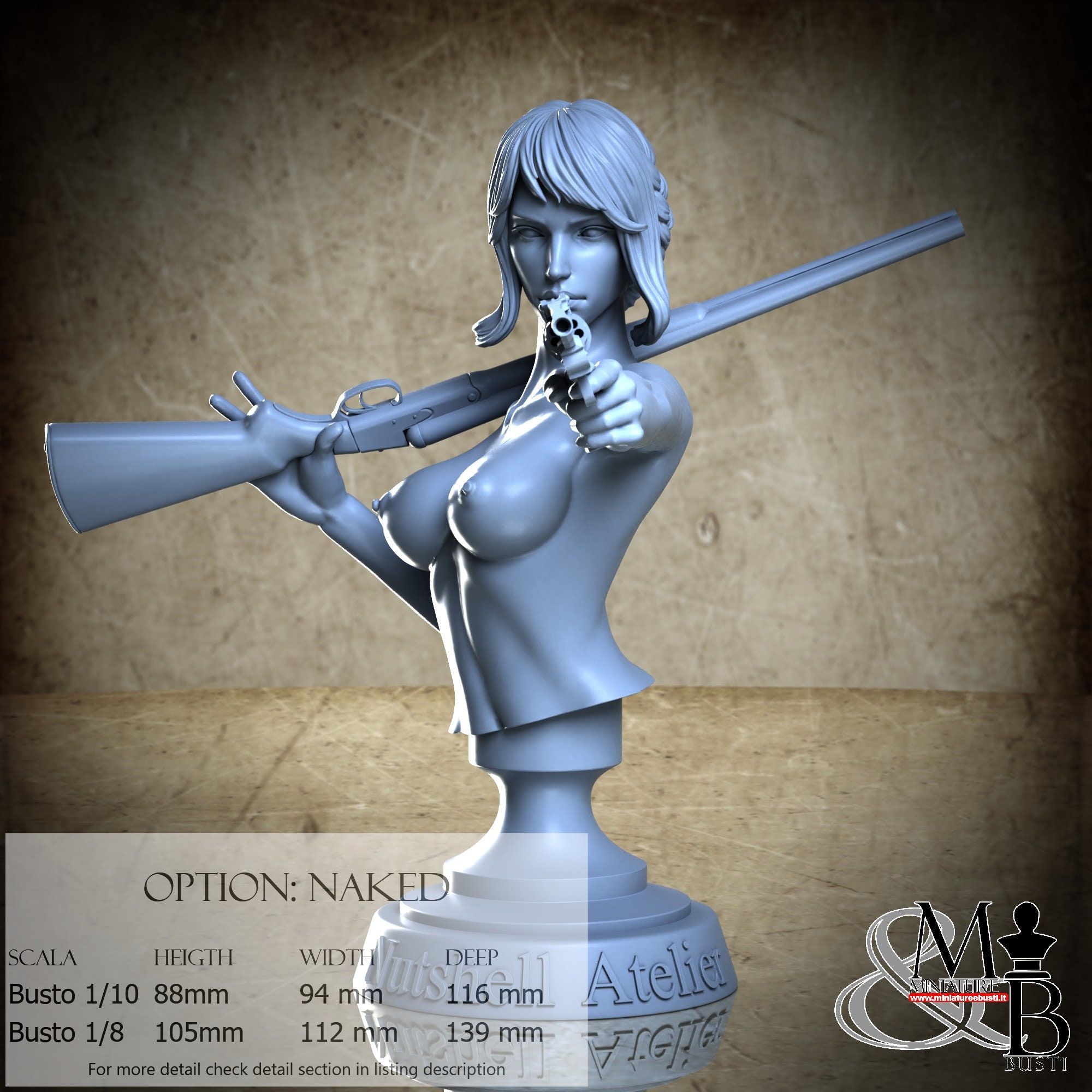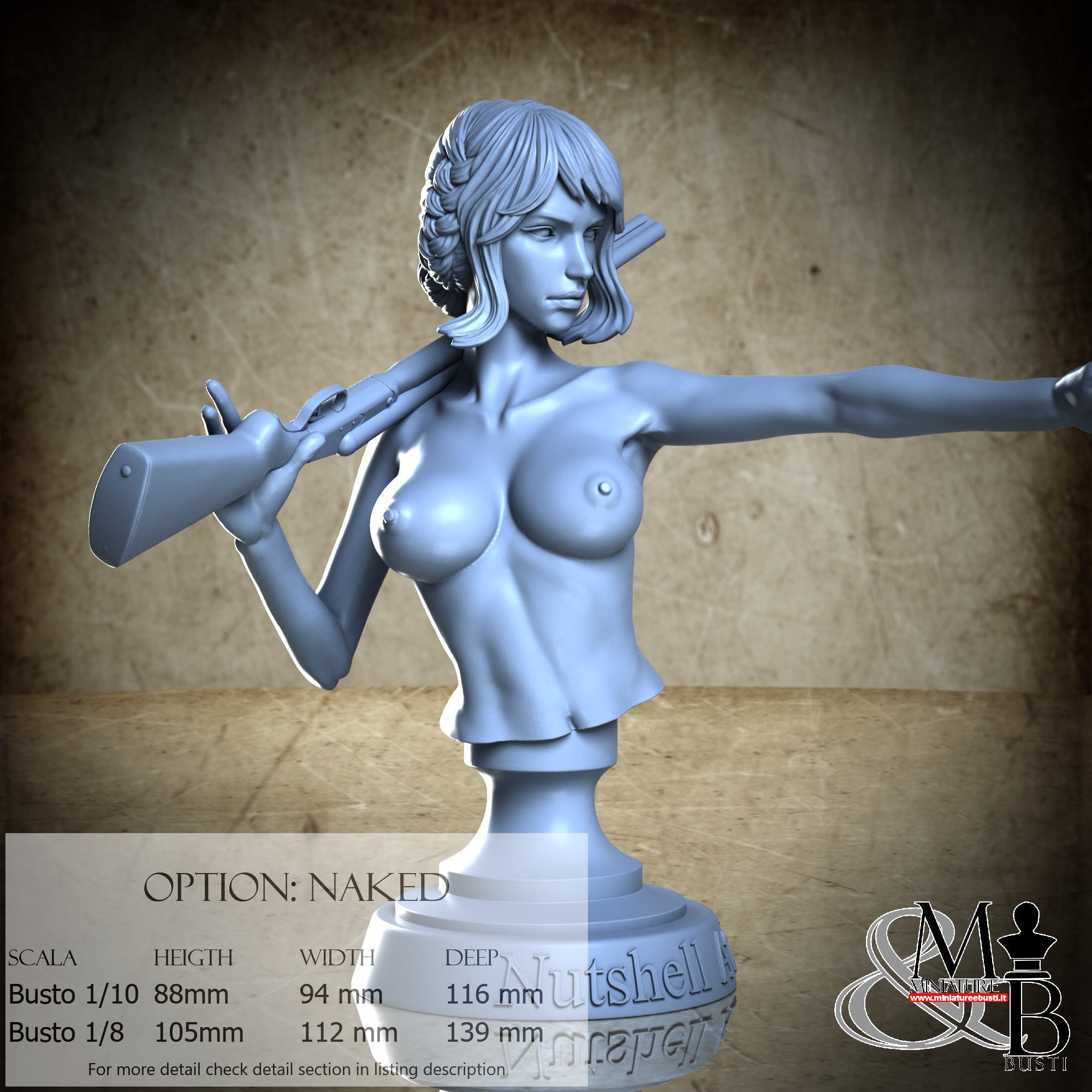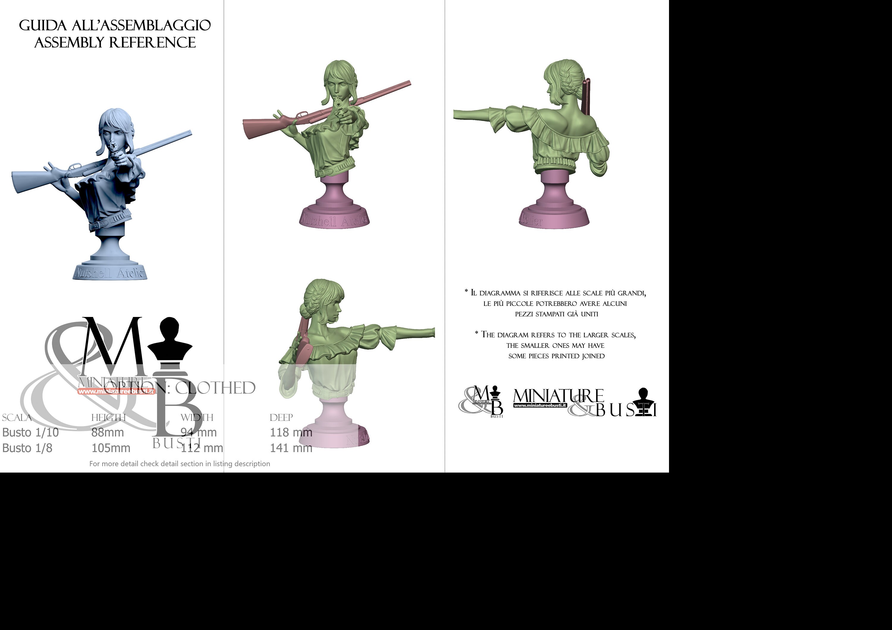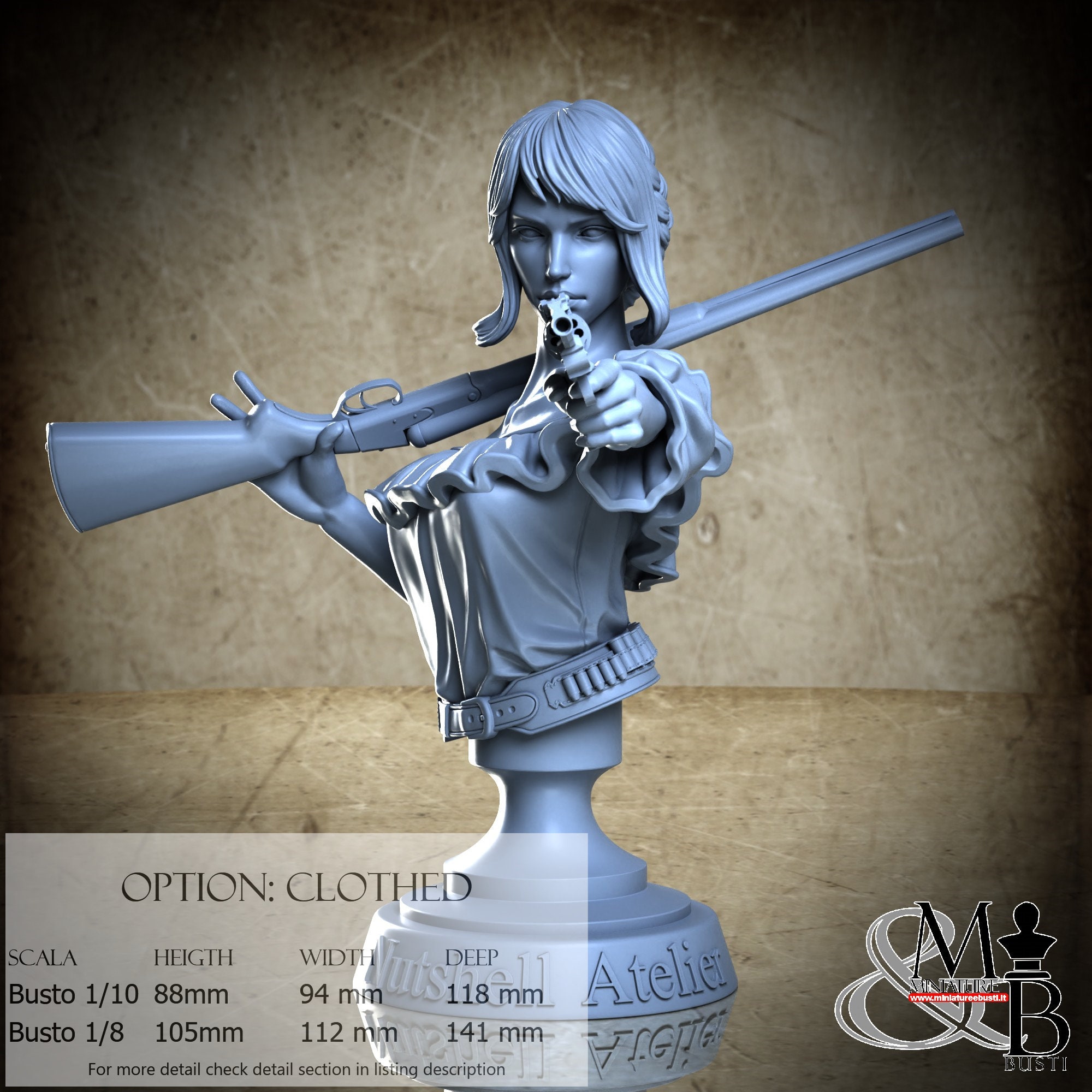 Bust Scale 1/10, cost €. 35.00 (Height: 88 mm, Width: 94 mm, Depth: 116 mm), composed of the following components: