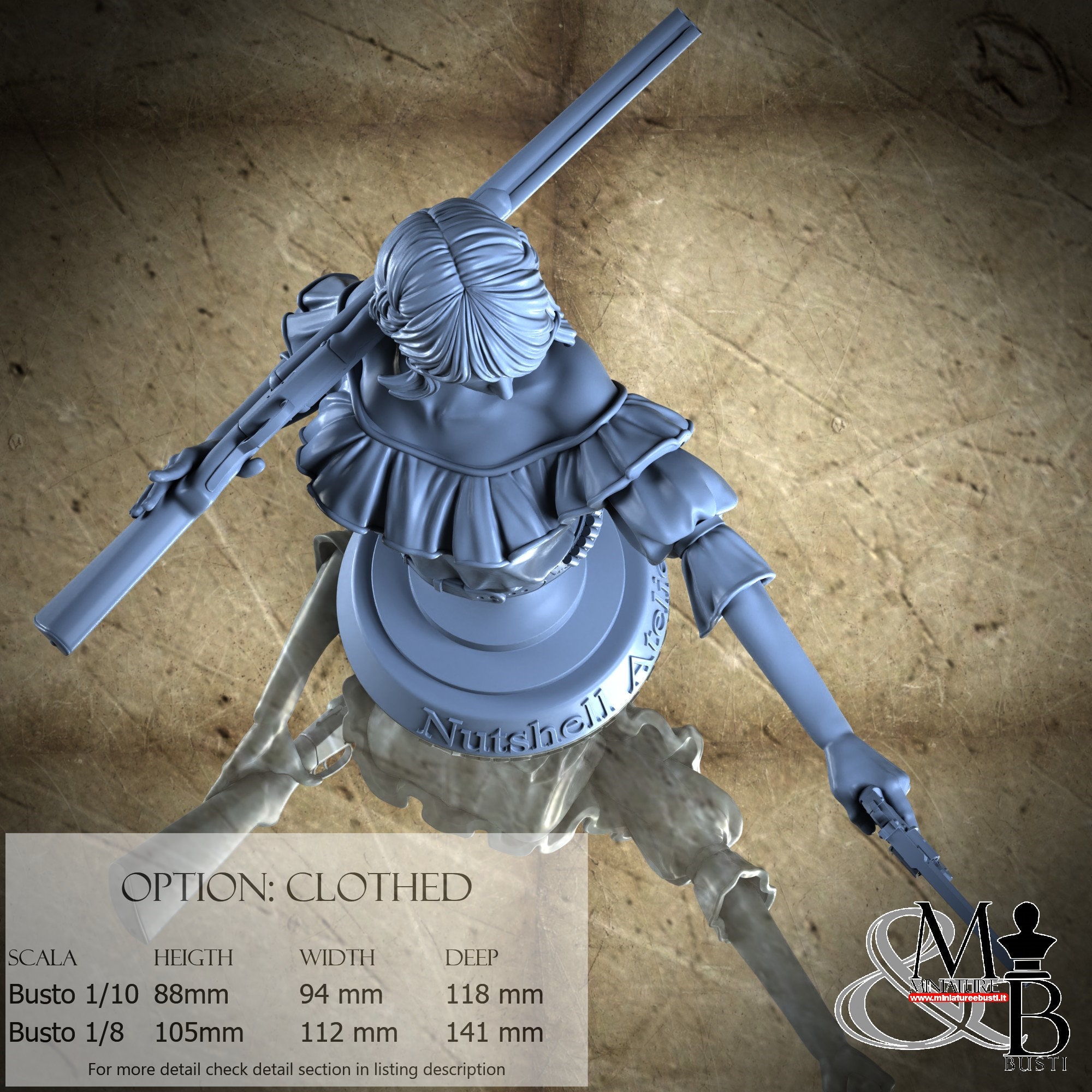 Clothed variant, available in the following scales and costs: