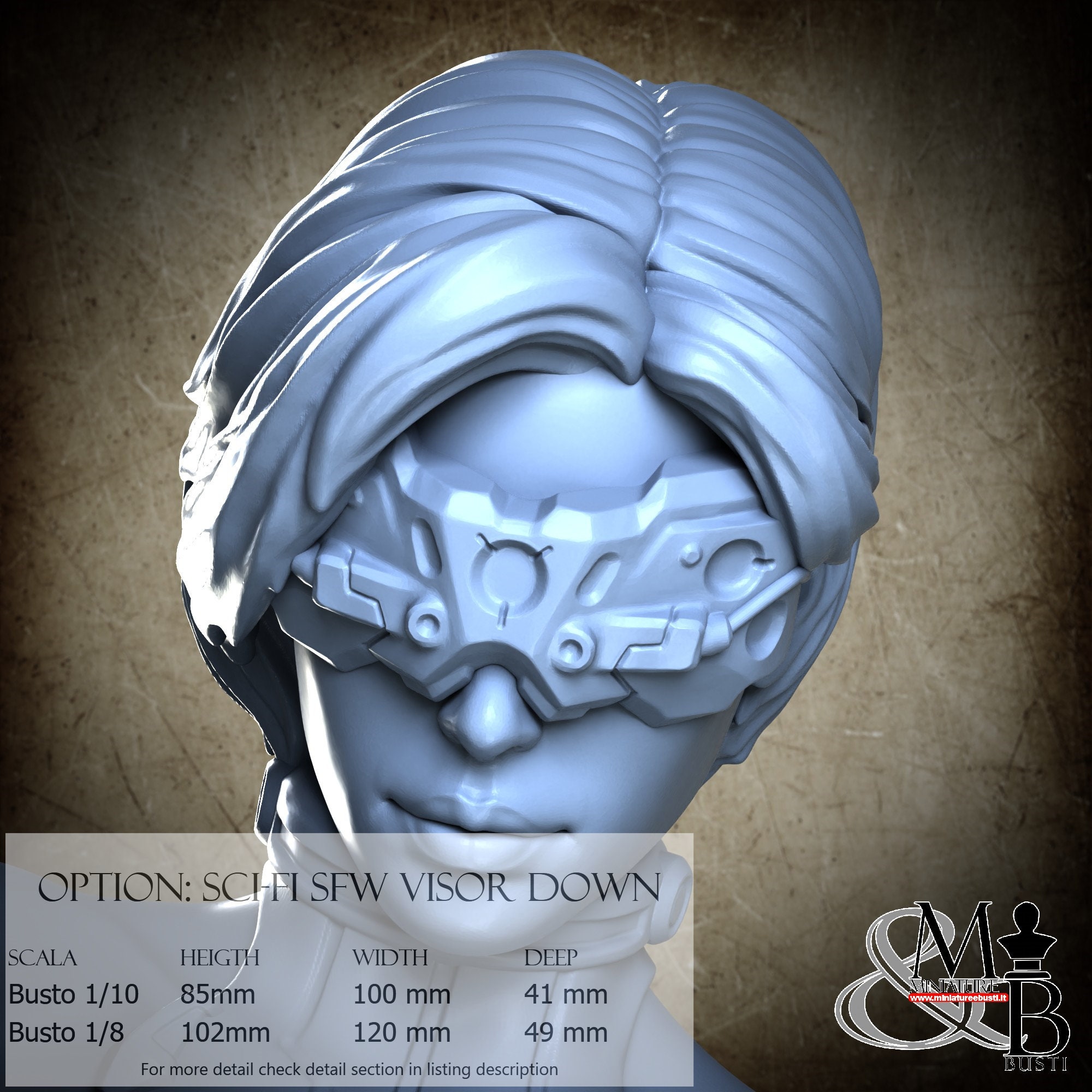 Sci-Fi SFW visor down variant, available in the following scales and costs: