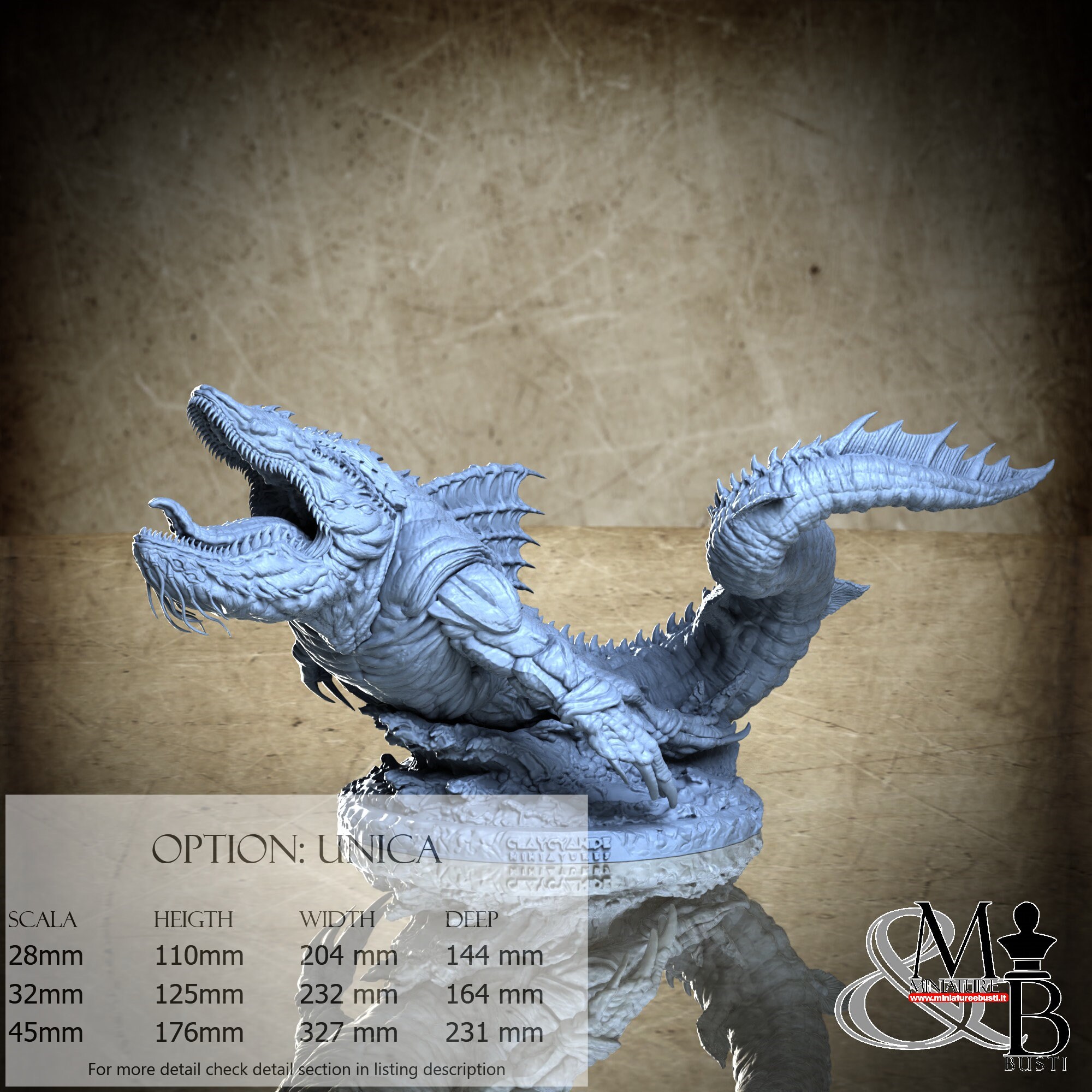 - Base (1 piece) in Resin: Height: 46 mm, Width: 115 mm, Depth: 115 mm