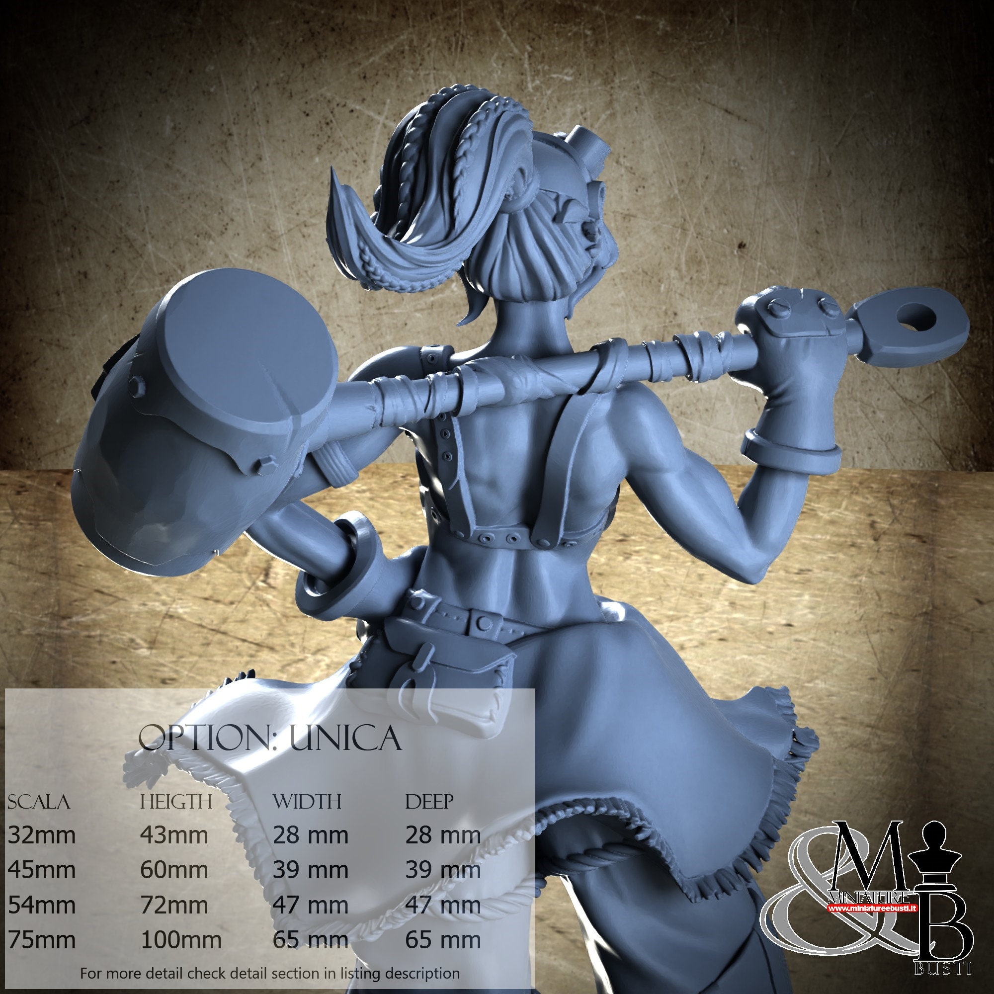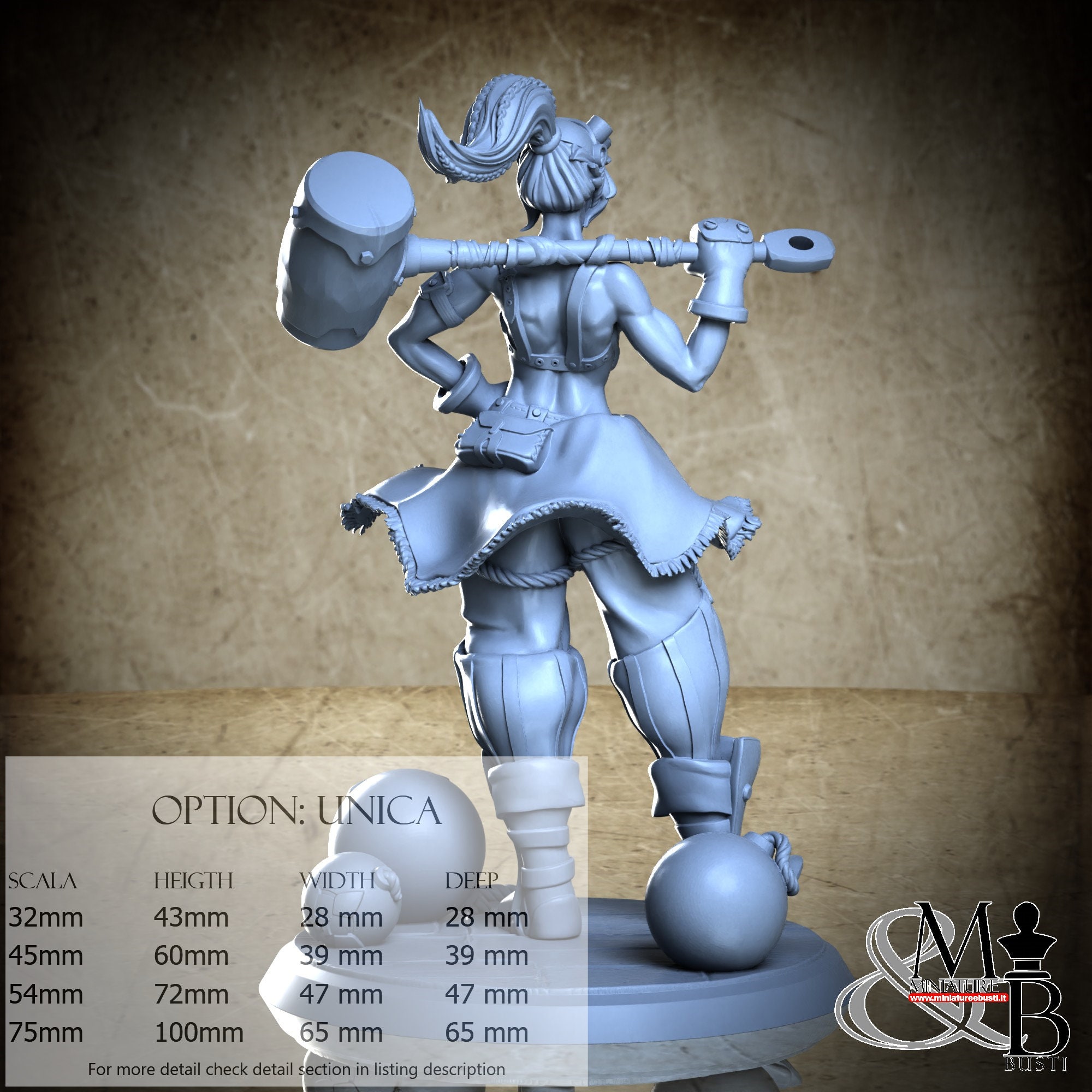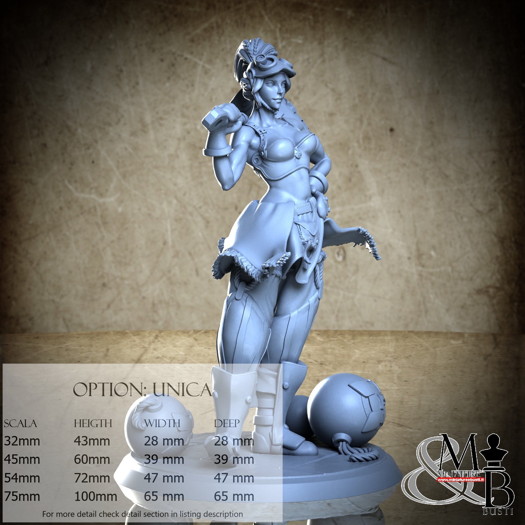 - Figure (1 piece) in Resin: Height: 40 mm, Width: 26 mm, Depth: 19 mm