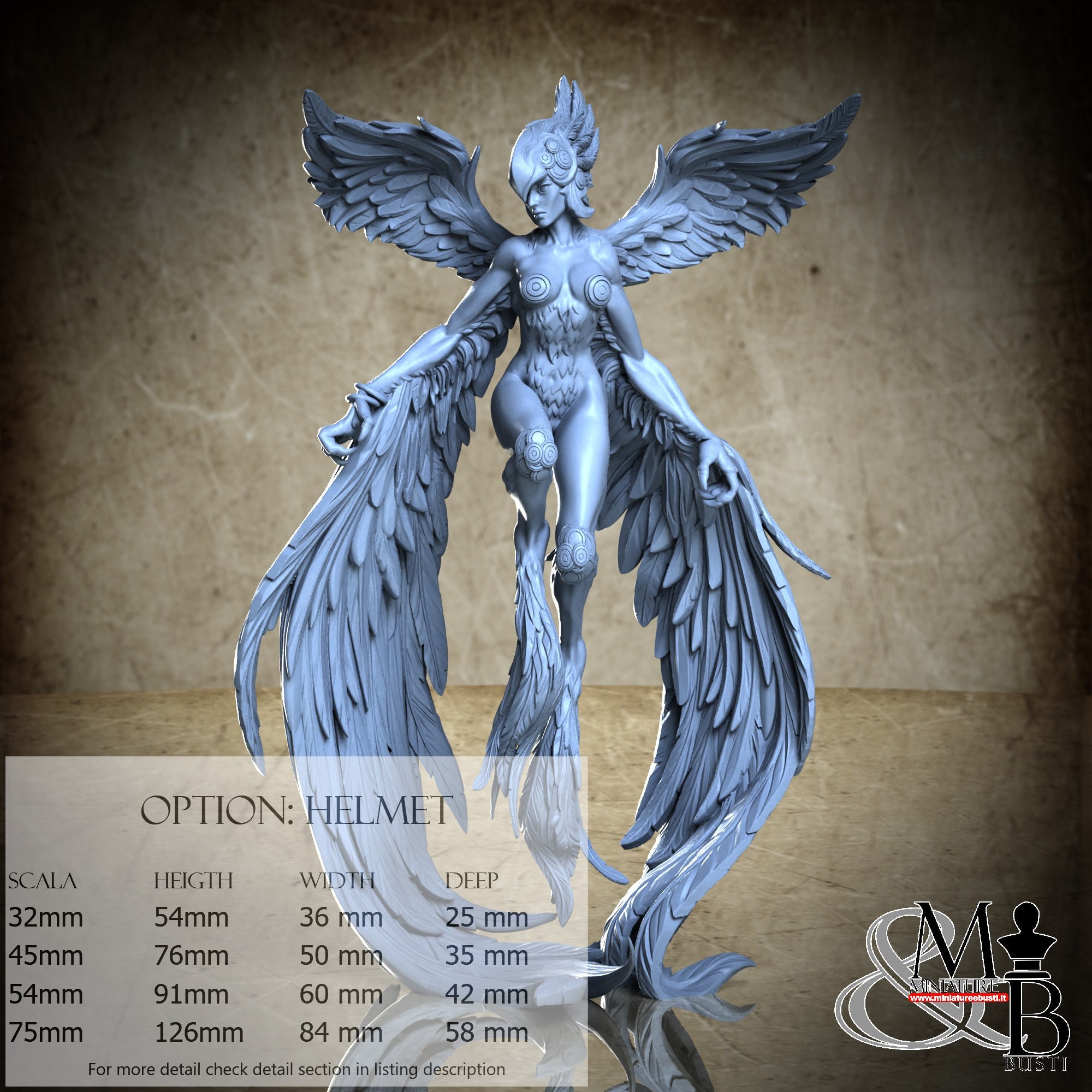 - Figure (1 piece) in Resin: Height: 54 mm, Width: 36 mm, Depth: 25 mm