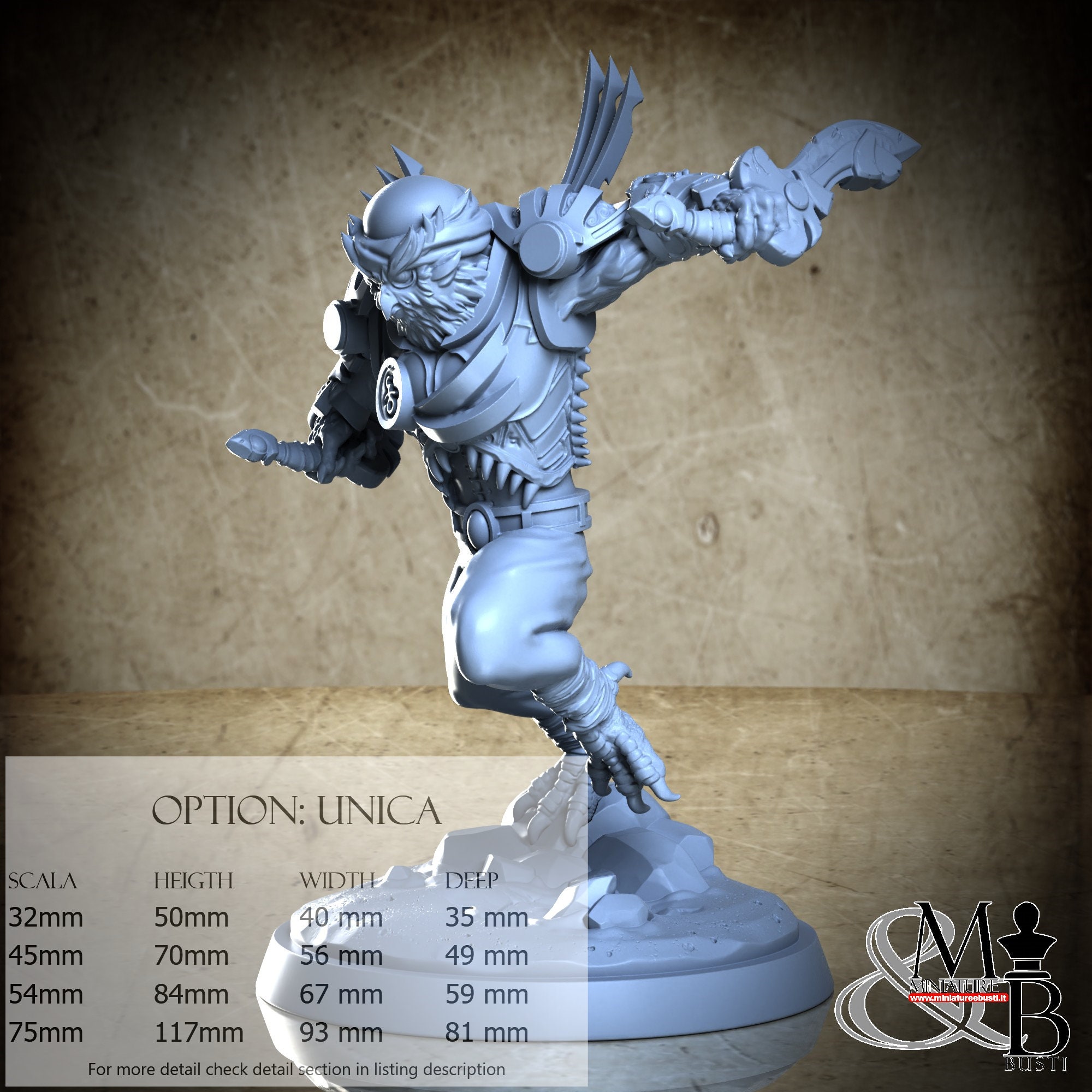 - Scale 32 mm, total measures Height: 50 mm, Width: 40 mm, Depth: 35 mm, €. 9.00