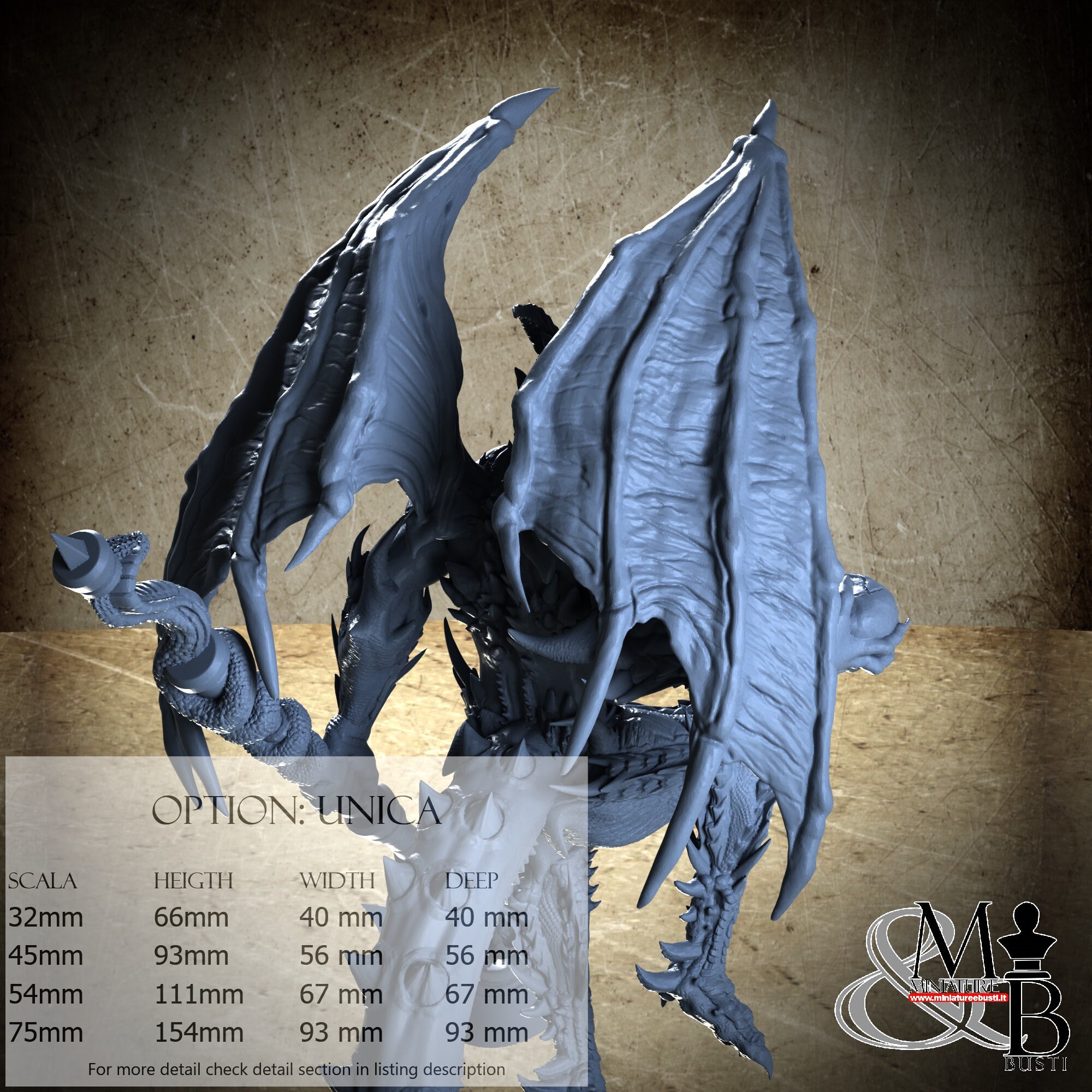 - Base (1 piece) in Resin: Height: 18 mm, Width: 72 mm, Depth: 72 mm
