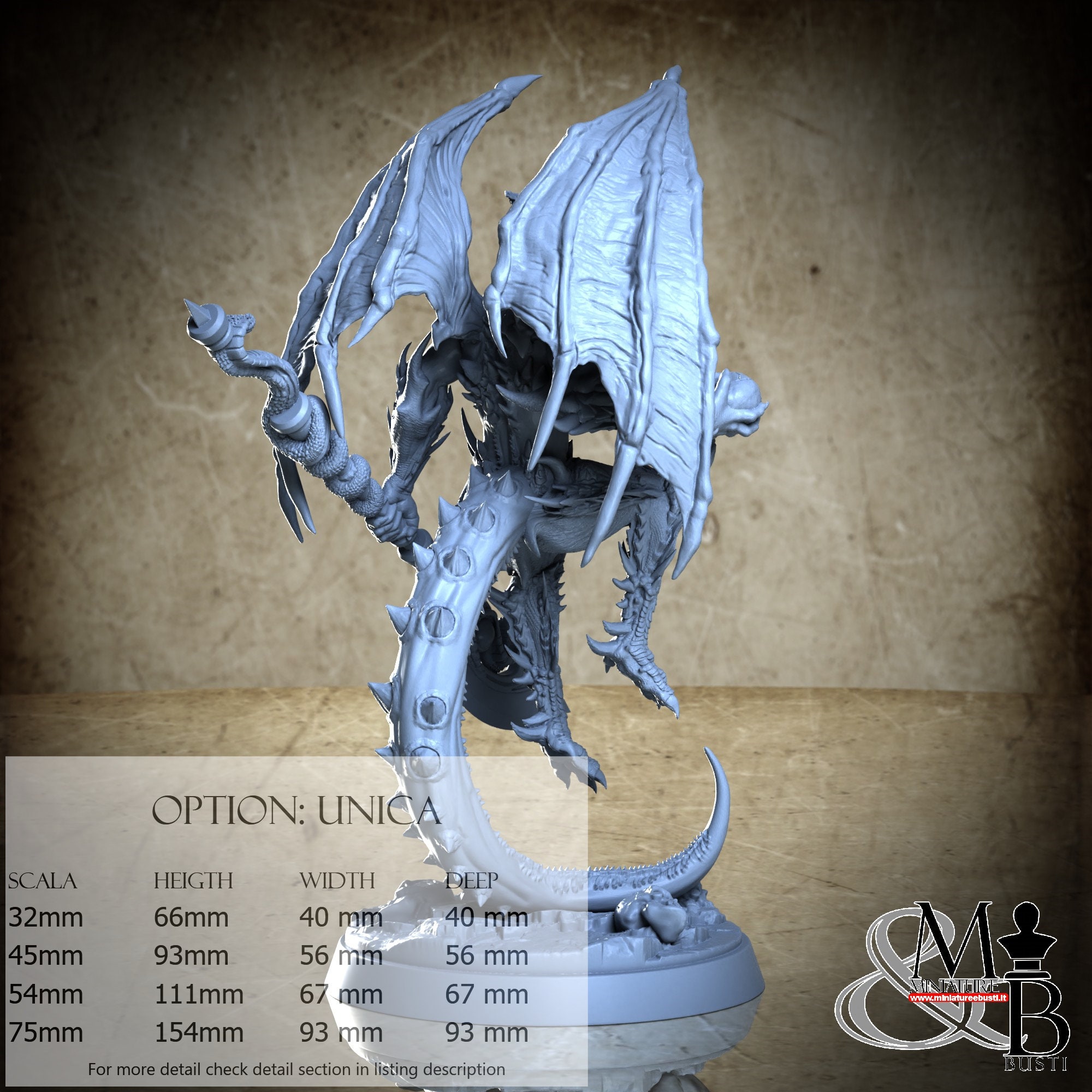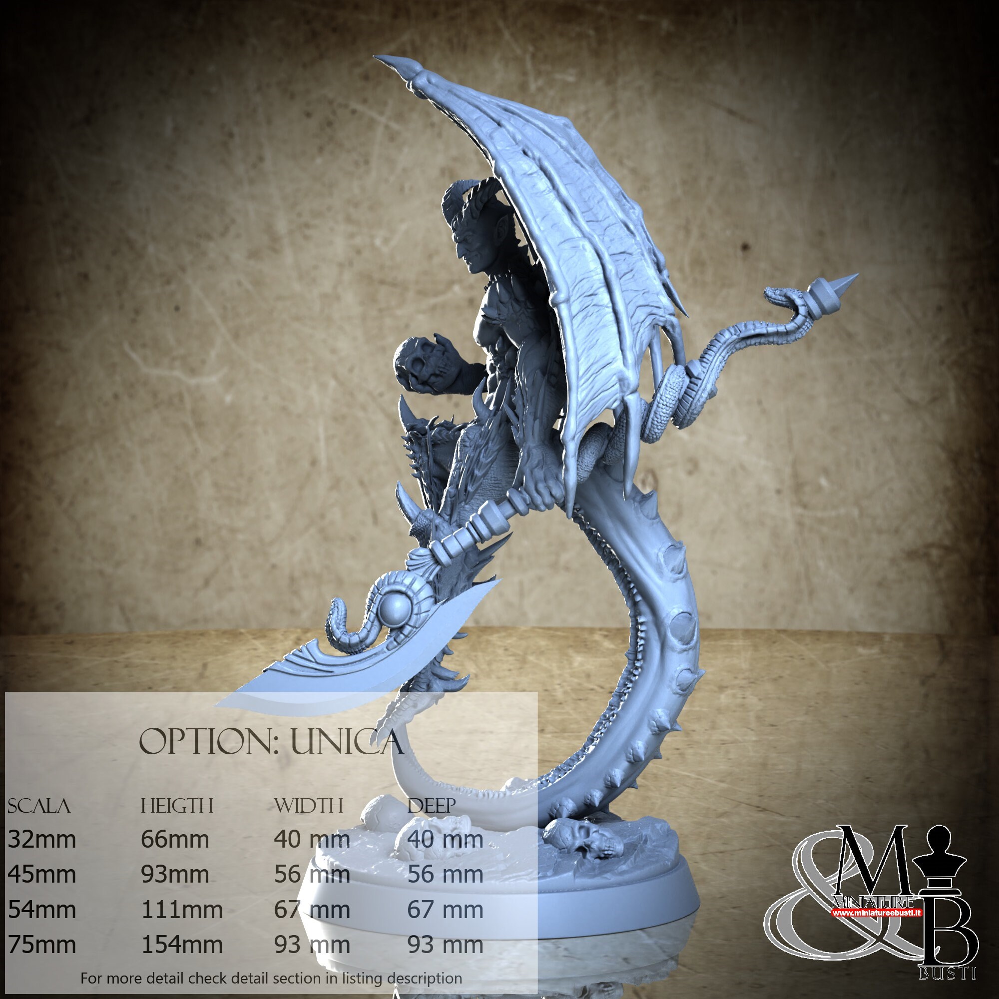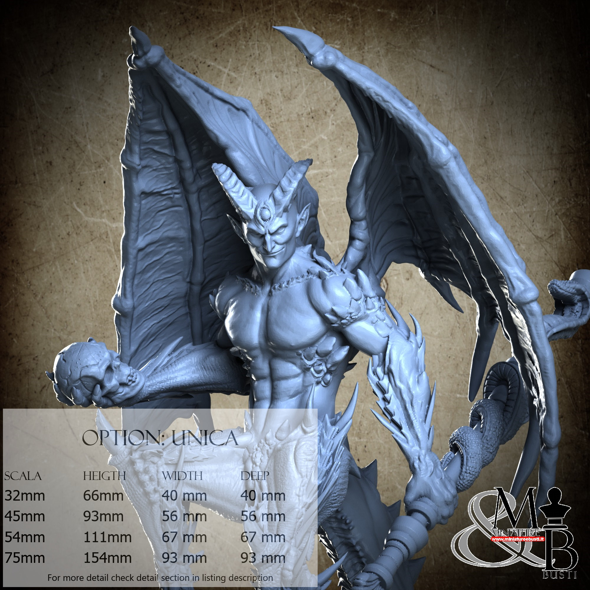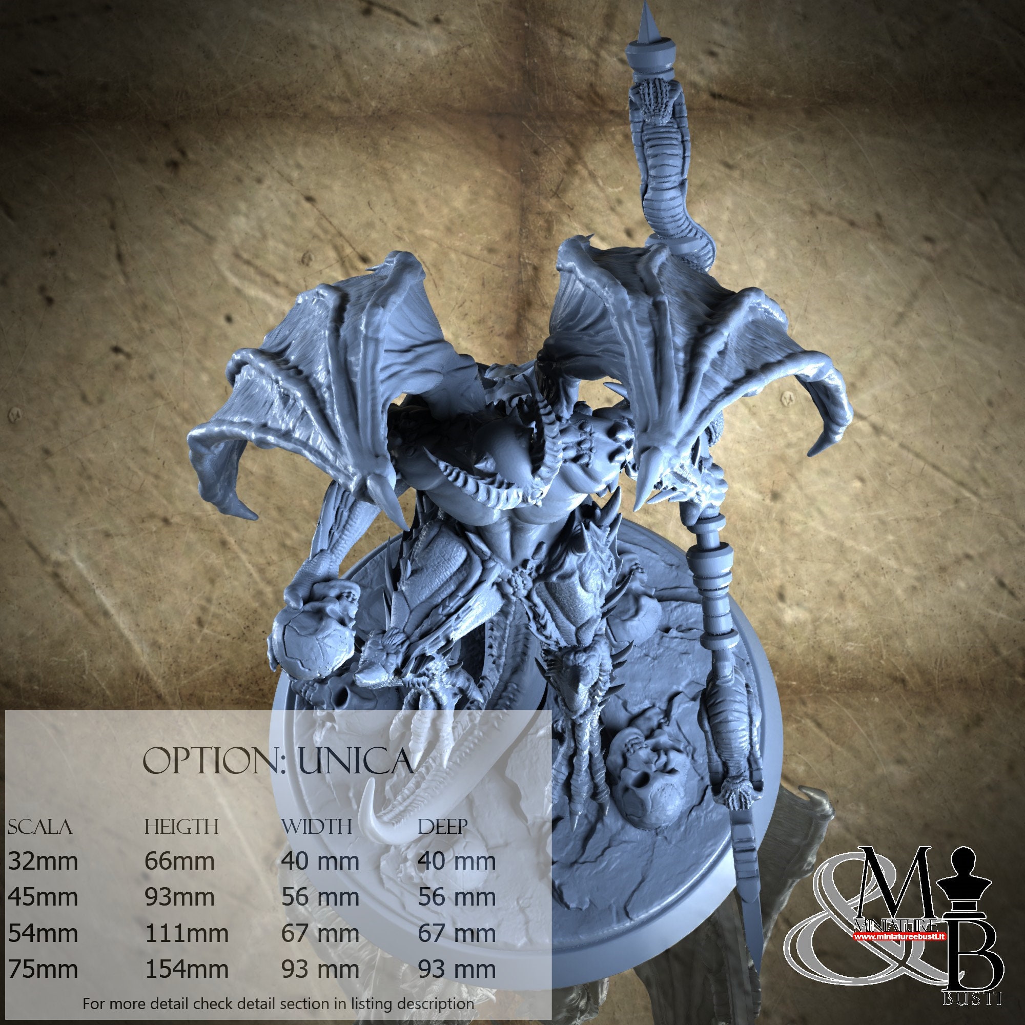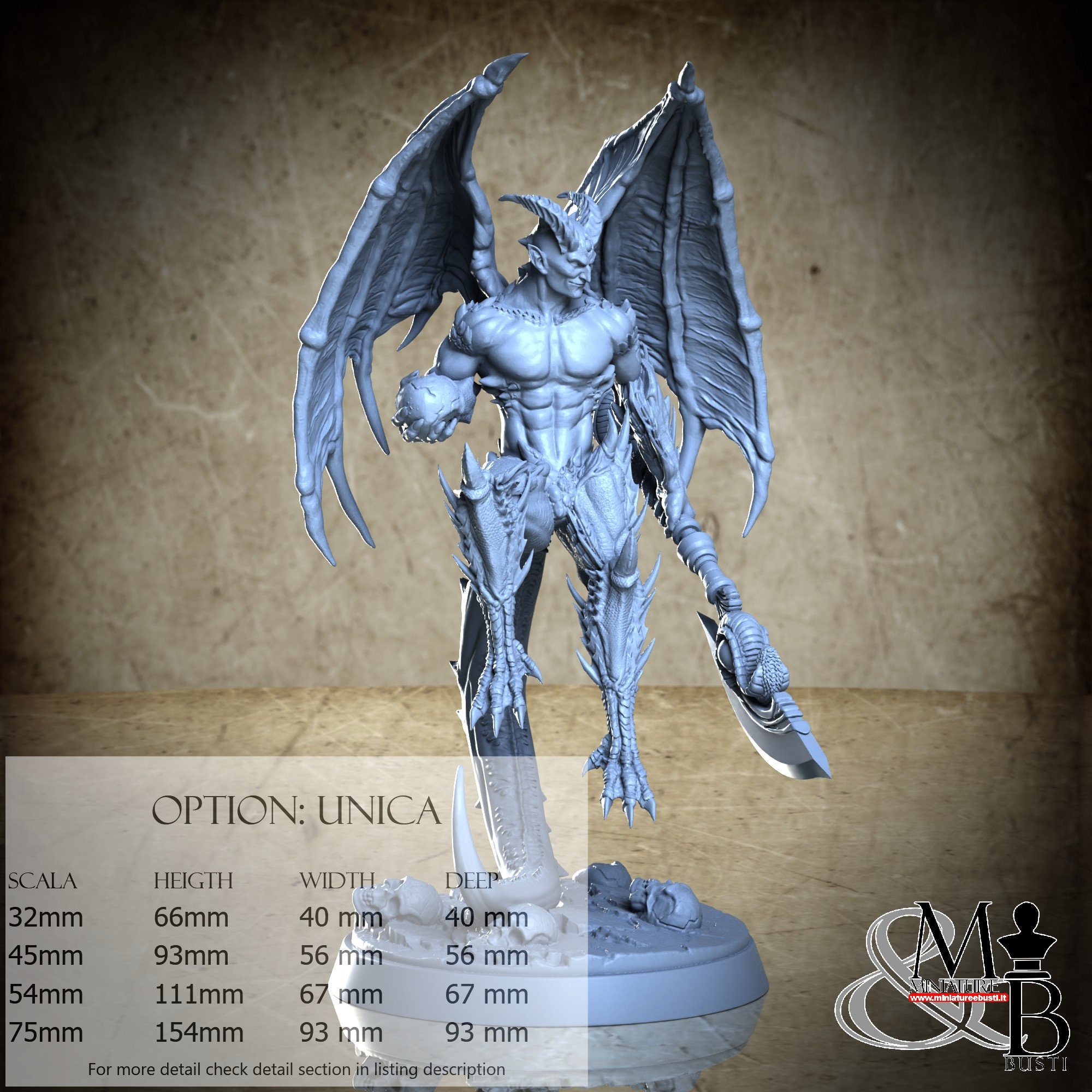 - Figure (1 piece) in Resin: Height: 61 mm, Width: 40 mm, Depth: 40 mm