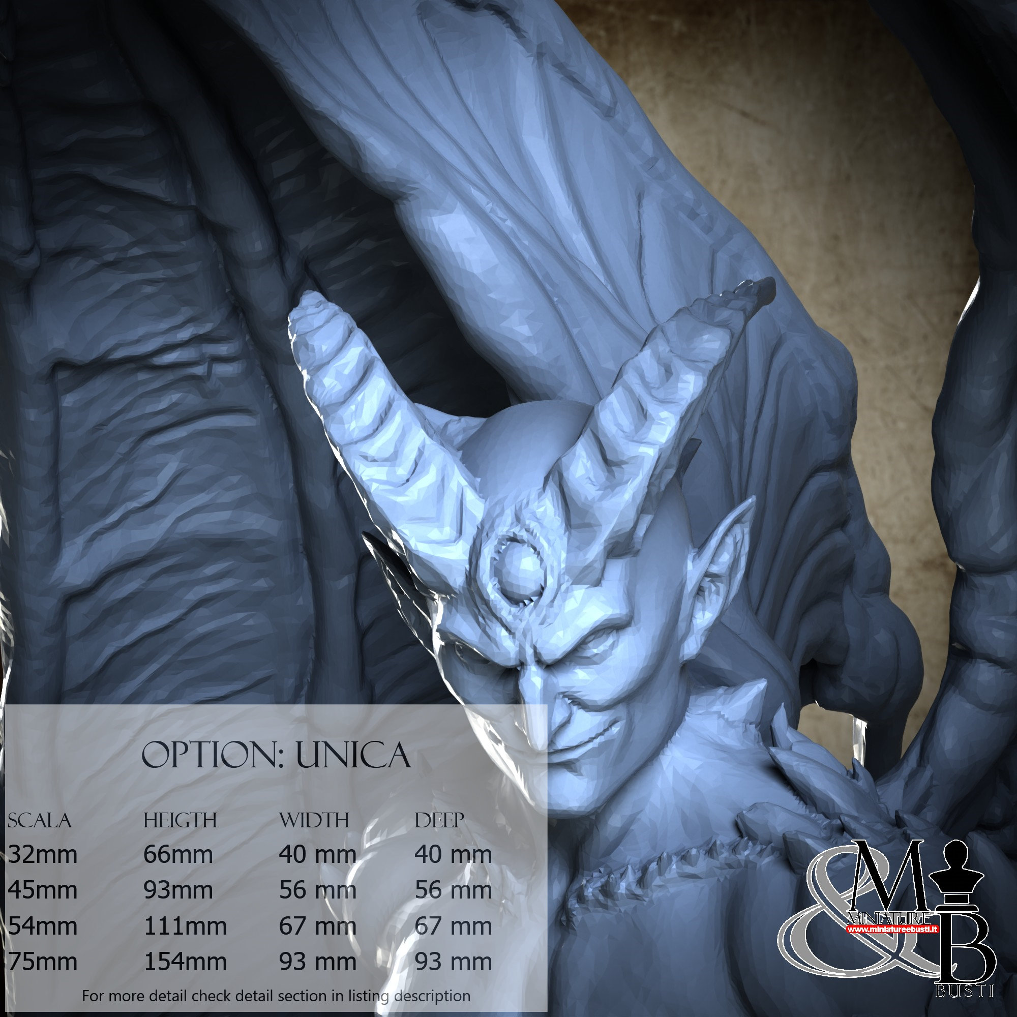 - Figure (1 piece) in Resin: Height: 86 mm, Width: 56 mm, Depth: 56 mm