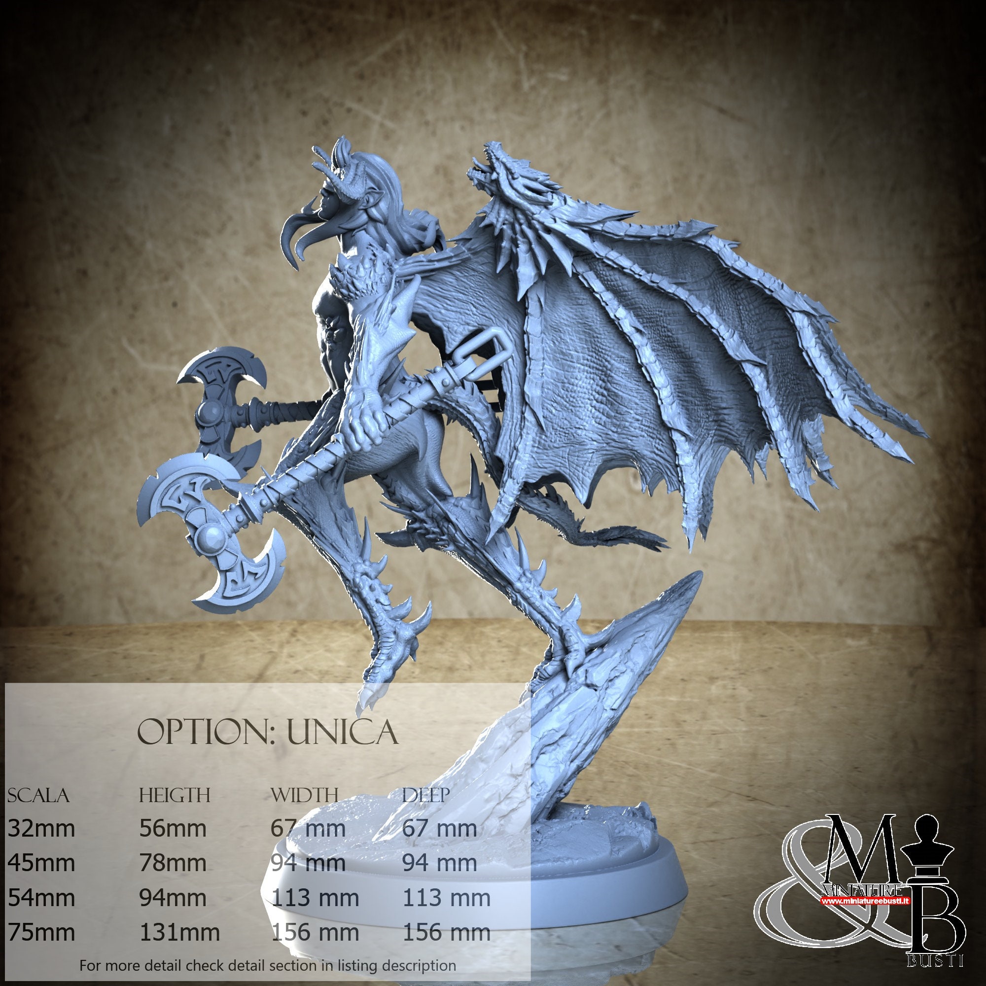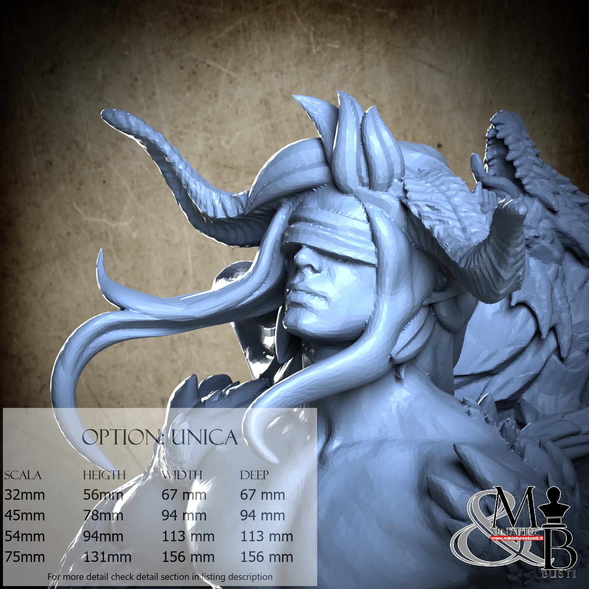 - Figure (1 piece) in Resin: Height: 60 mm, Width: 94 mm, Depth: 94 mm