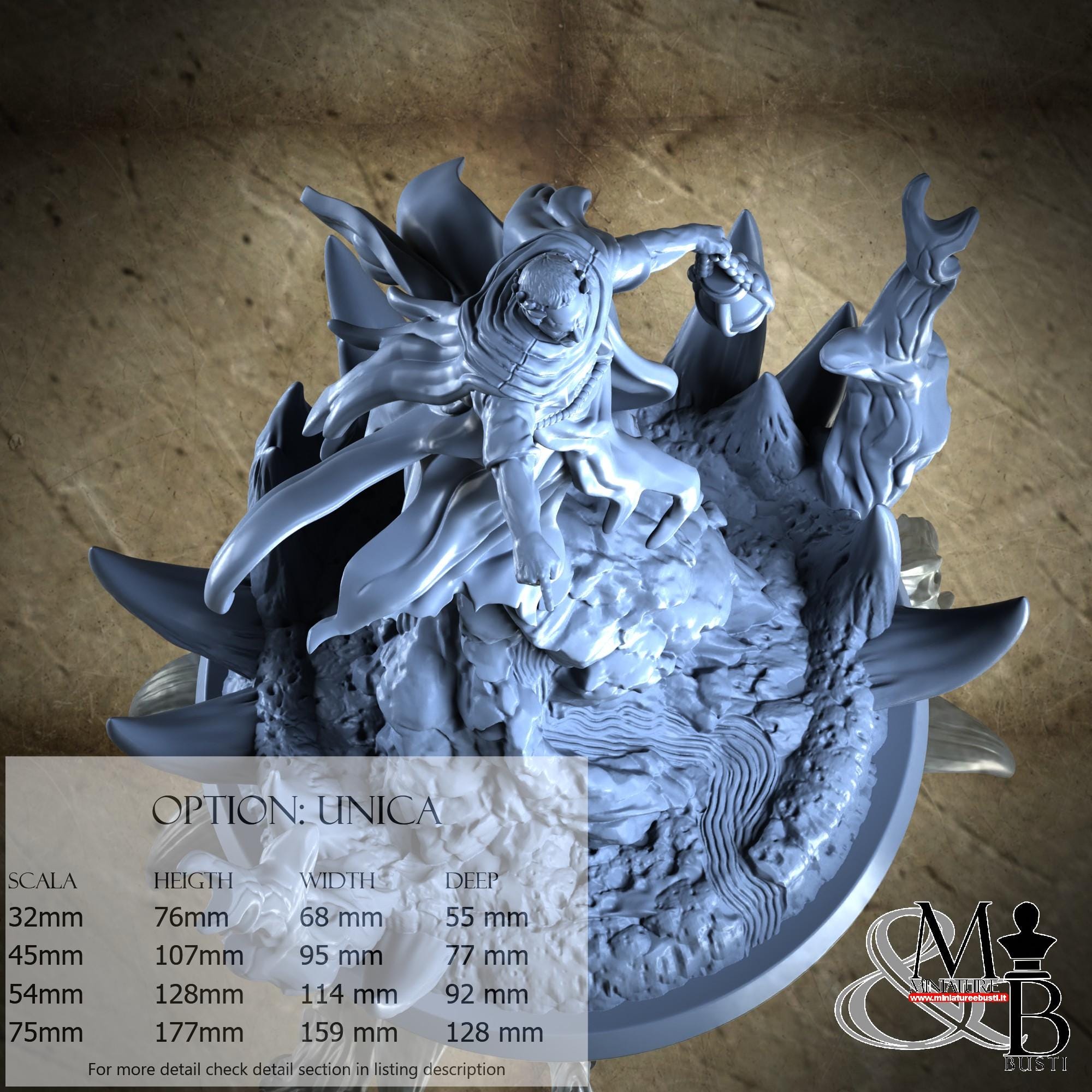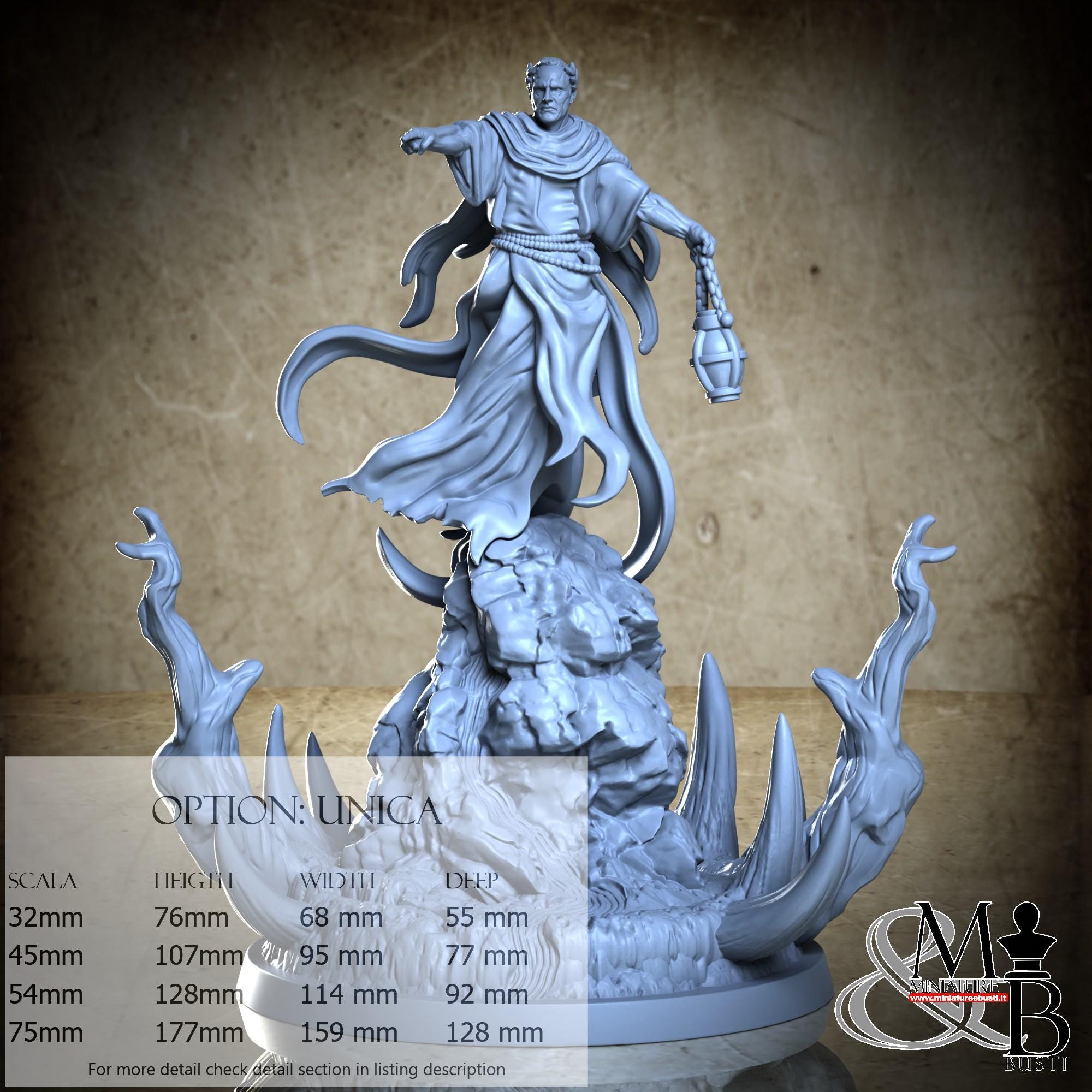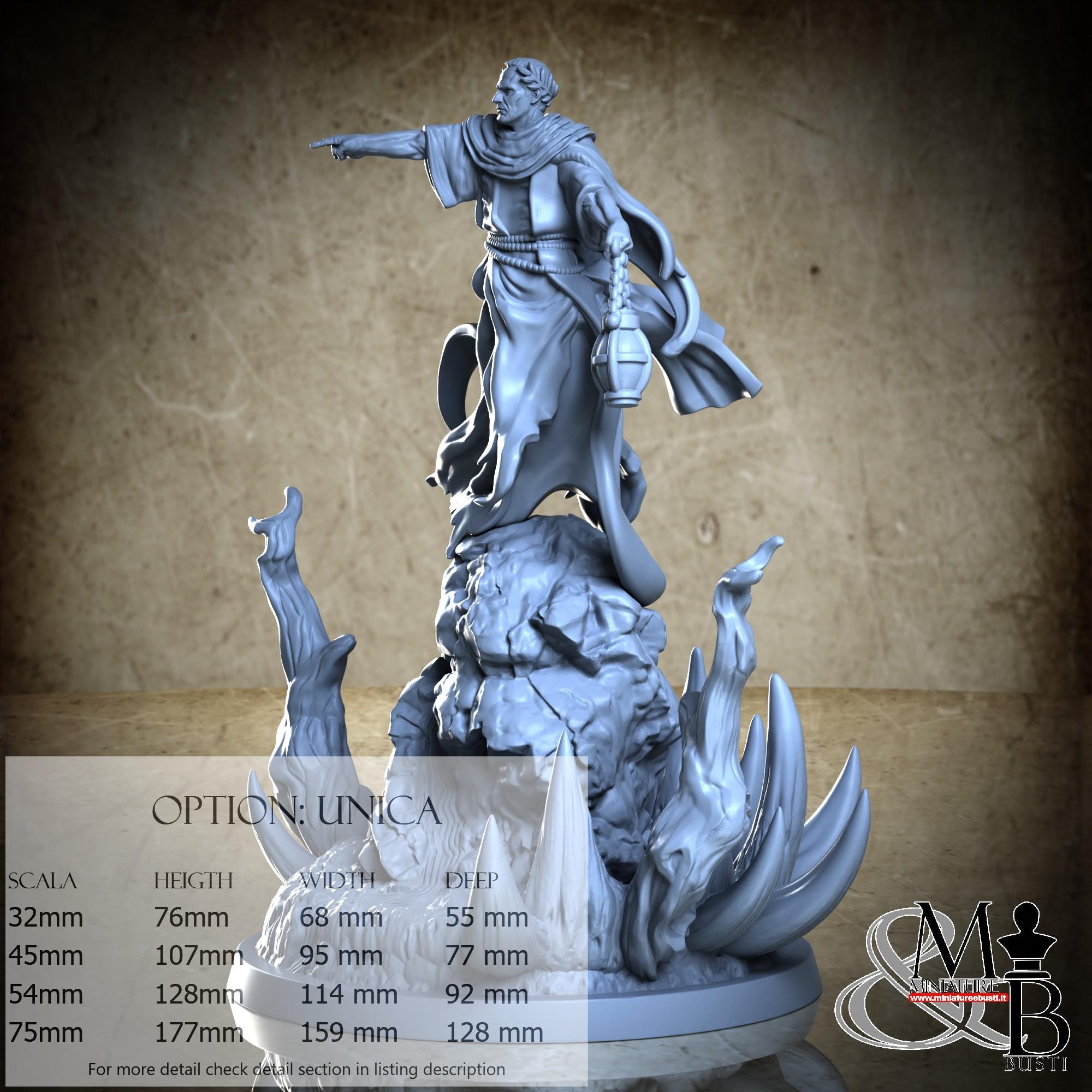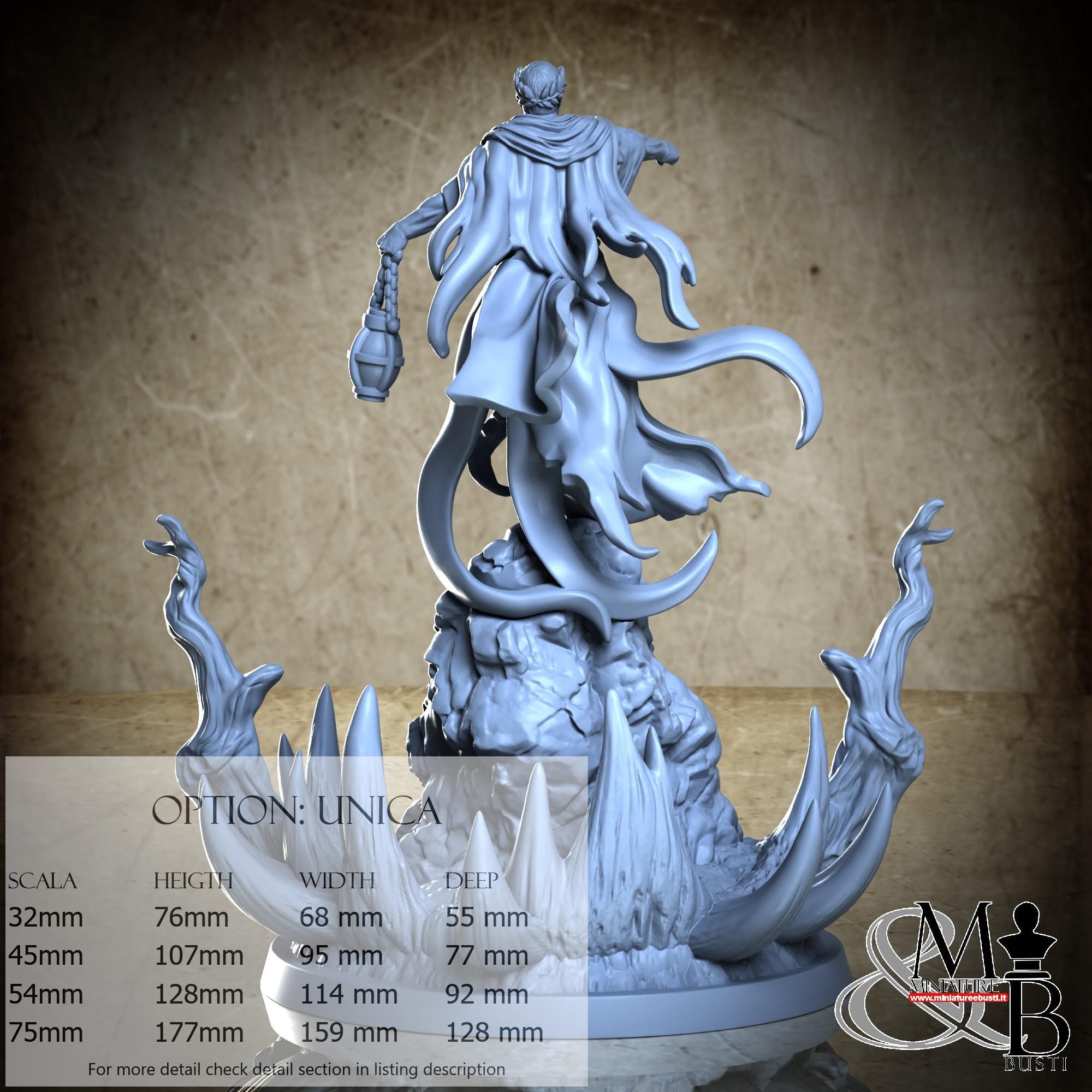 - Figure (1 piece) in Resin: Height: 79 mm, Width: 65 mm, Depth: 59 mm