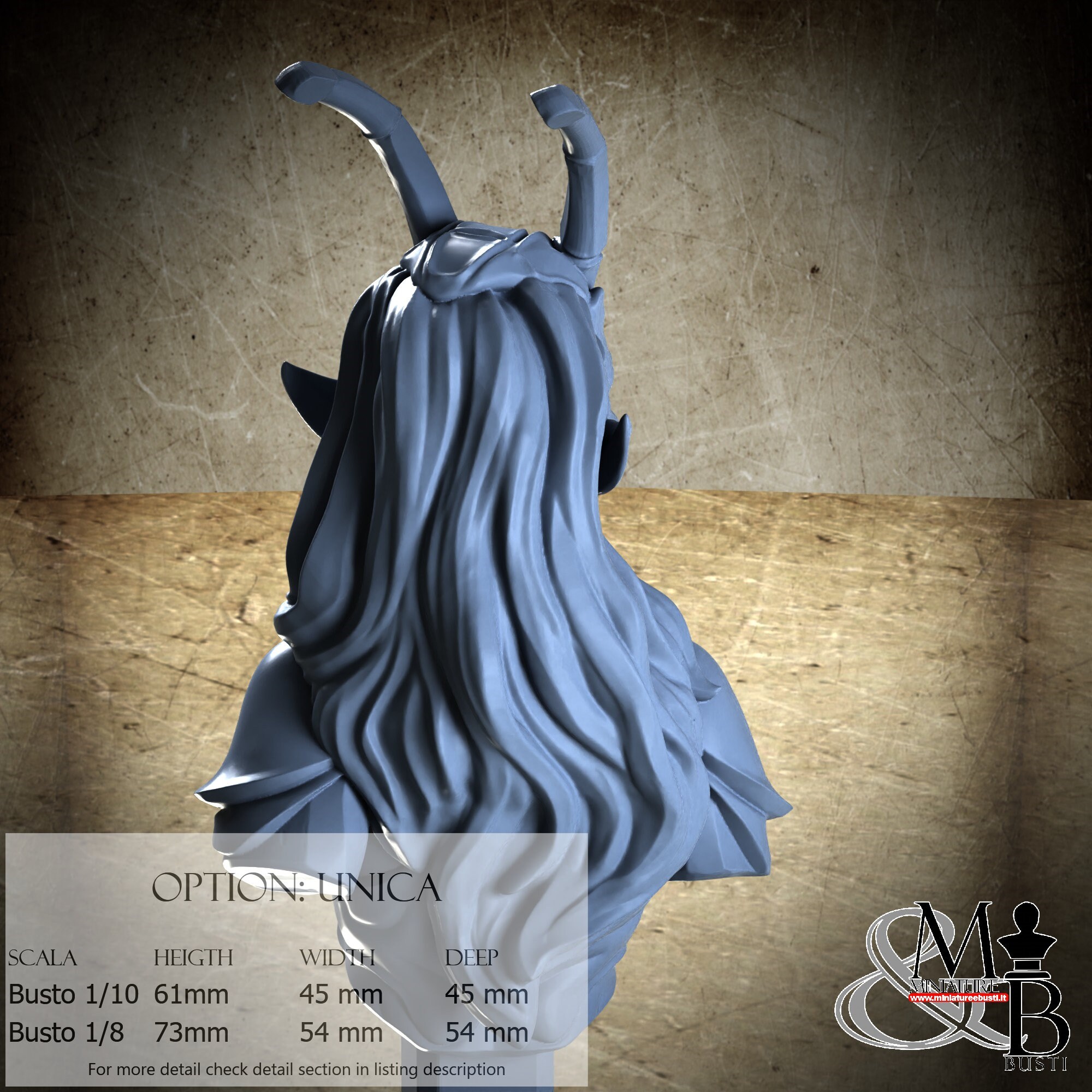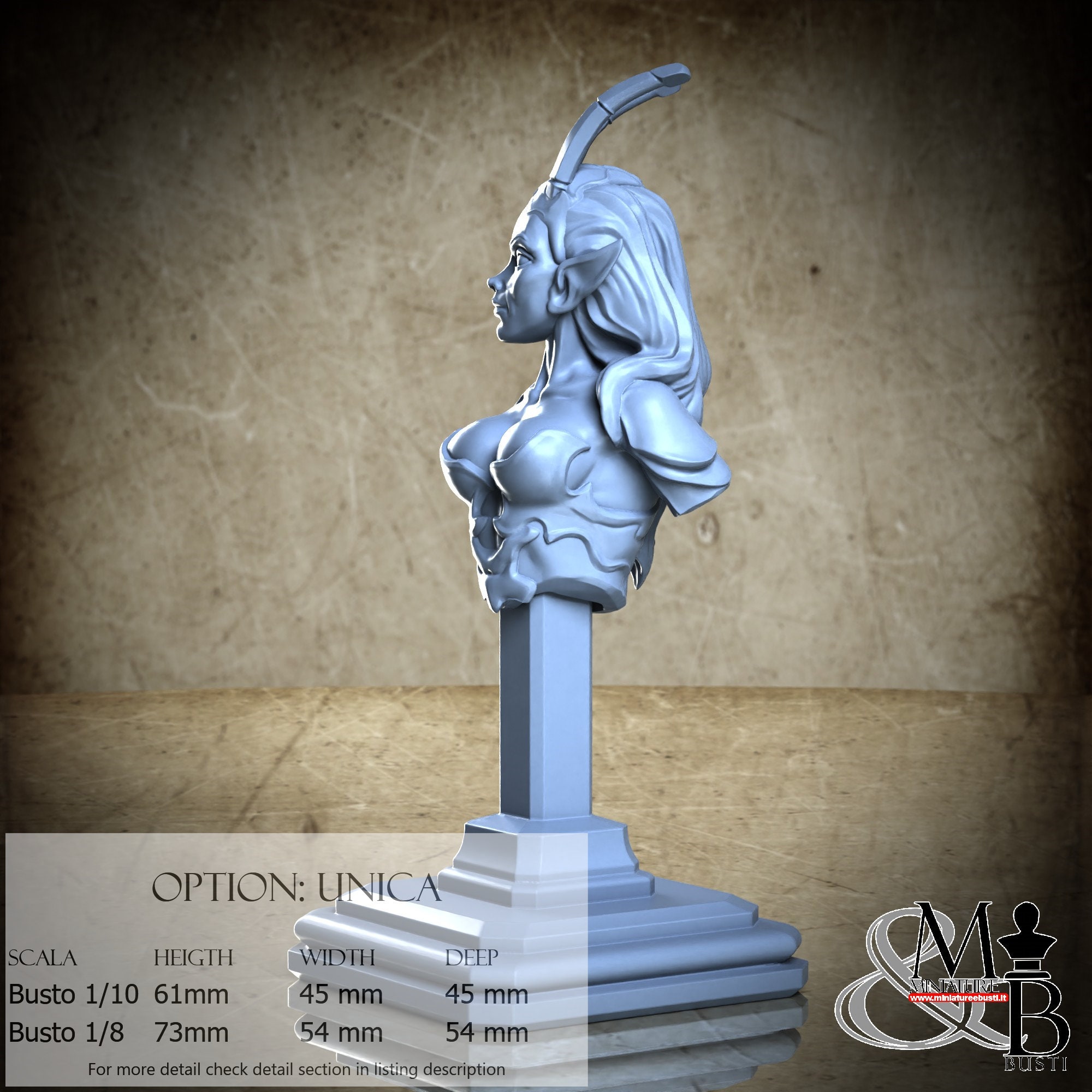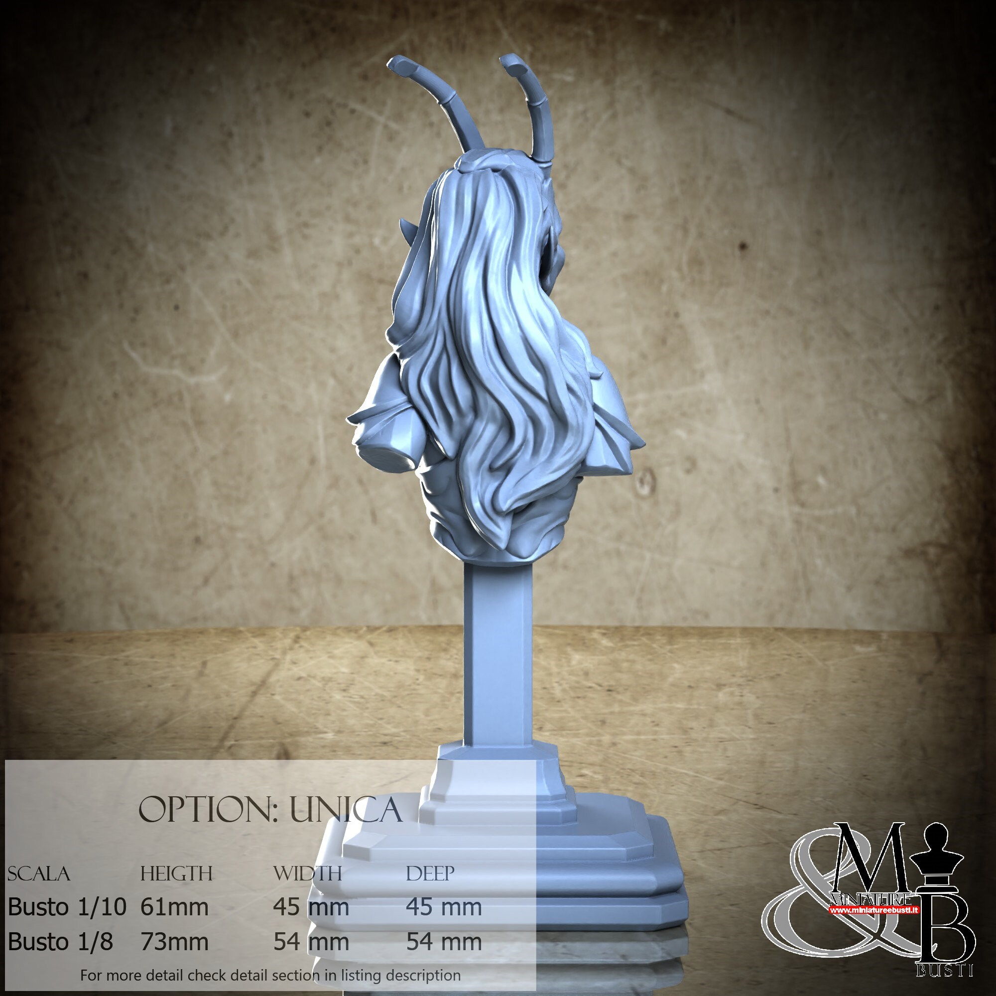 Bust Scale 1/10, cost €. 35.00 (Height: 61 mm, Width: 45 mm, Depth: 45 mm), composed of the following components:
