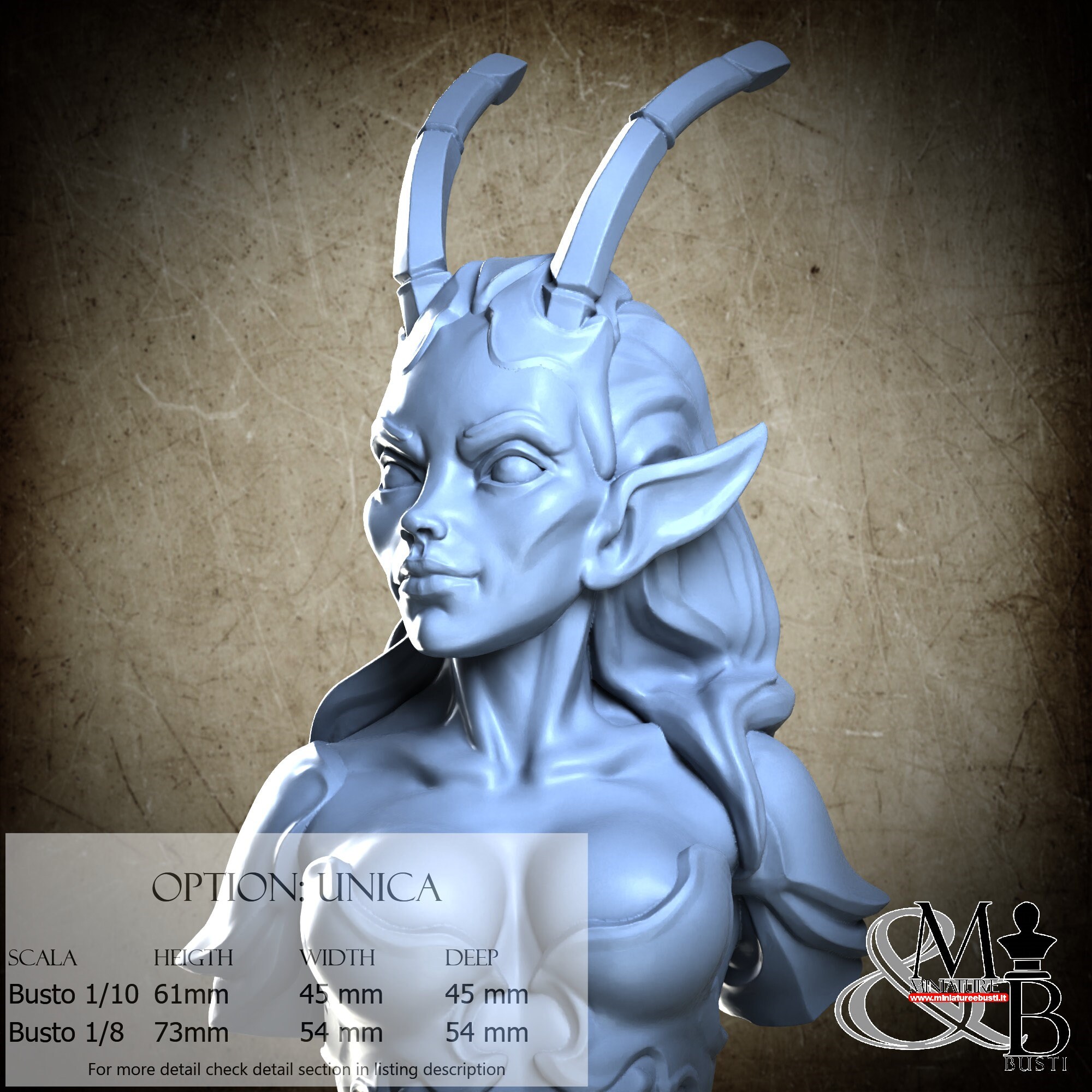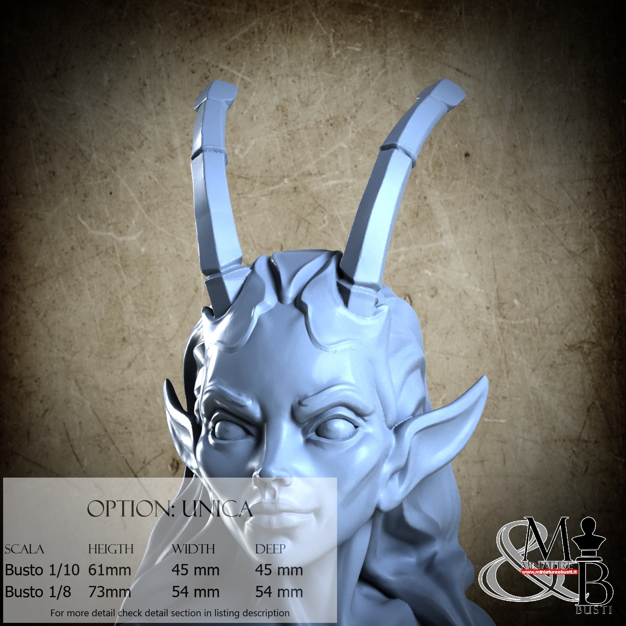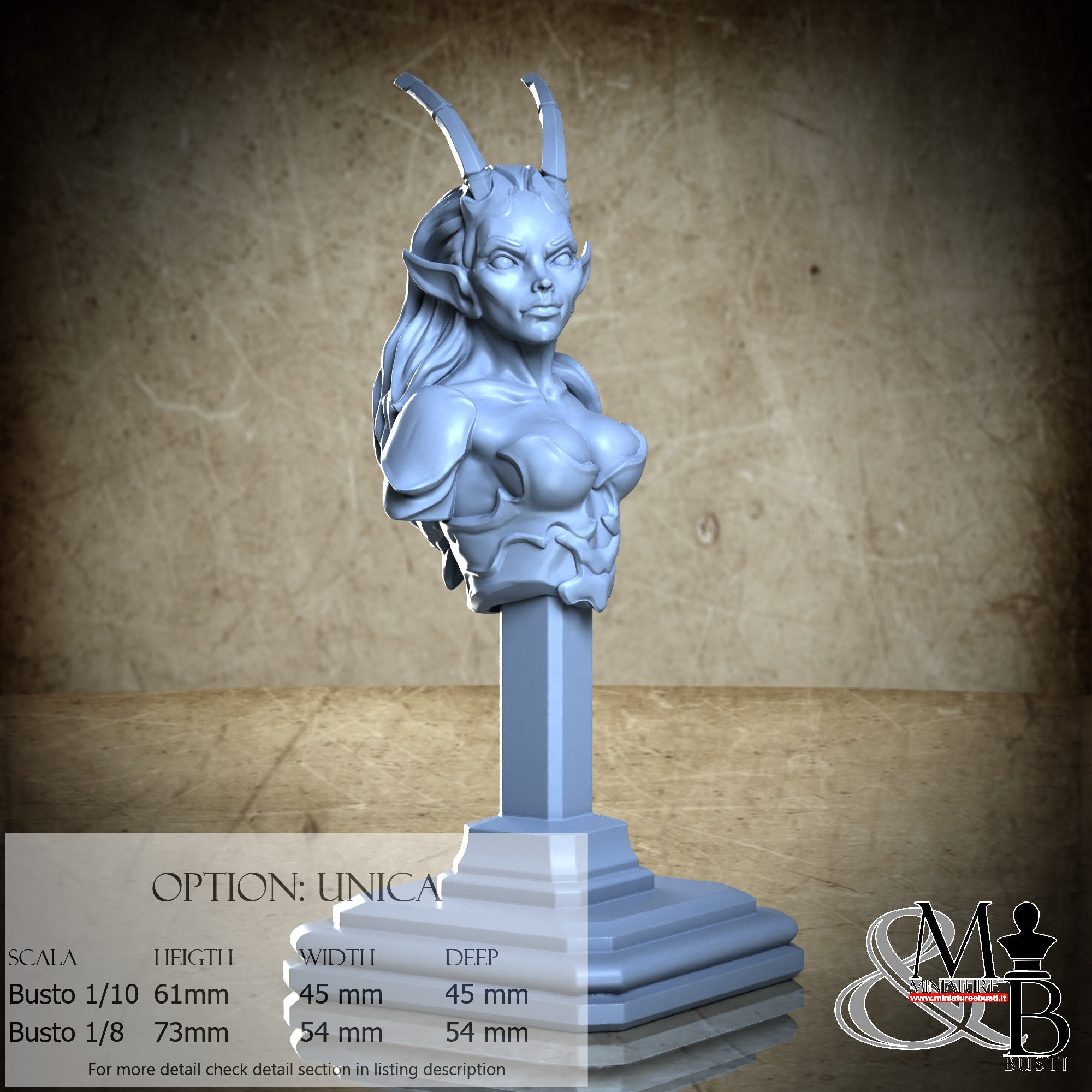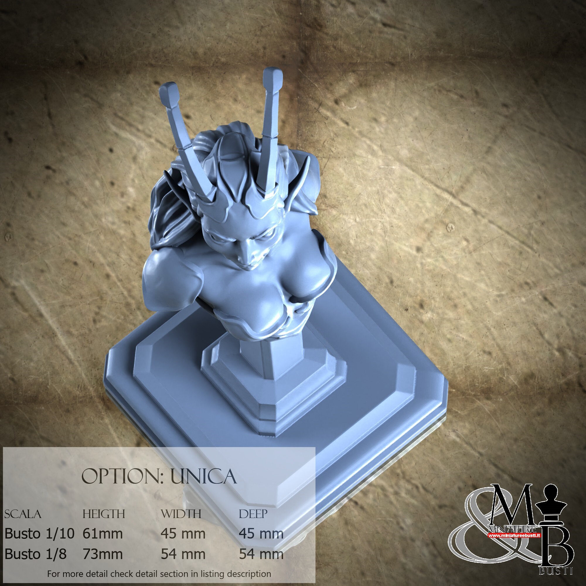 Bust Scale 1/10, cost €. 35.00 (Height: 61 mm, Width: 45 mm, Depth: 45 mm), composed of the following components: