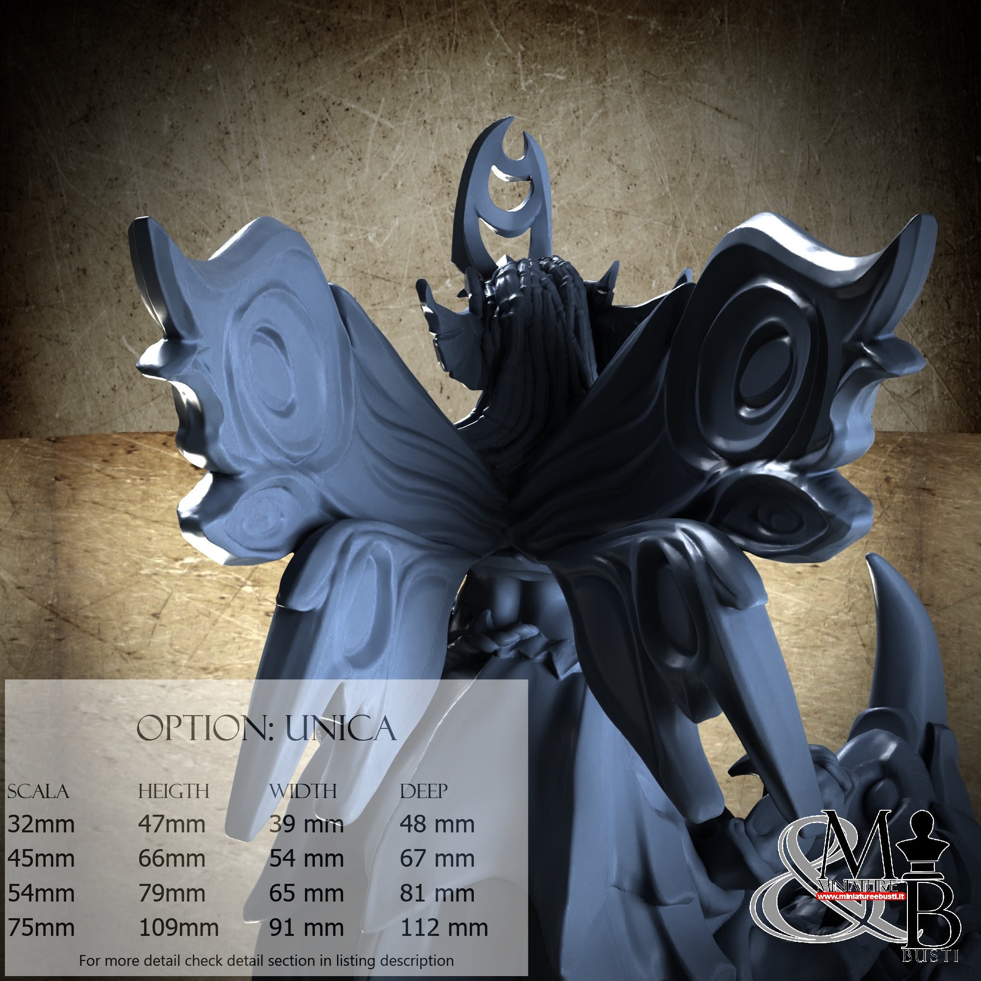 - Figure (1 piece) in Resin: Height: 79 mm, Width: 65 mm, Depth: 81 mm