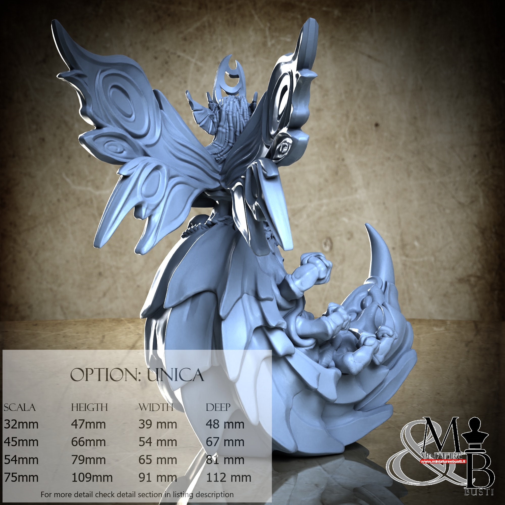 - Figure (1 piece) in Resin: Height: 47 mm, Width: 39 mm, Depth: 48 mm