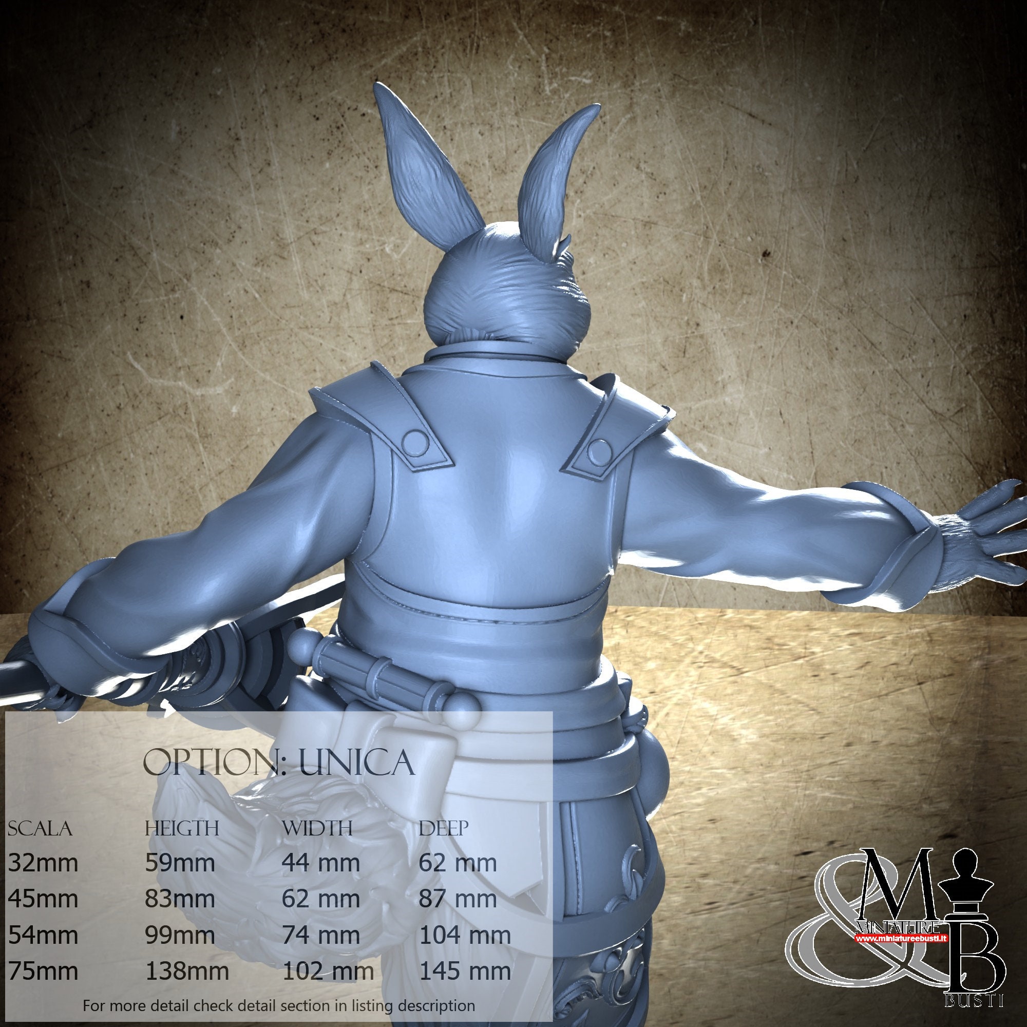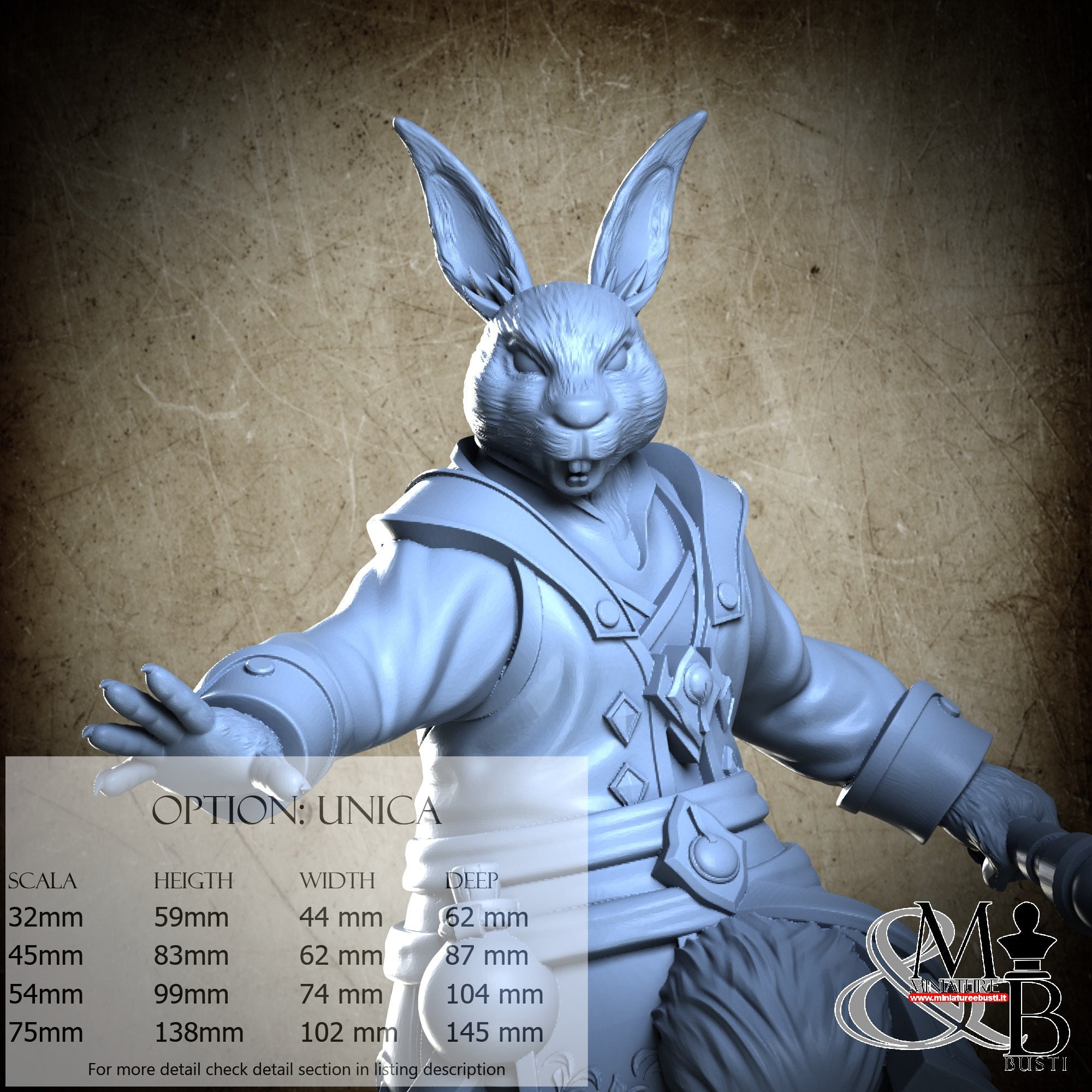 - Figure (1 piece) in Resin: Height: 54 mm, Width: 44 mm, Depth: 62 mm