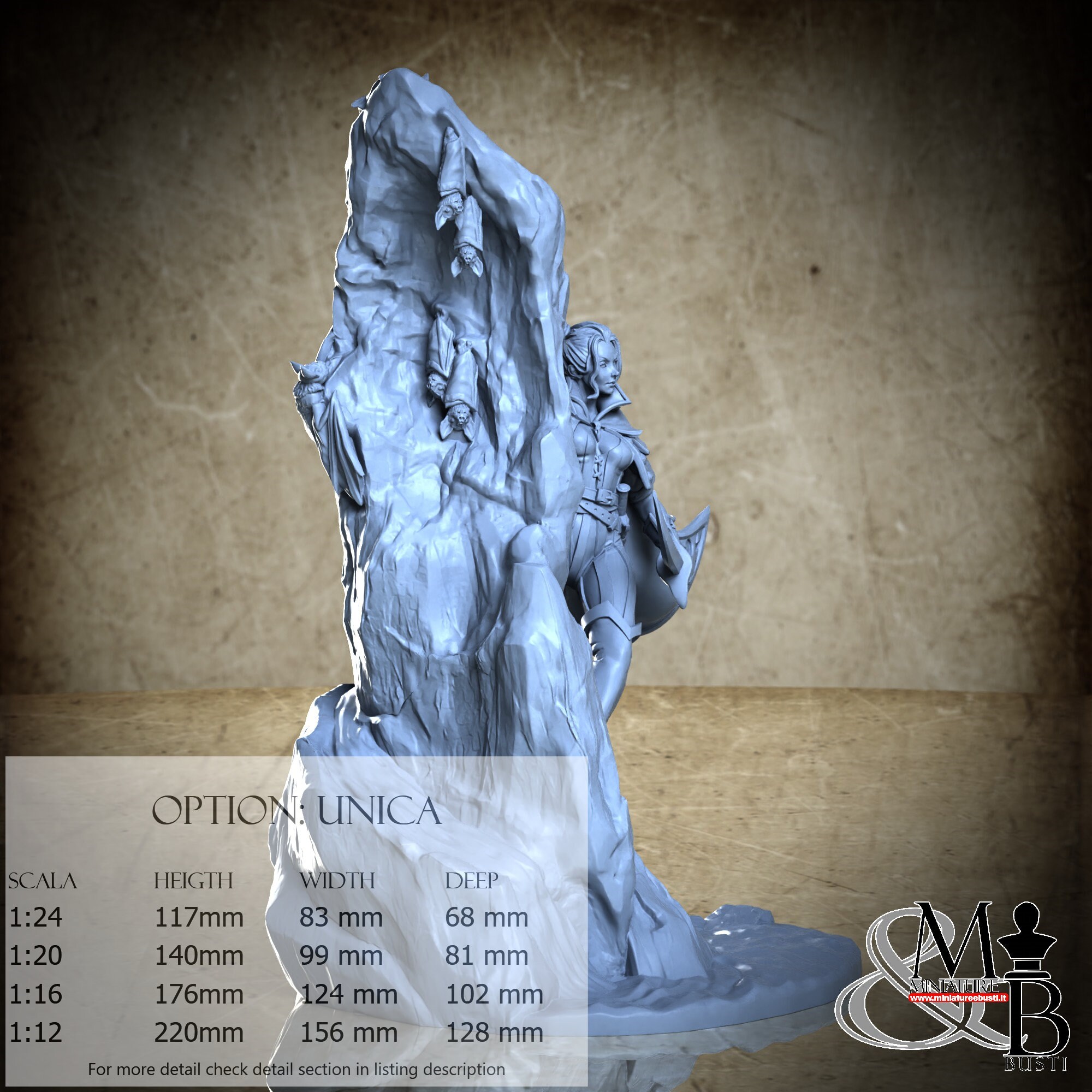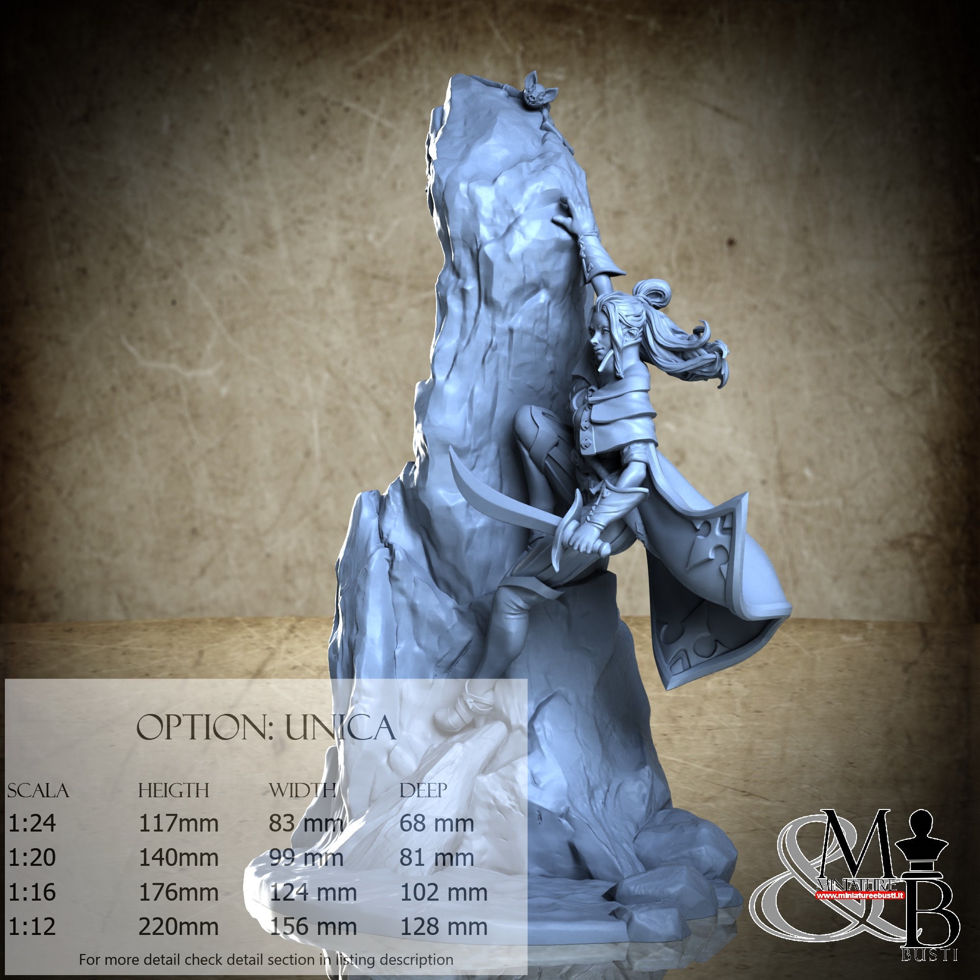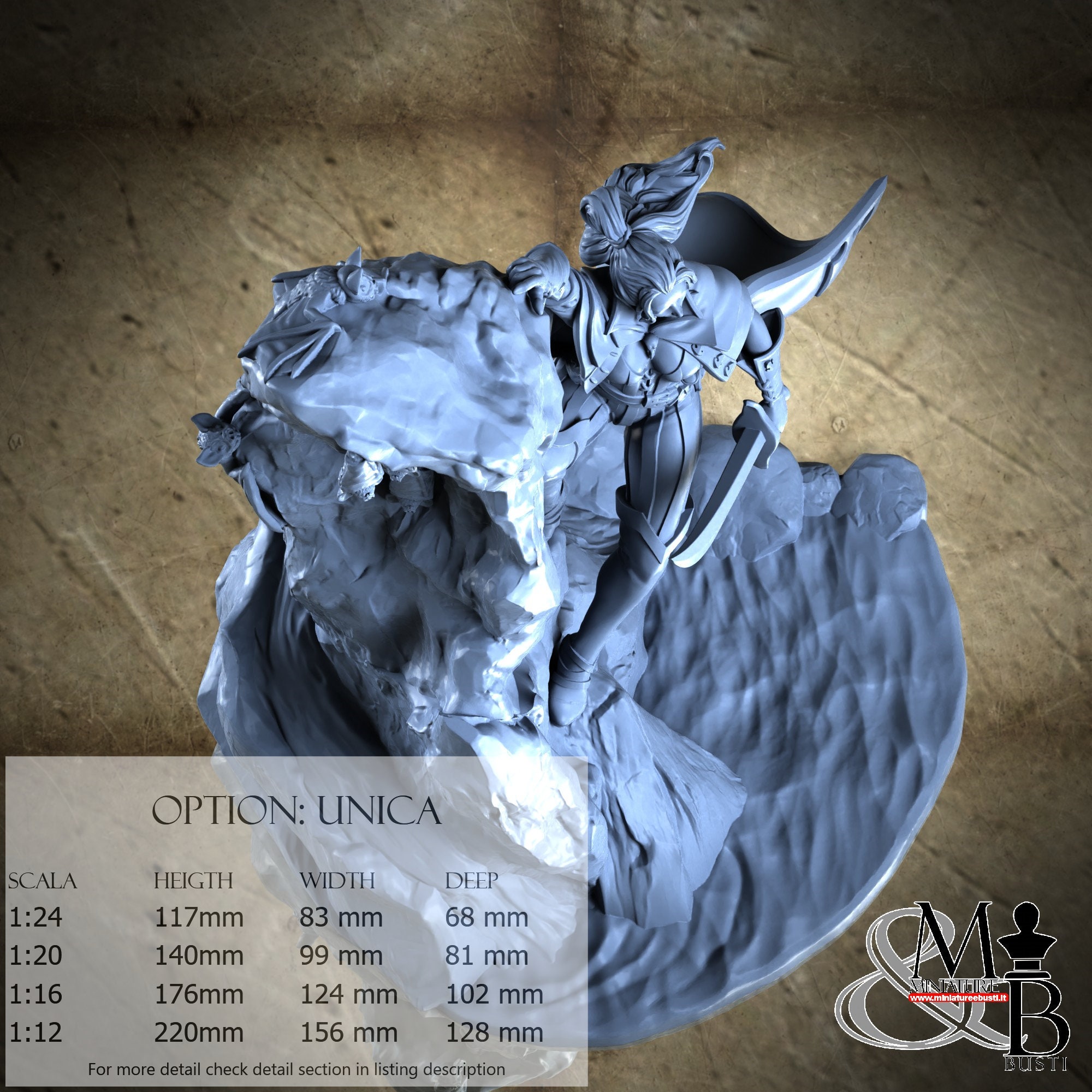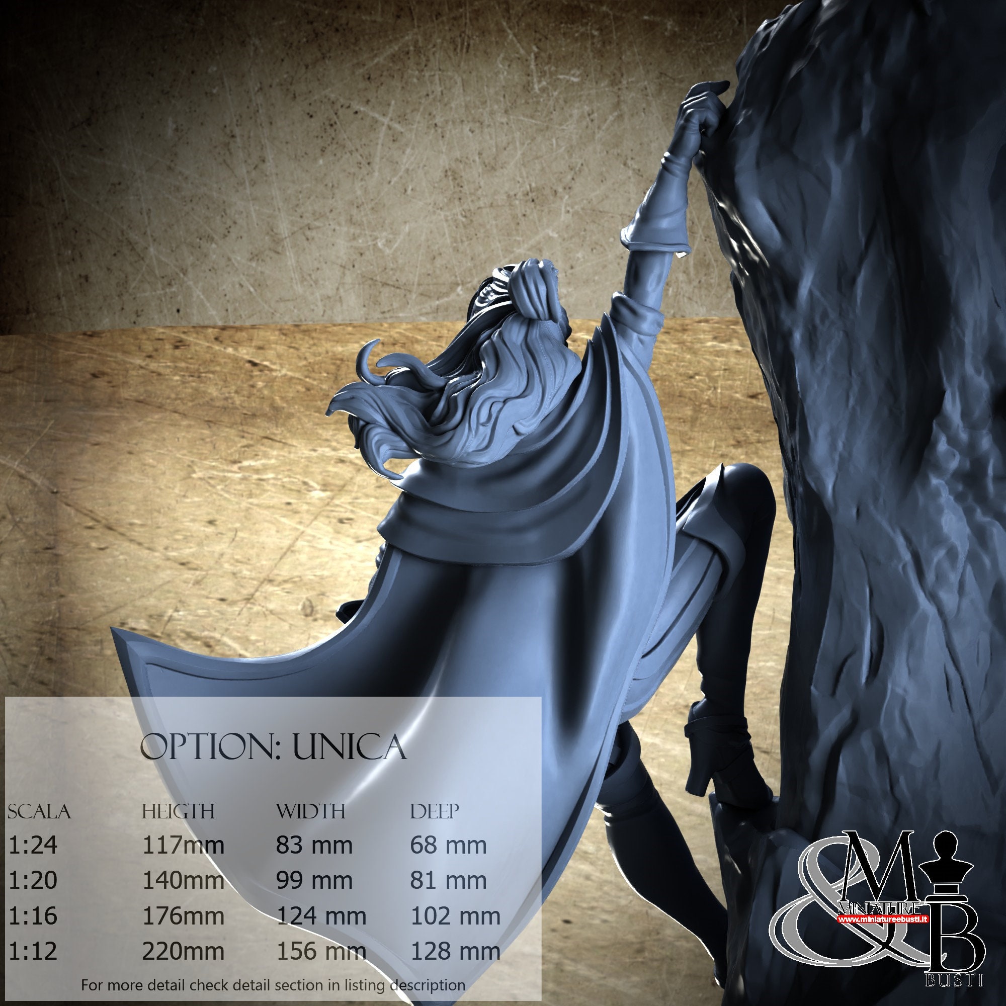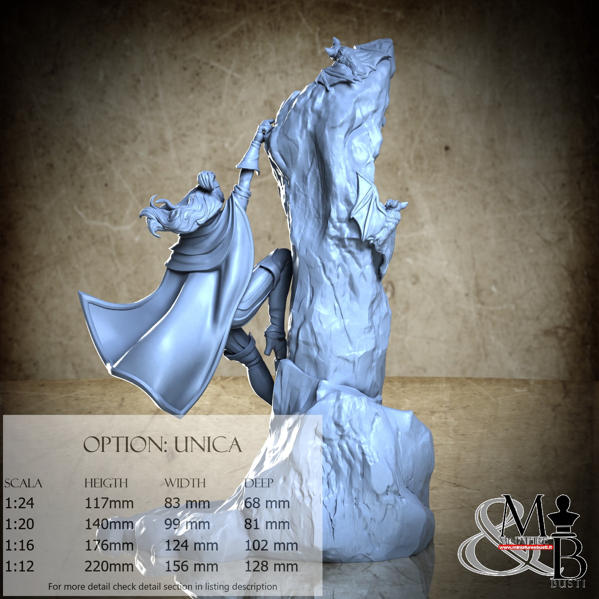 - Figure (1 piece) in Resin: Height: 72 mm, Width: 52 mm, Depth: 35 mm