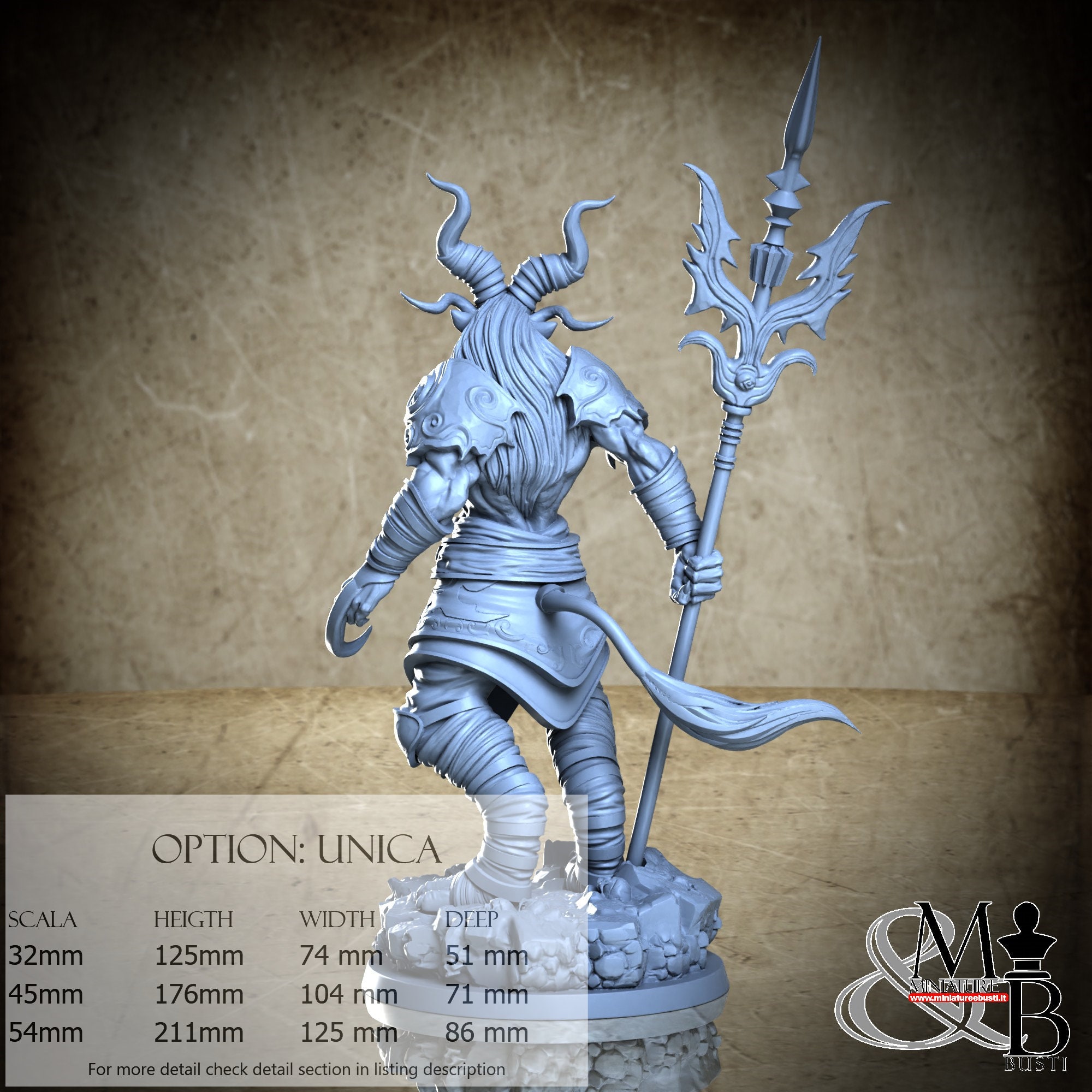 - Figure (1 piece) in Resin: Height: 82 mm, Width: 53 mm, Depth: 28 mm