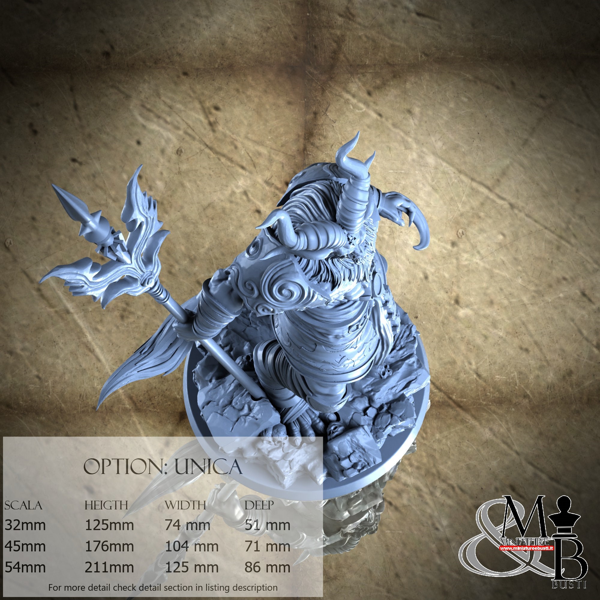- Figure (1 piece) in Resin: Height: 123 mm, Width: 79 mm, Depth: 41 mm