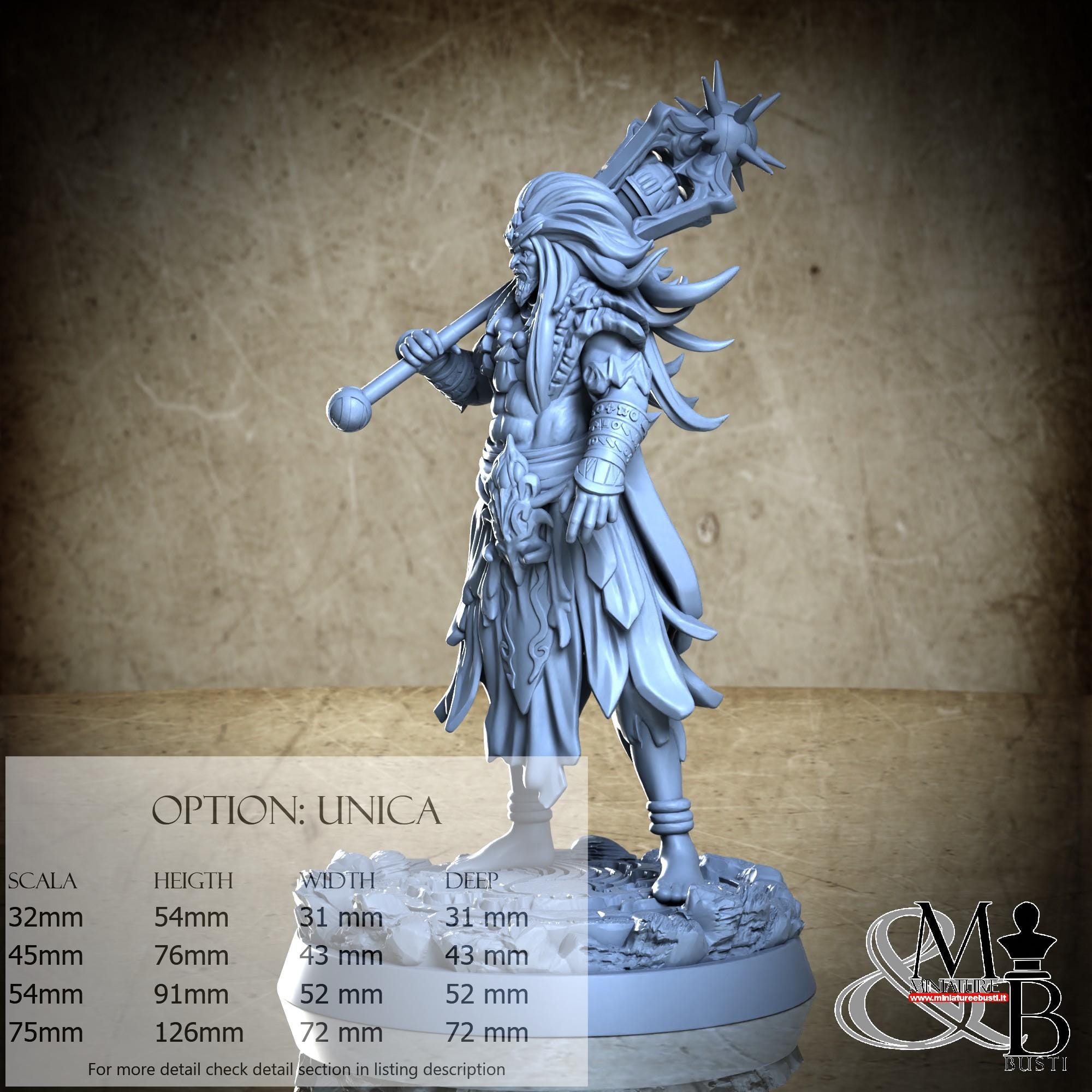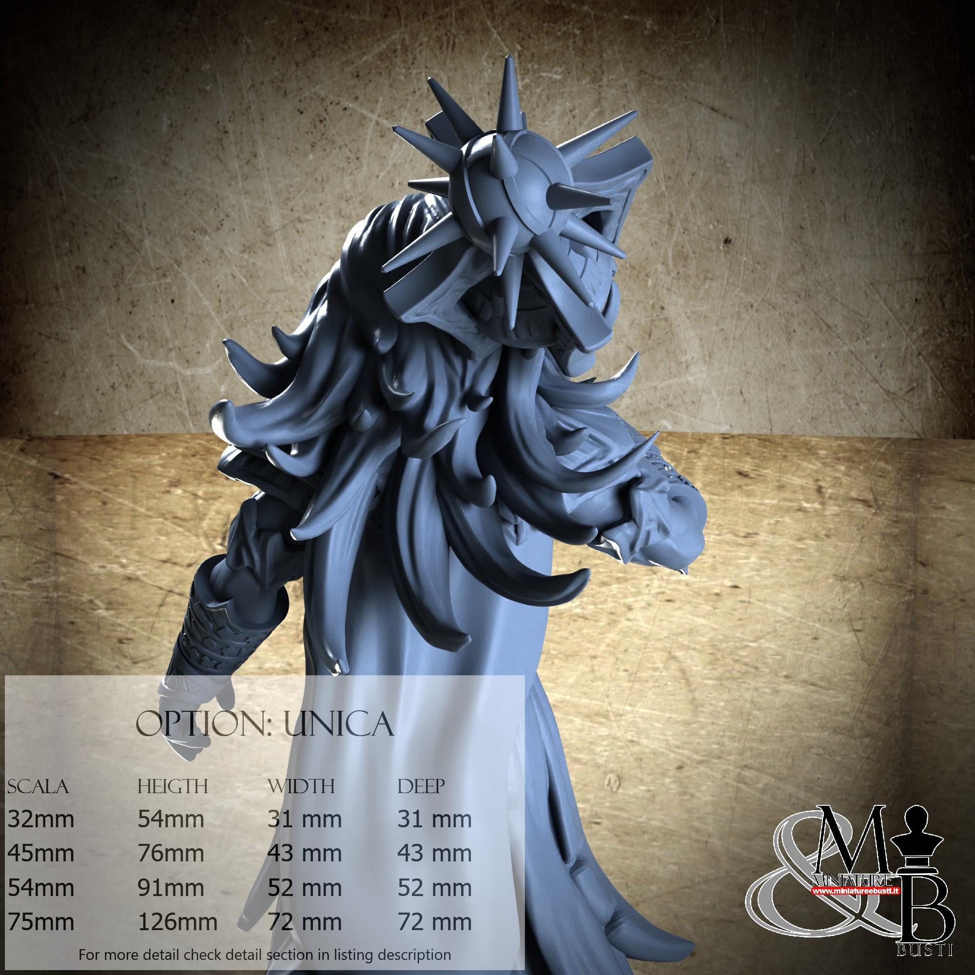 - Figure (1 piece) in Resin: Height: 82 mm, Width: 47 mm, Depth: 32 mm