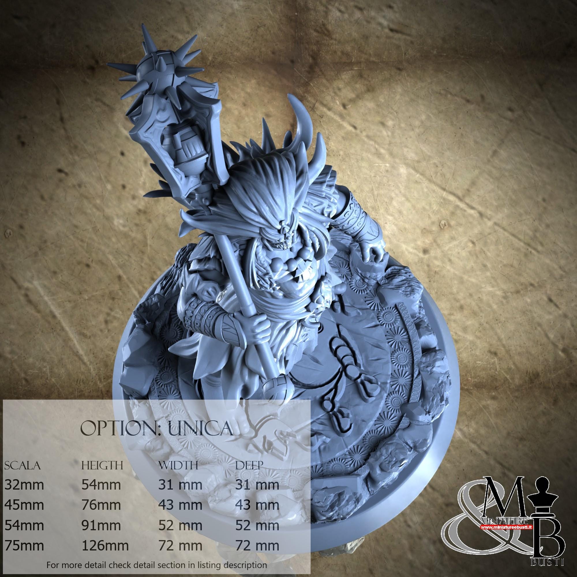 - Base (1 piece) in Resin: Height: 16 mm, Width: 72 mm, Depth: 72 mm