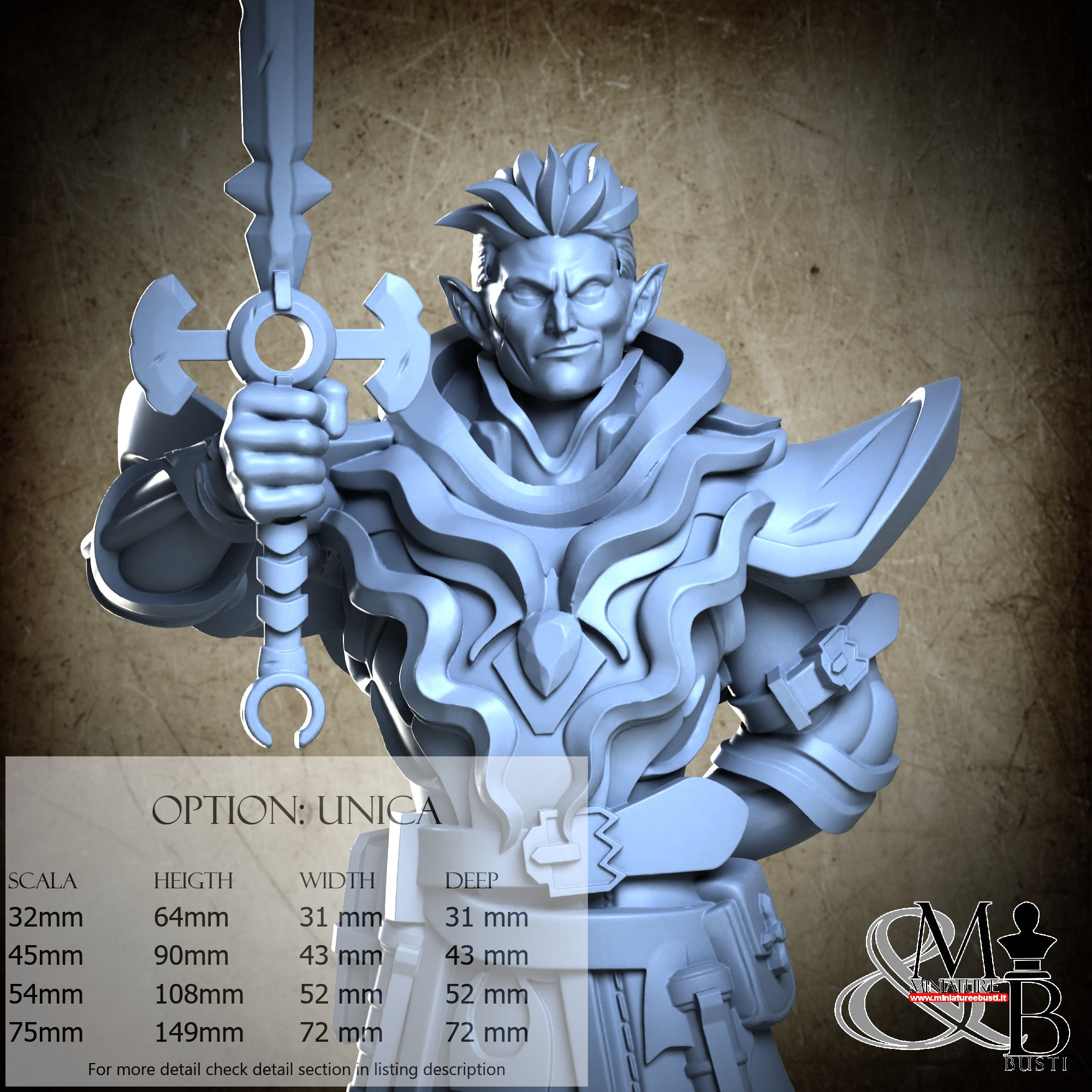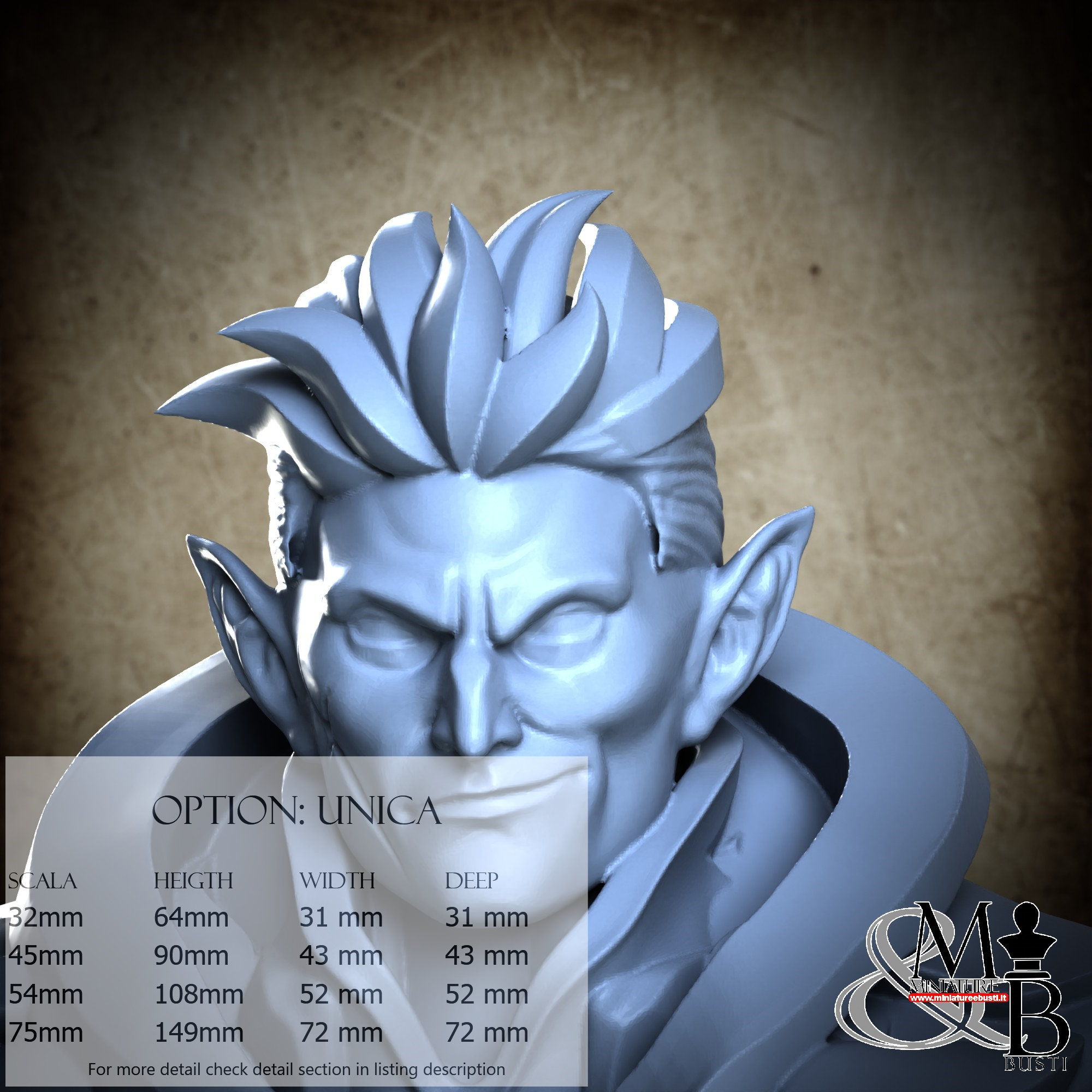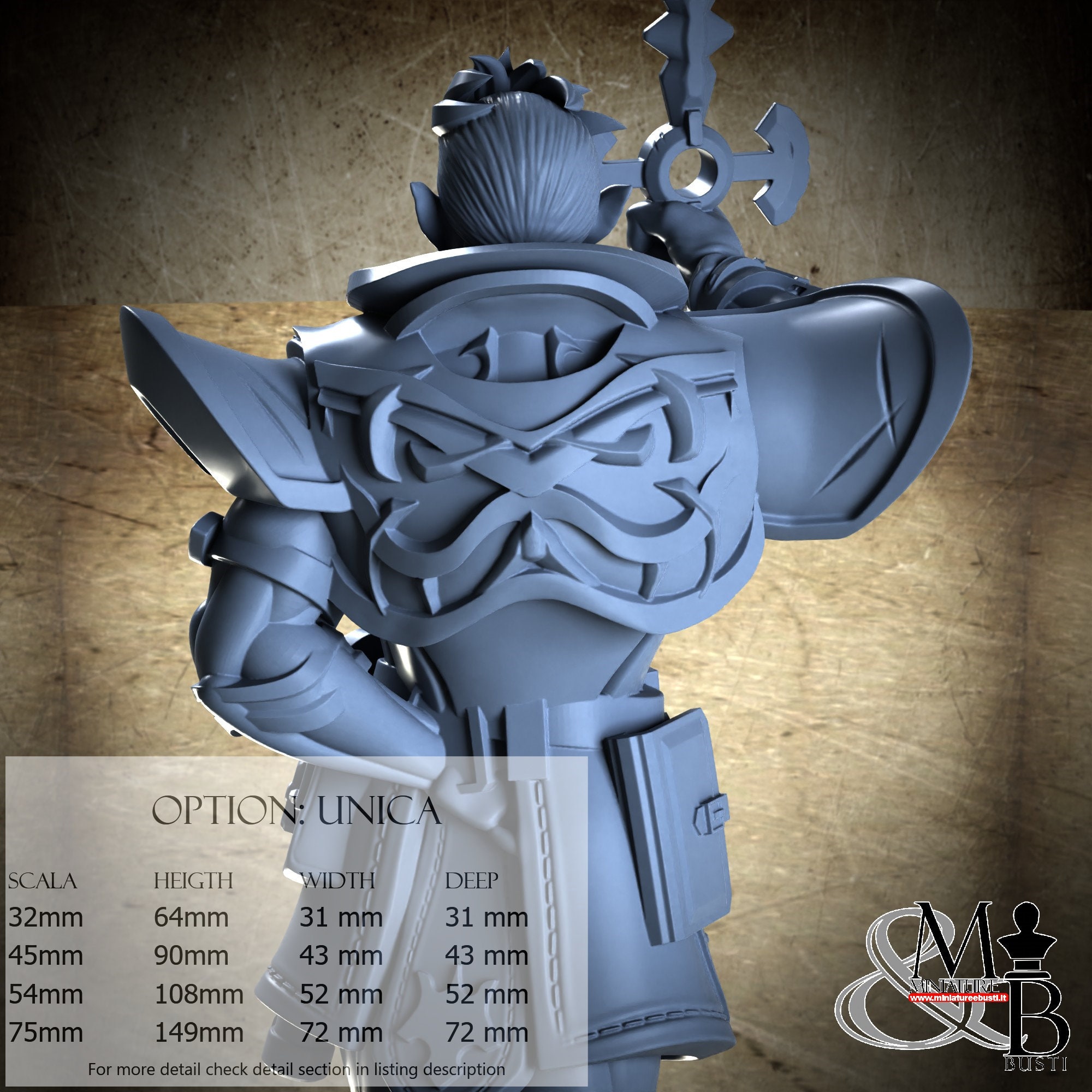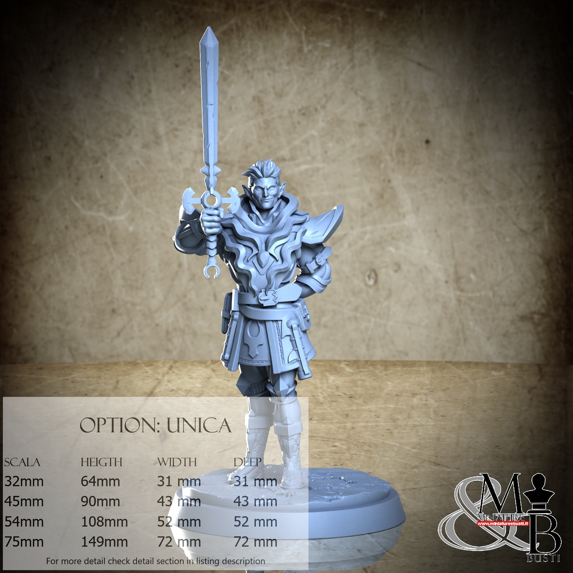 - Figure (1 piece) in Resin: Height: 84 mm, Width: 31 mm, Depth: 23 mm