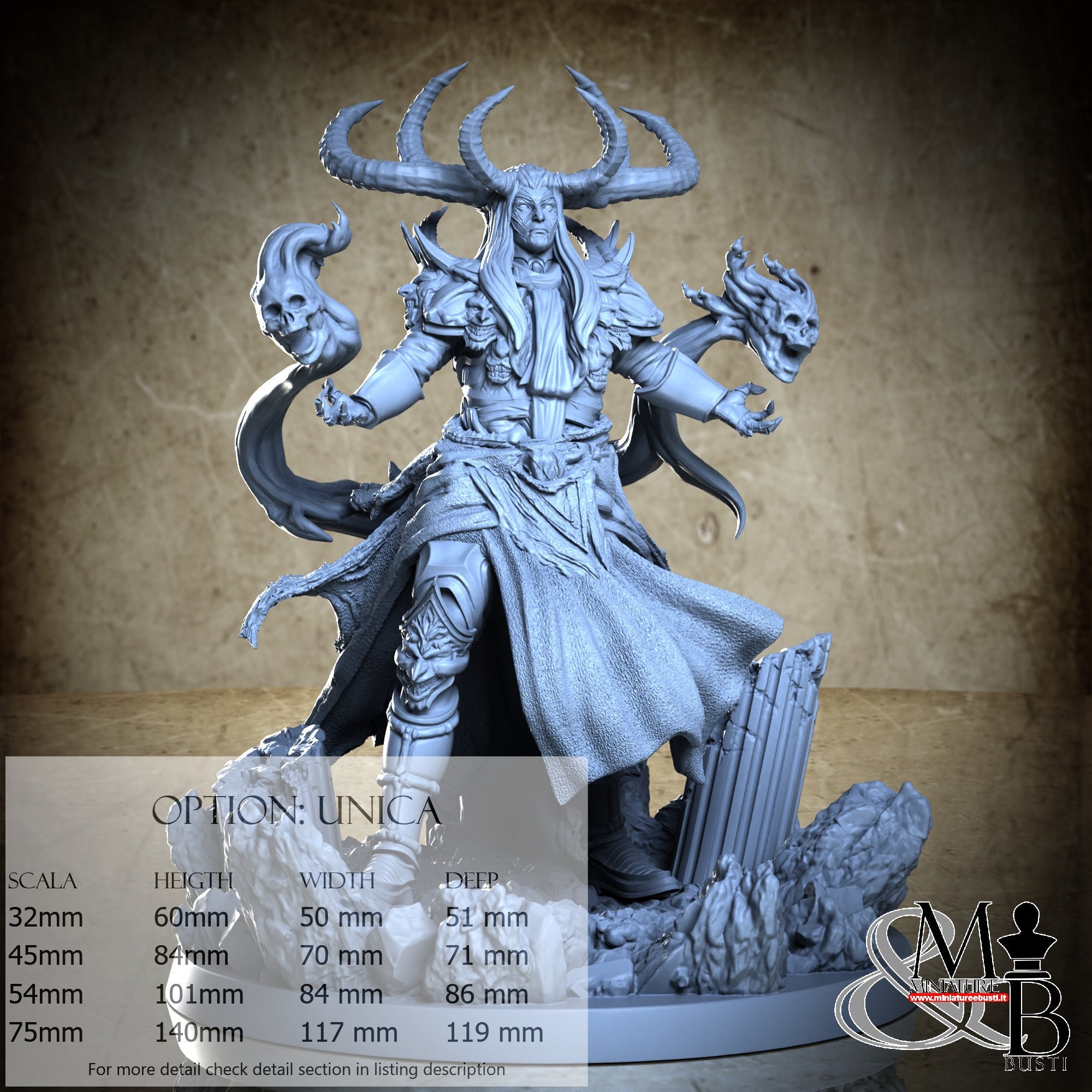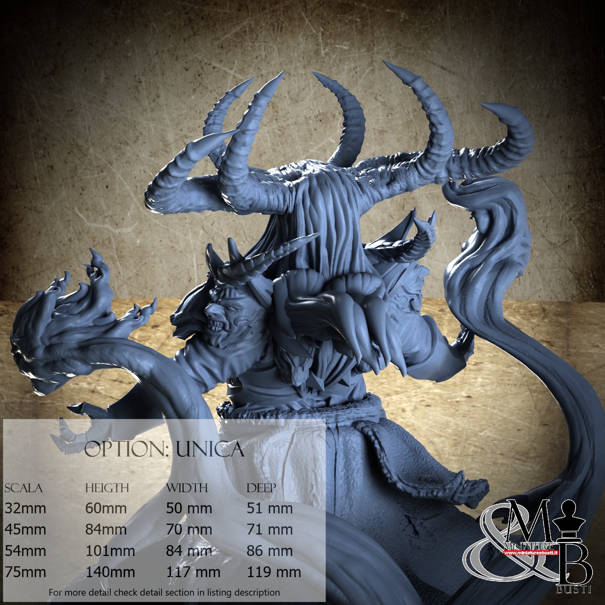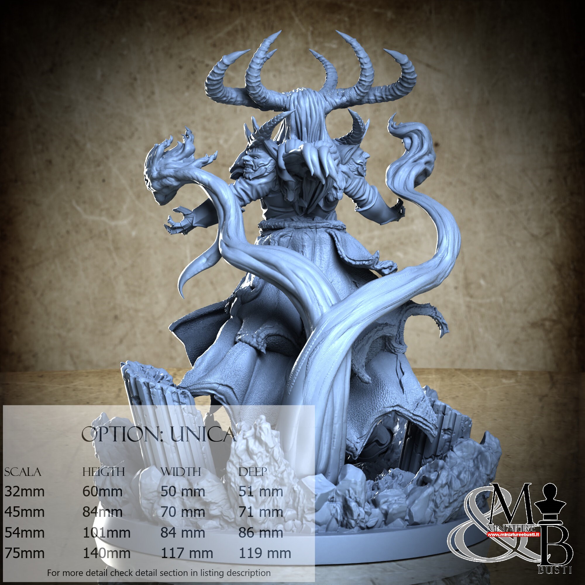 - Base (1 piece) in Resin: Height: 51 mm, Width: 117 mm, Depth: 119 mm