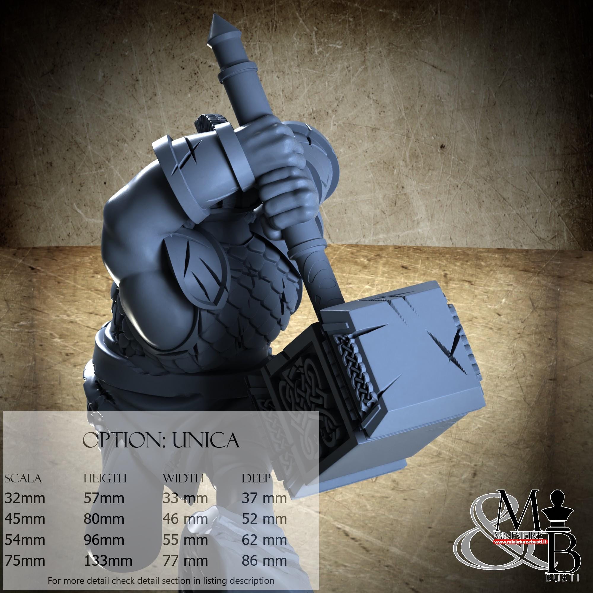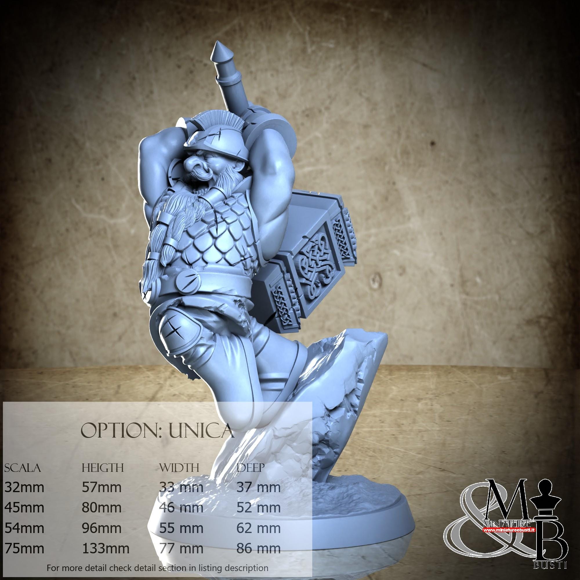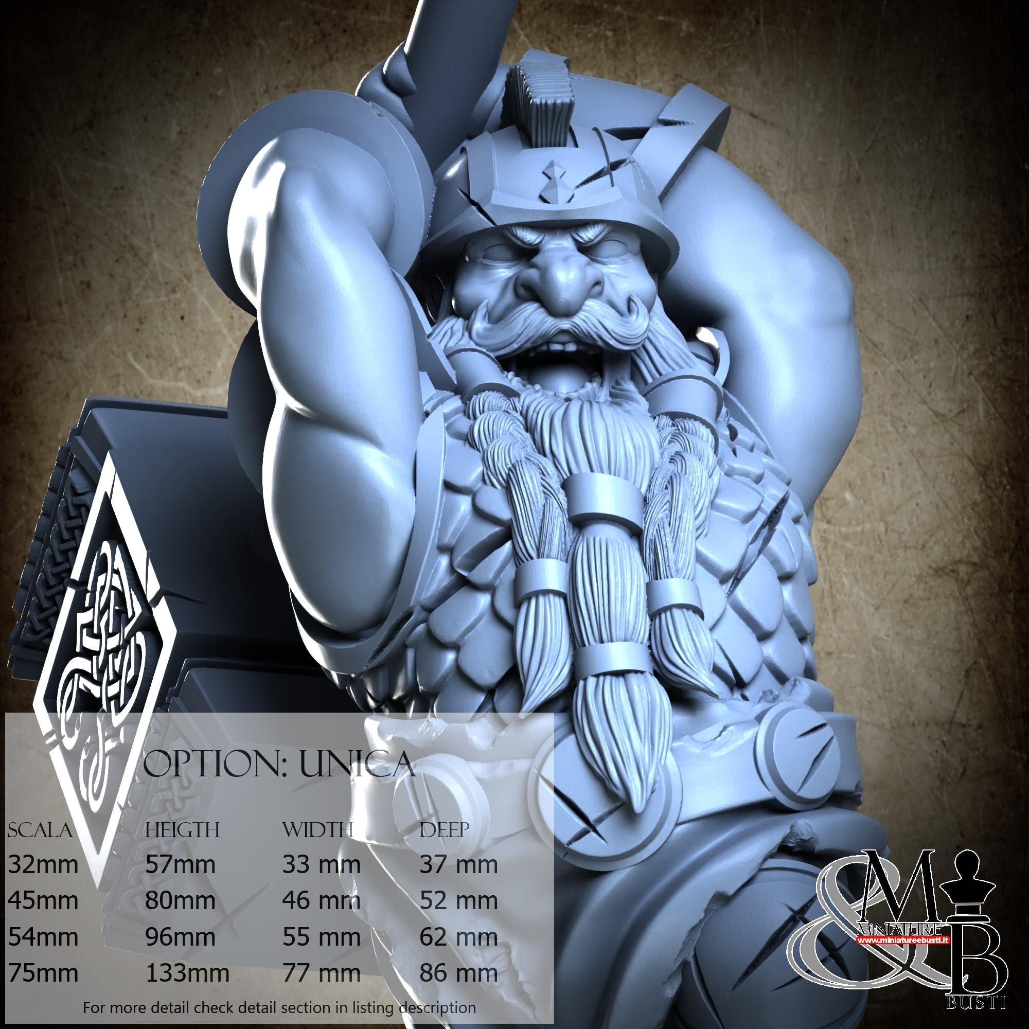 - Base (1 piece) in Resin: Height: 53 mm, Width: 72 mm, Depth: 72 mm