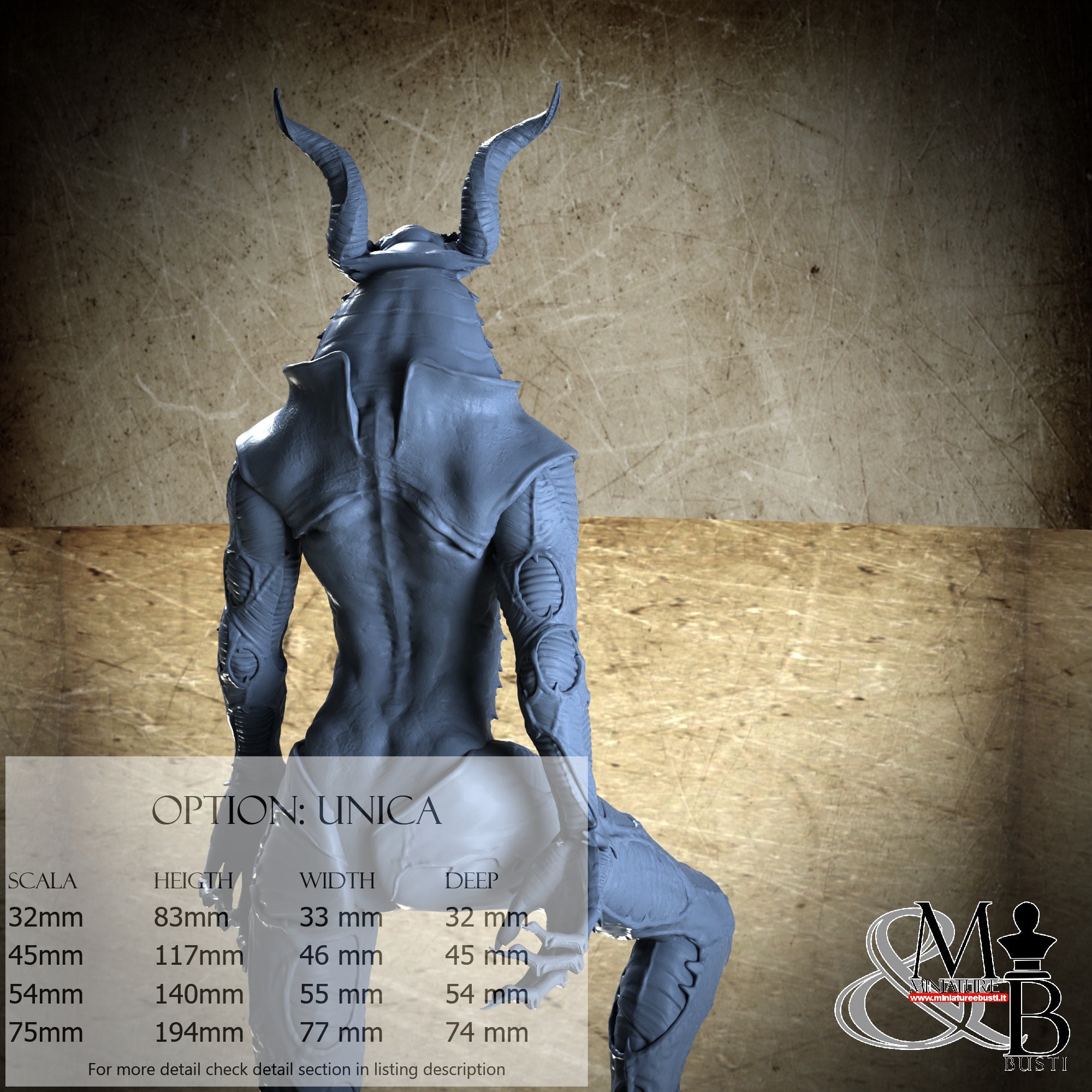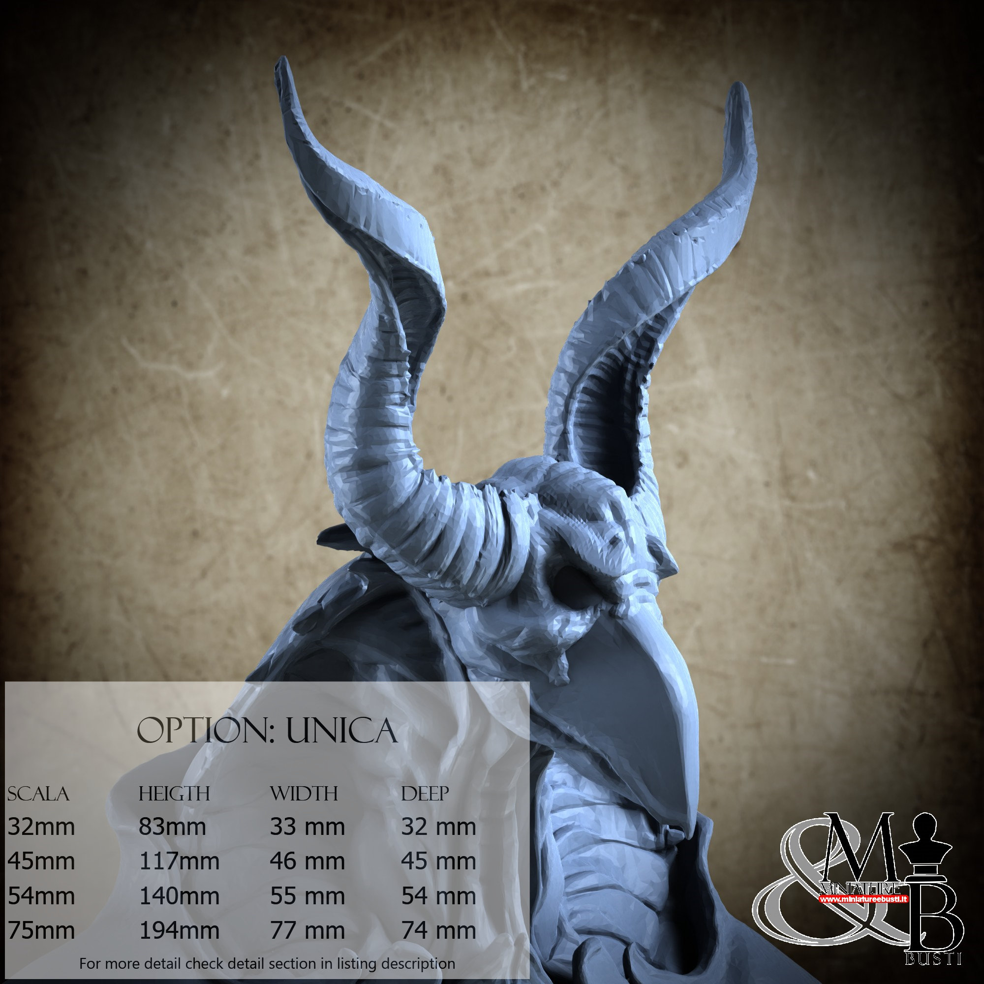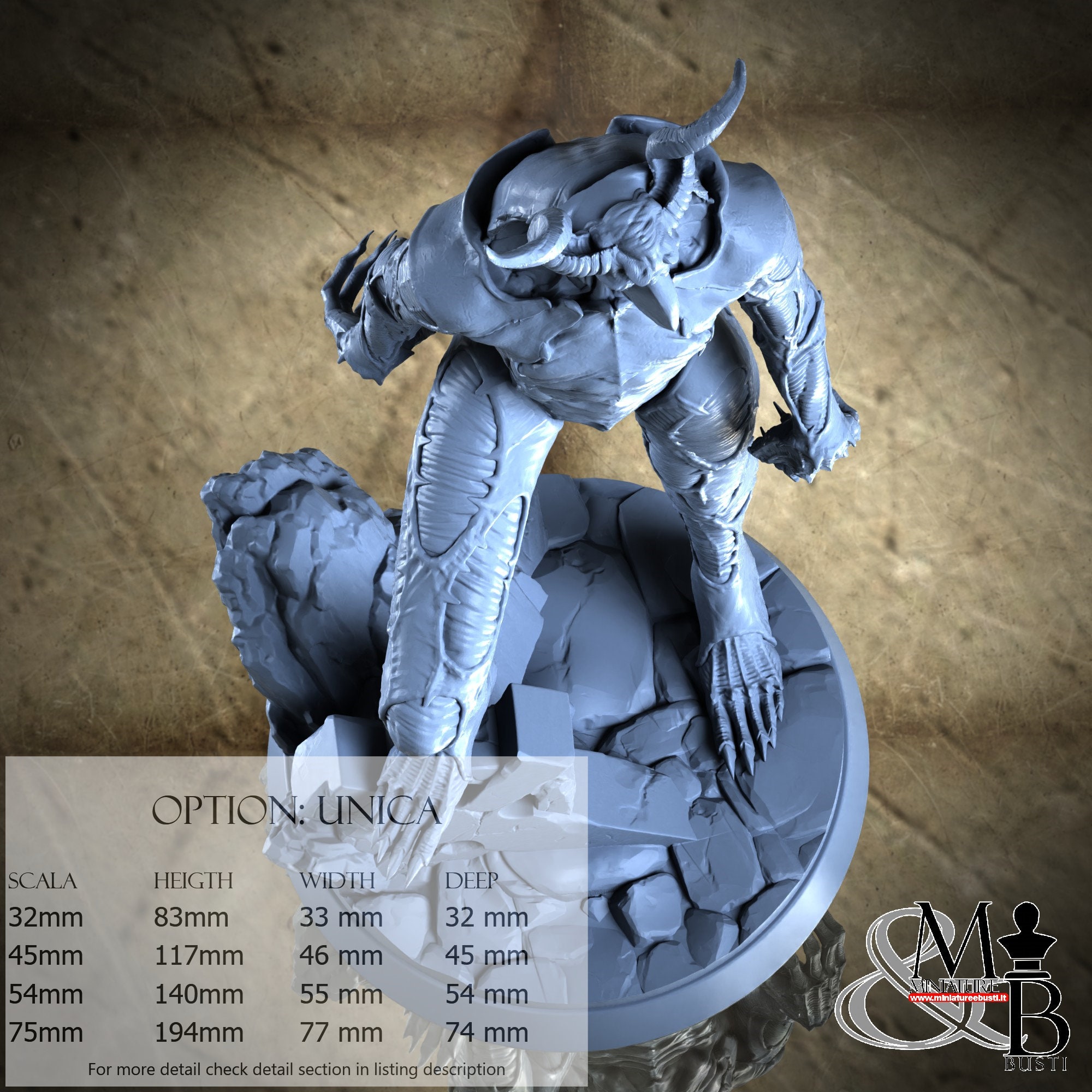 - Base (1 piece) in Resin: Height: 56 mm, Width: 77 mm, Depth: 74 mm