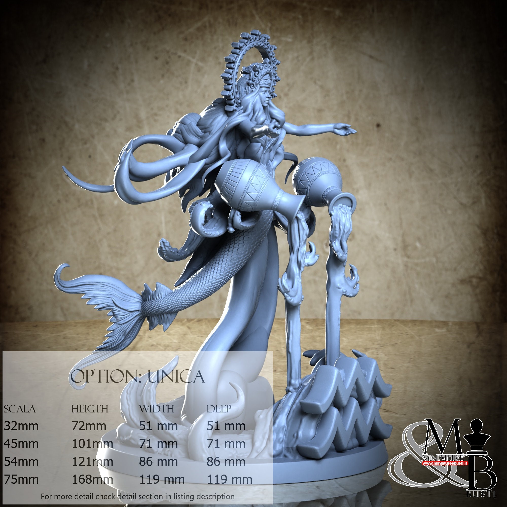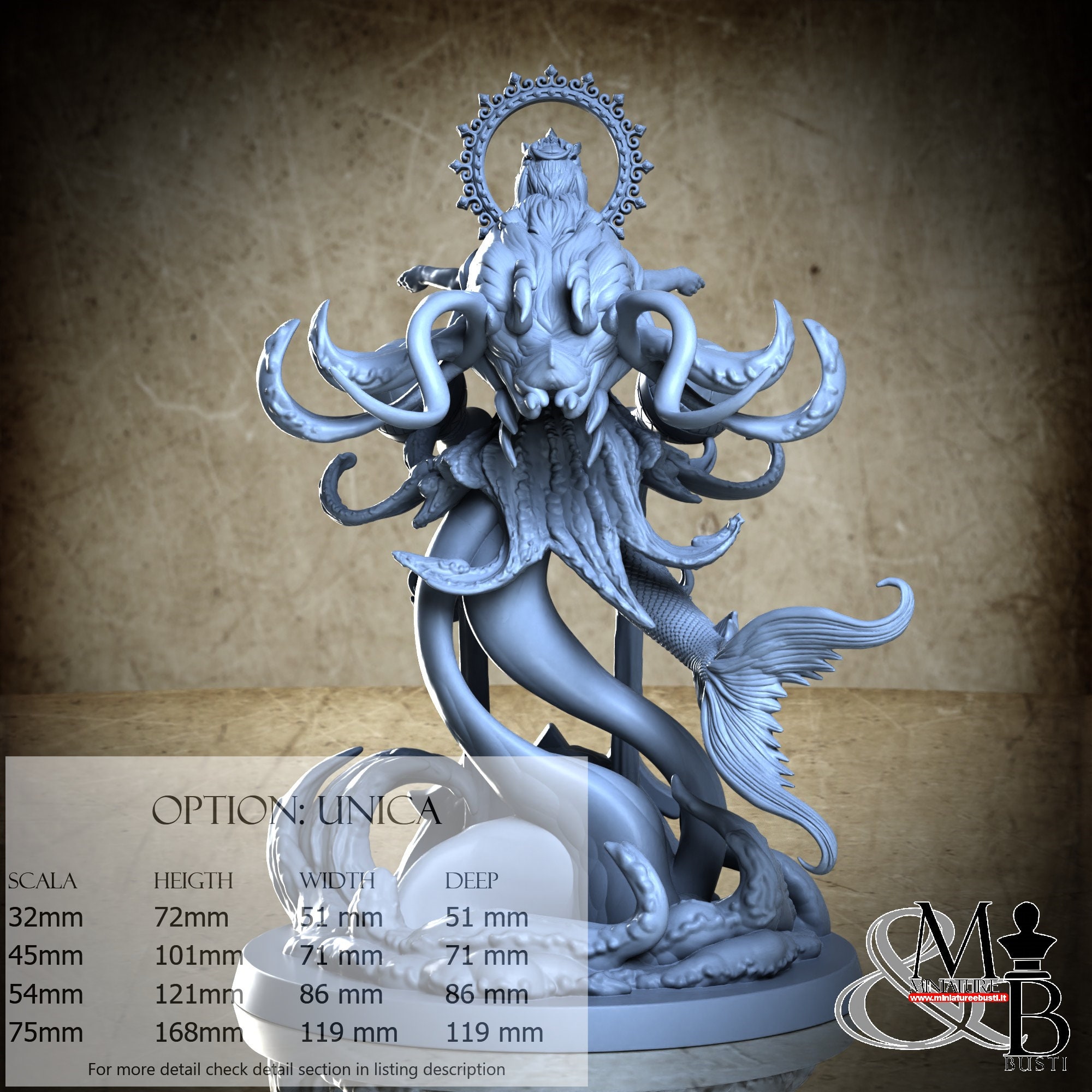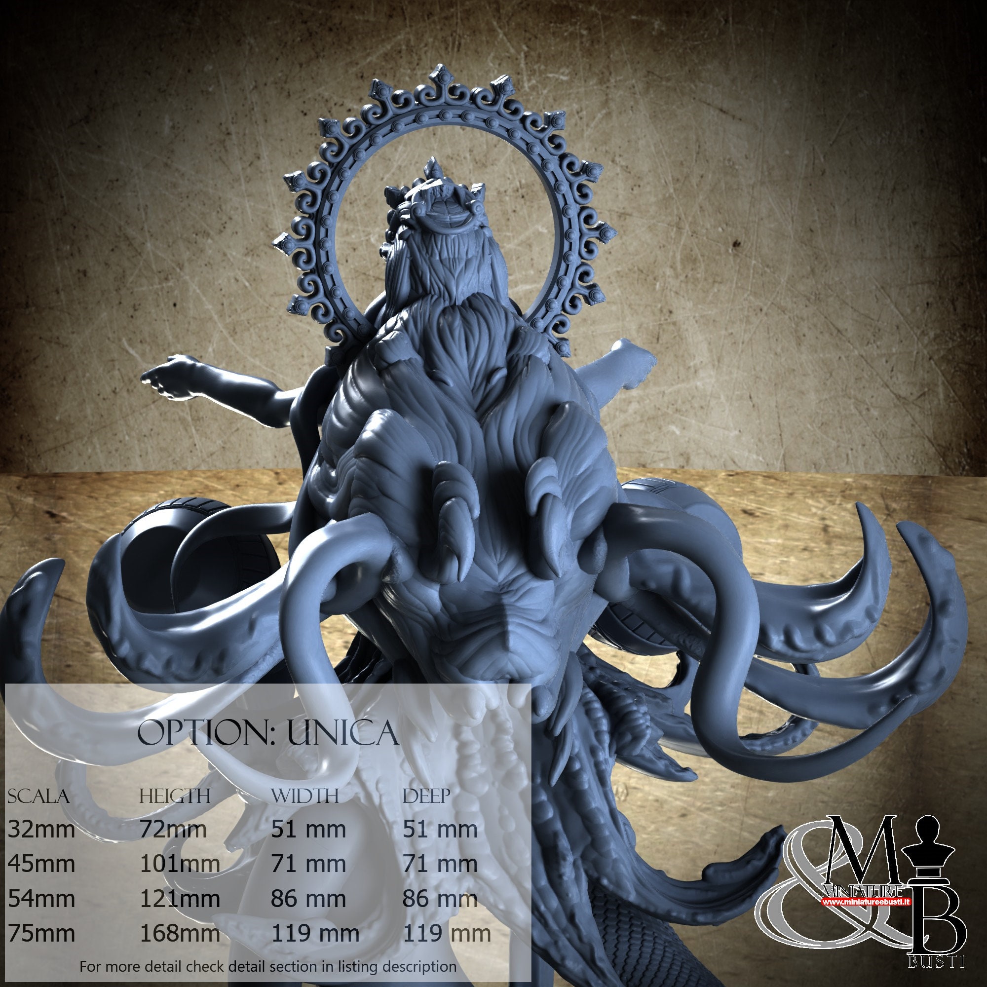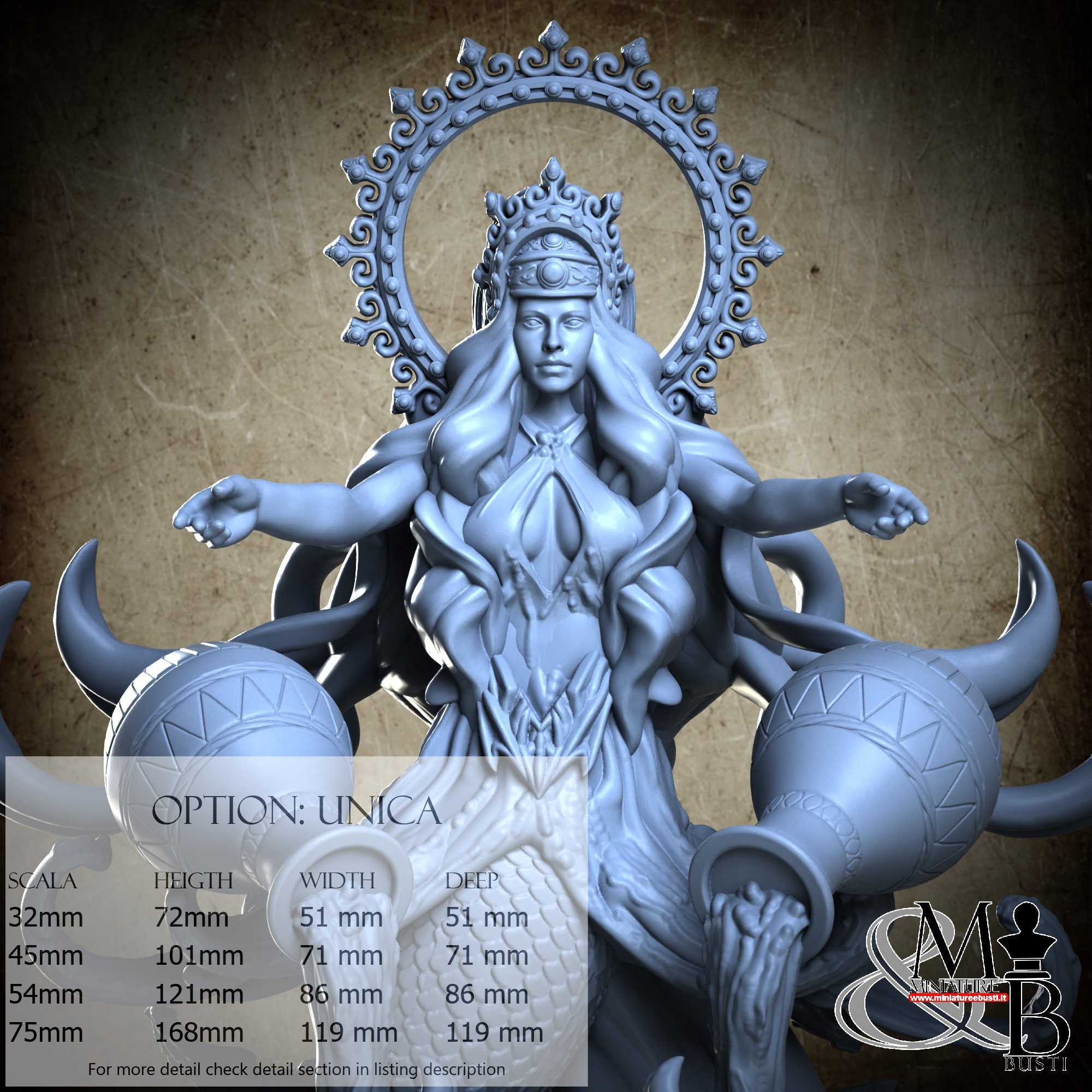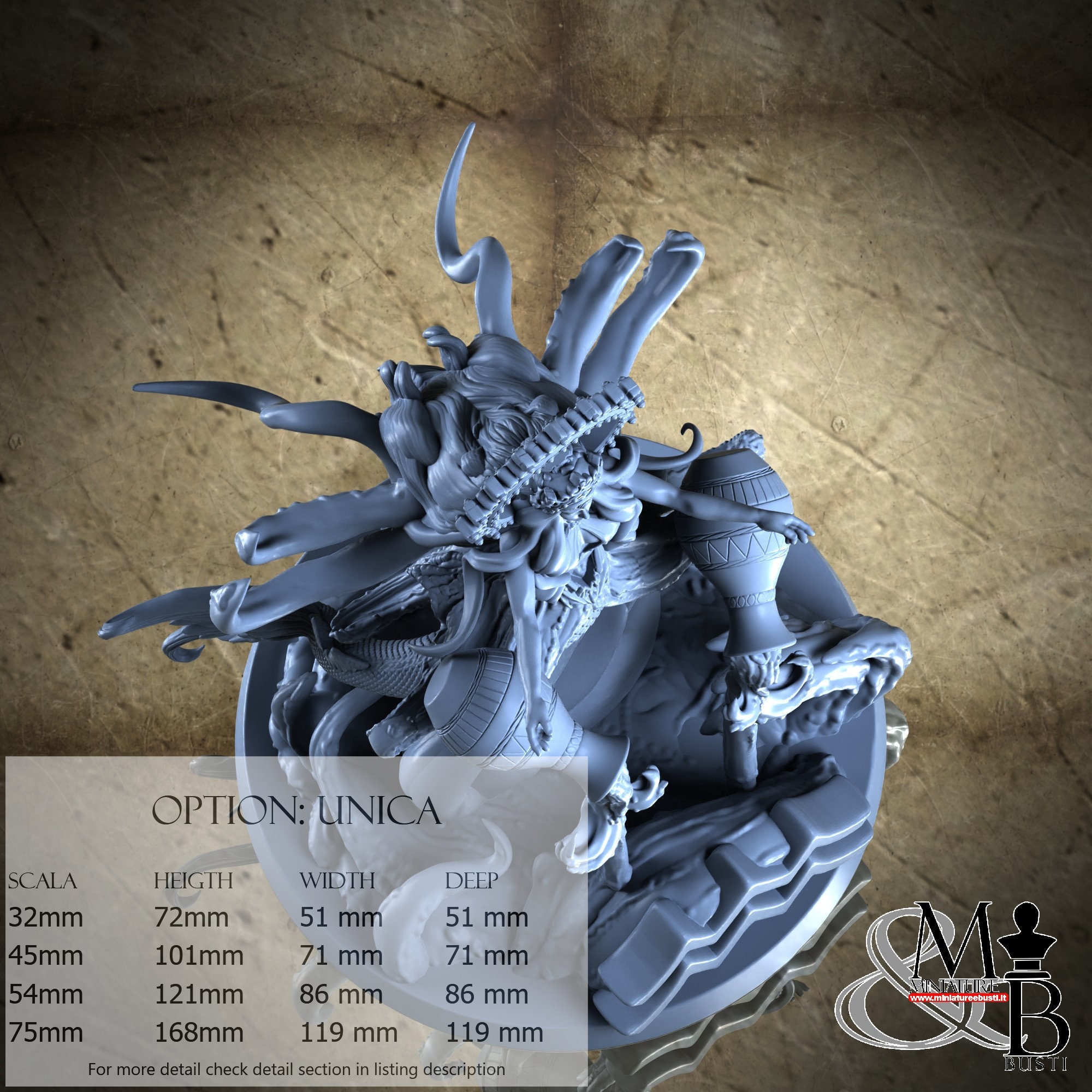 - Base (1 piece) in Resin: Height: 52 mm, Width: 69 mm, Depth: 69 mm