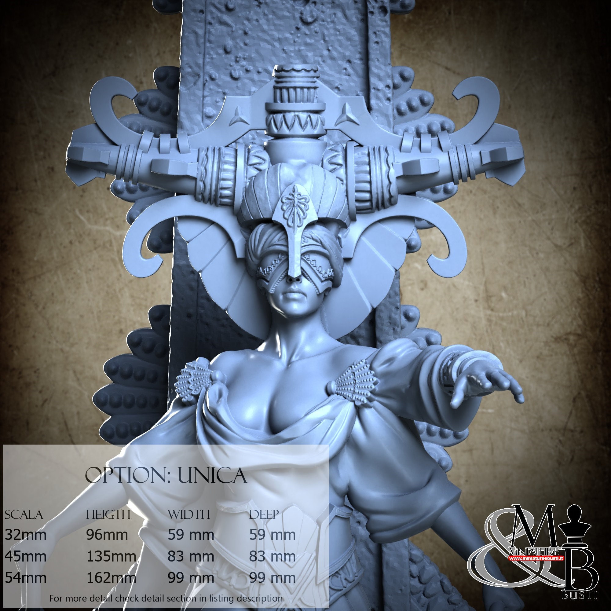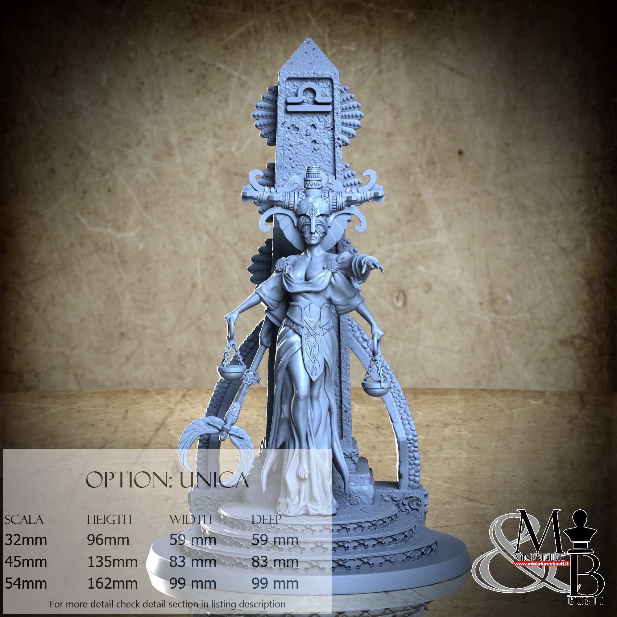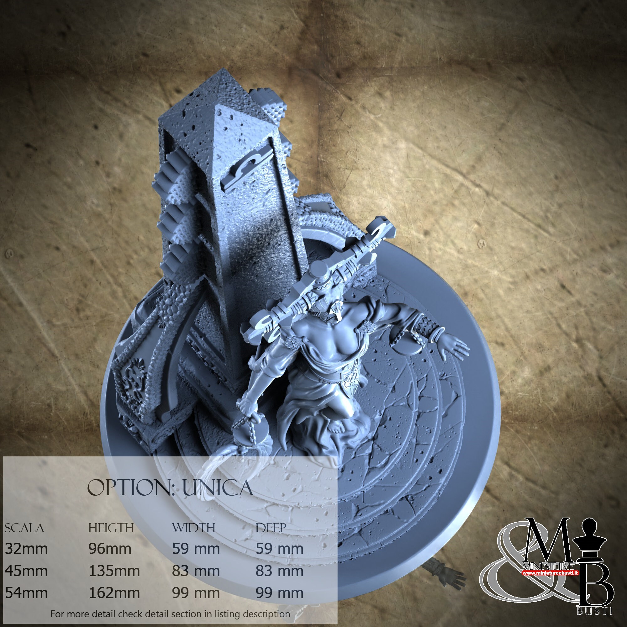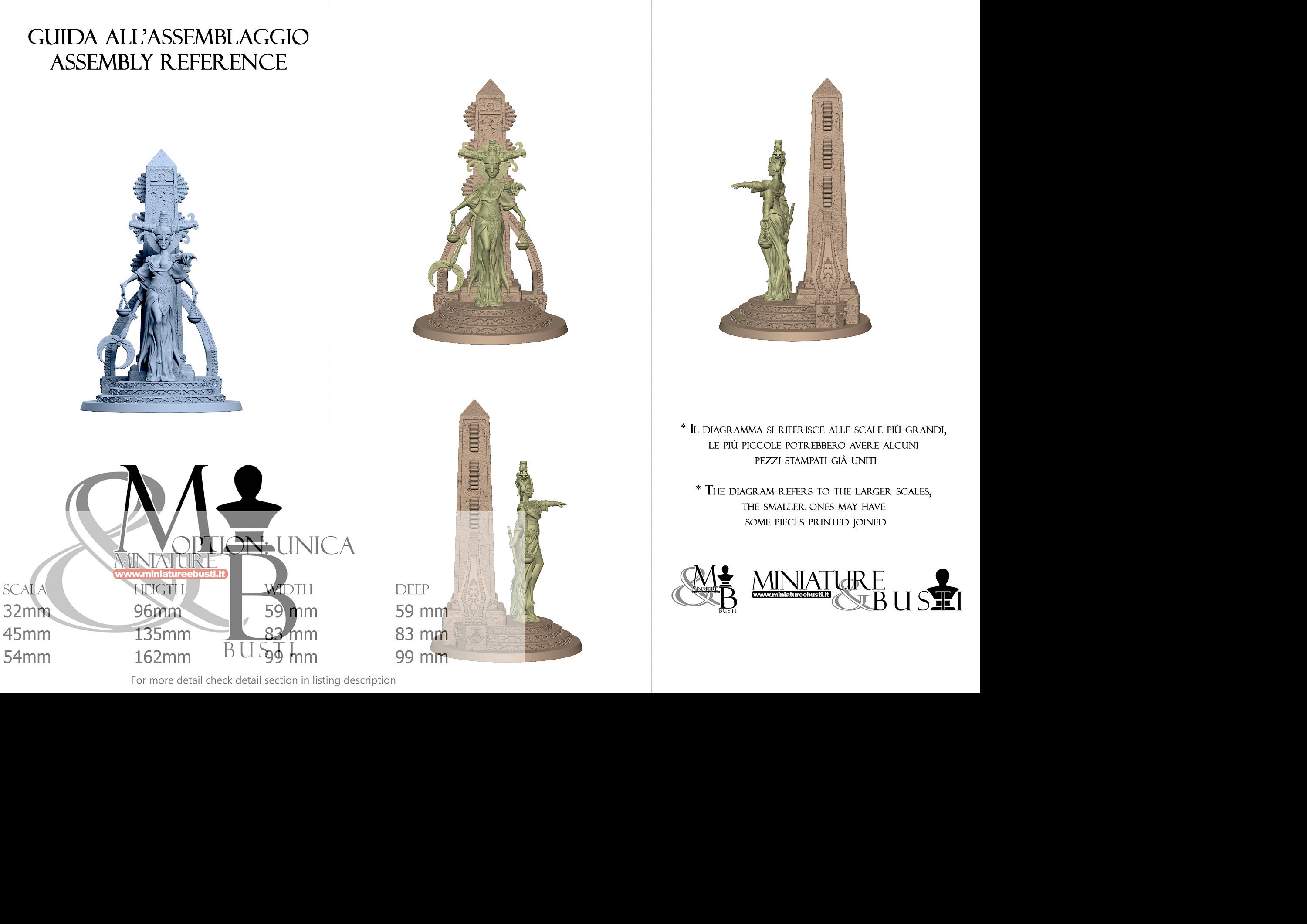 - Base (1 piece) in Resin: Height: 96 mm, Width: 59 mm, Depth: 59 mm