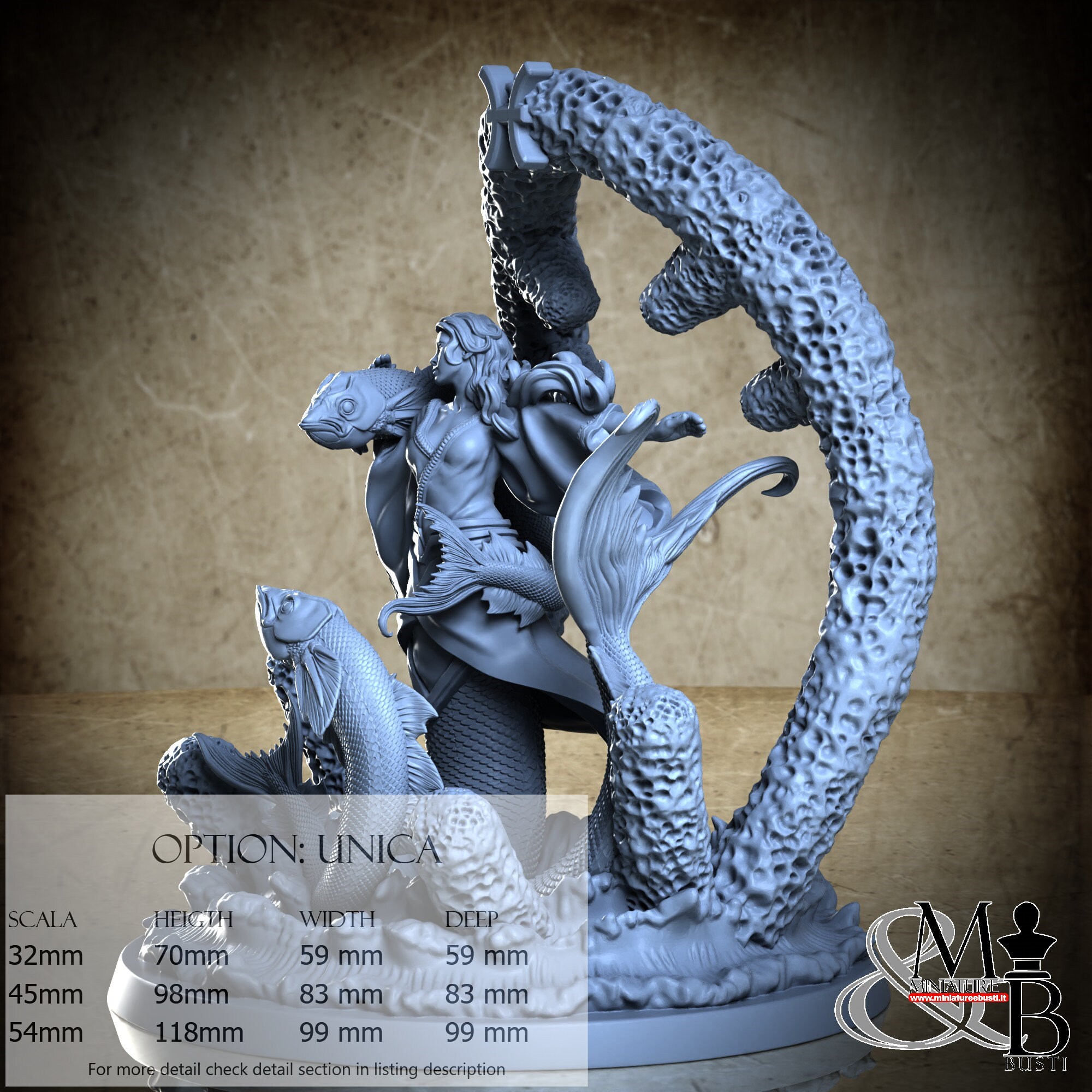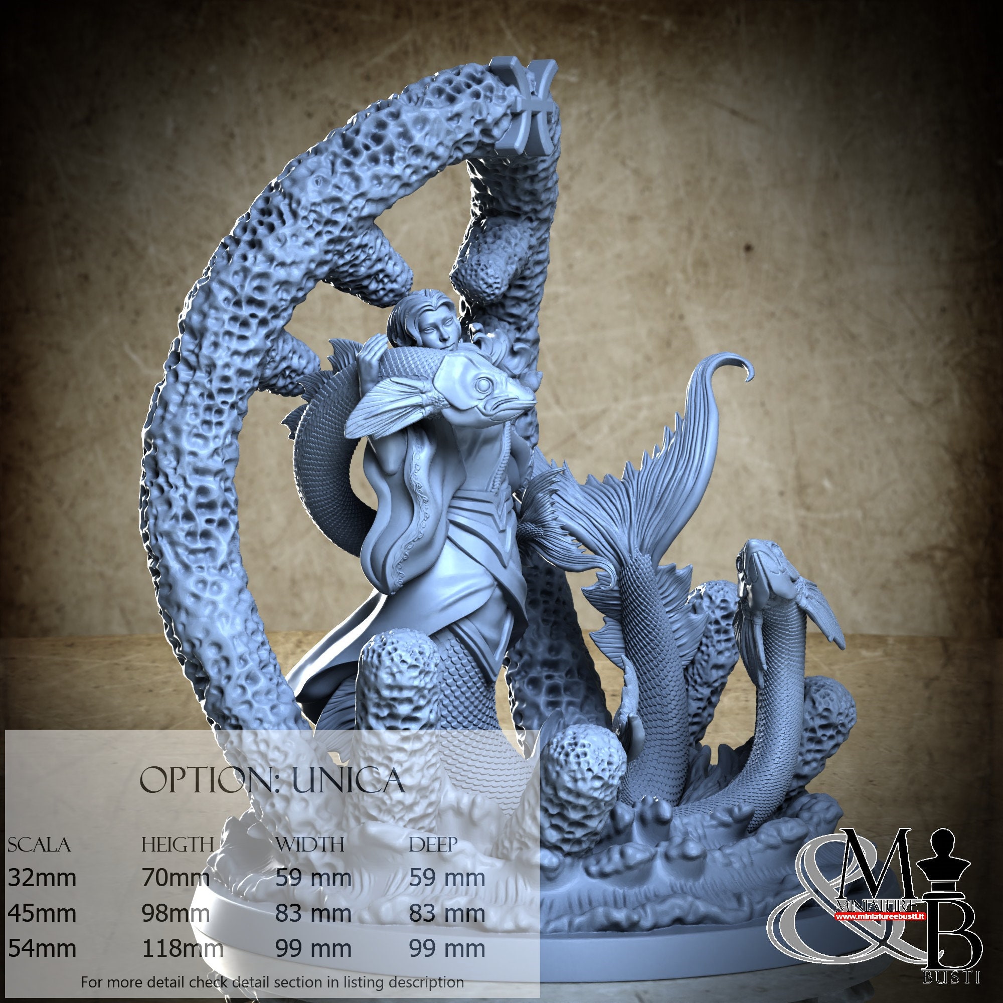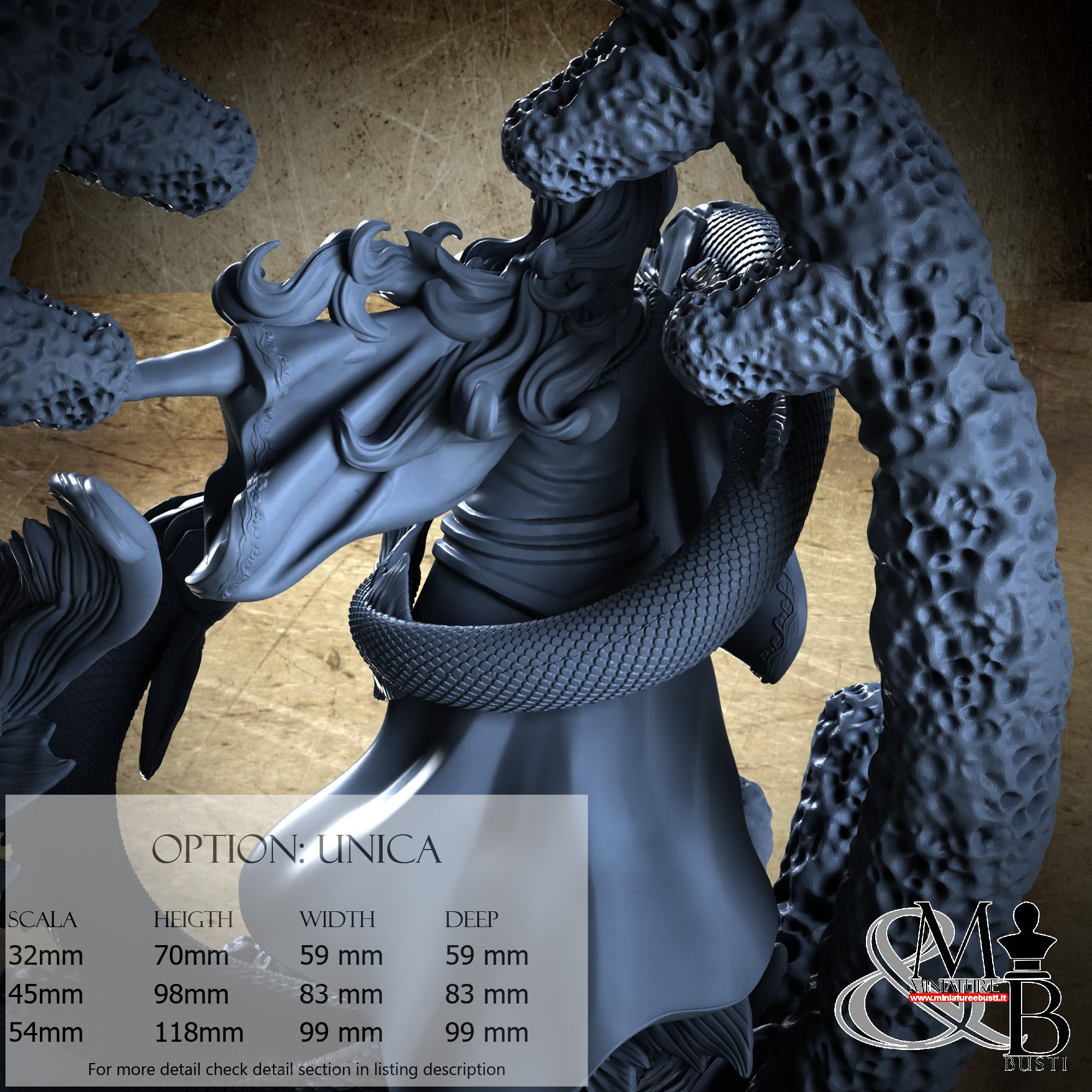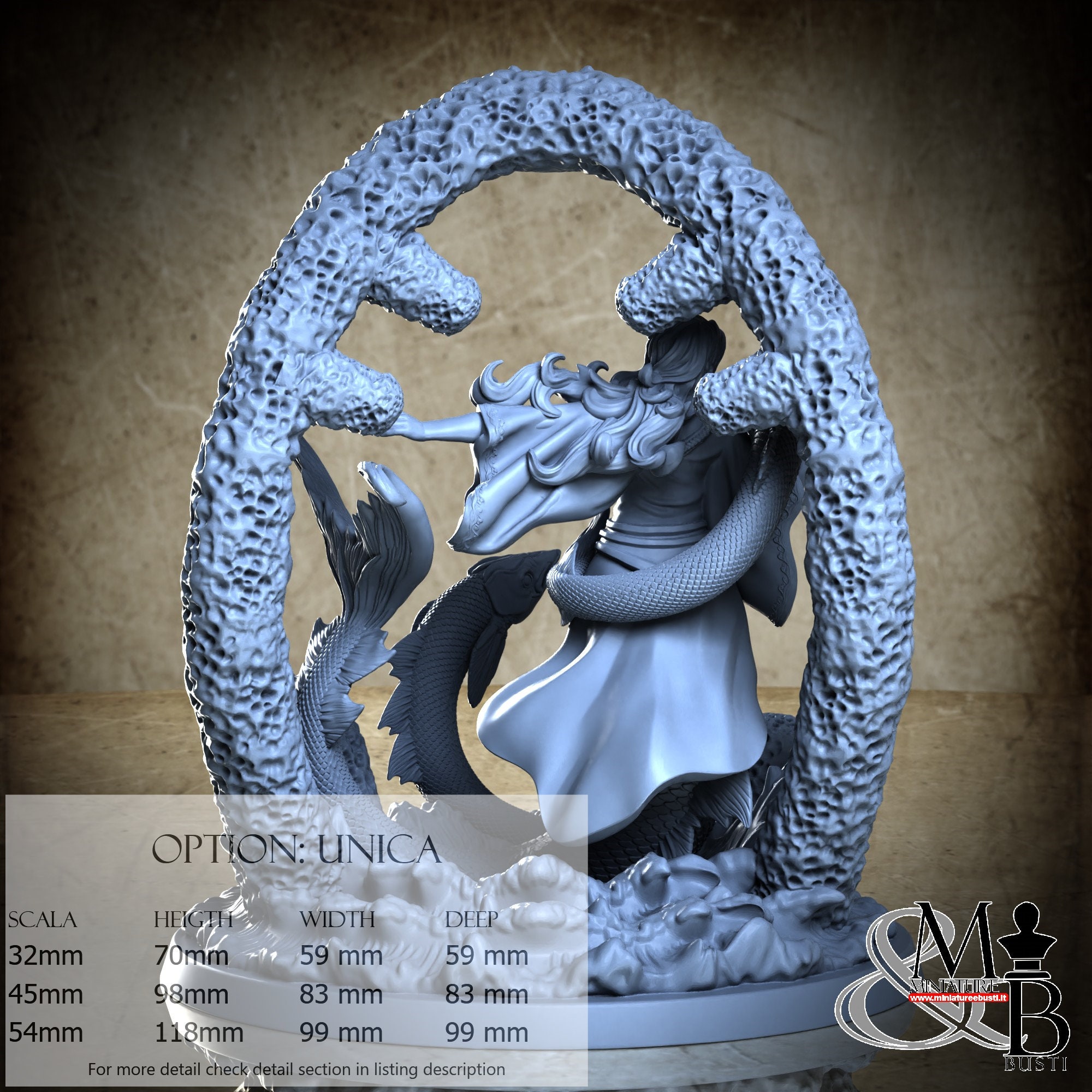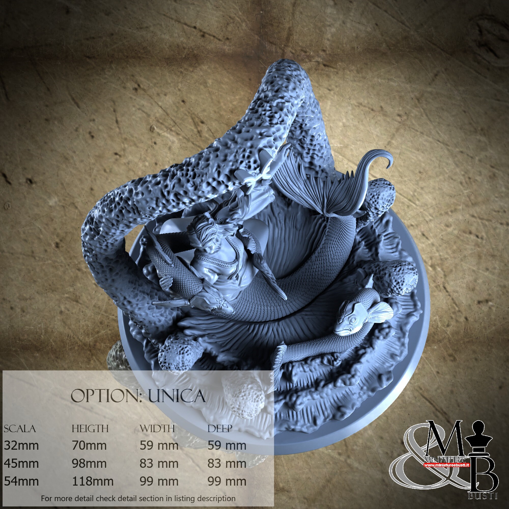 - Base (1 piece) in Resin: Height: 118 mm, Width: 99 mm, Depth: 99 mm