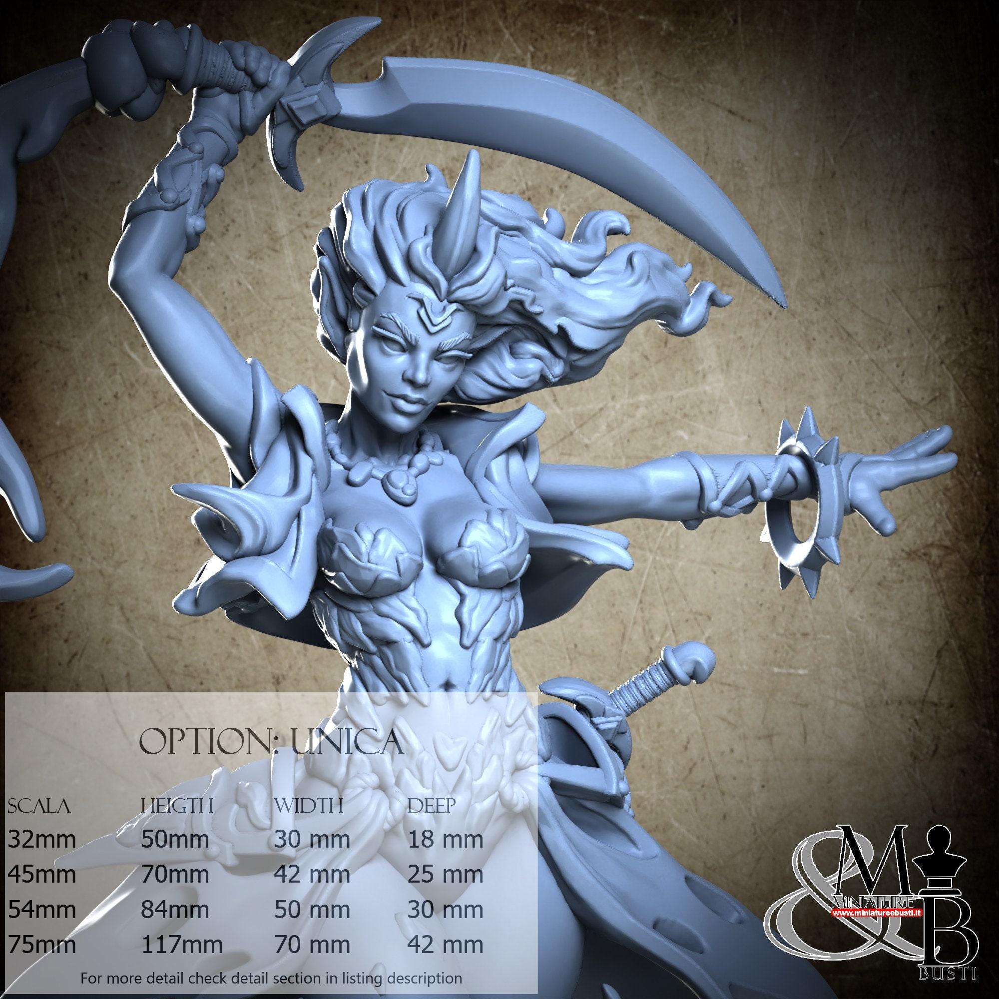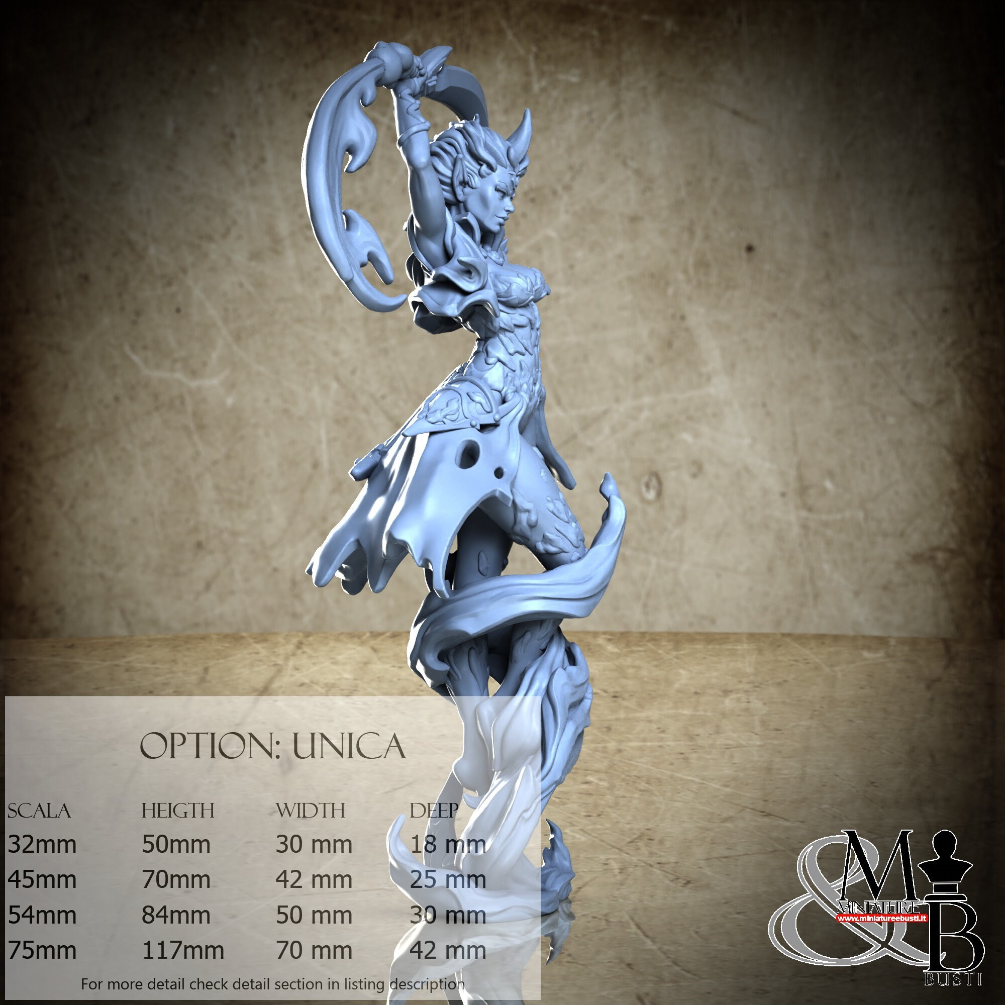 - Base (1 piece) in Resin: Height: 58 mm, Width: 35 mm, Depth: 30 mm