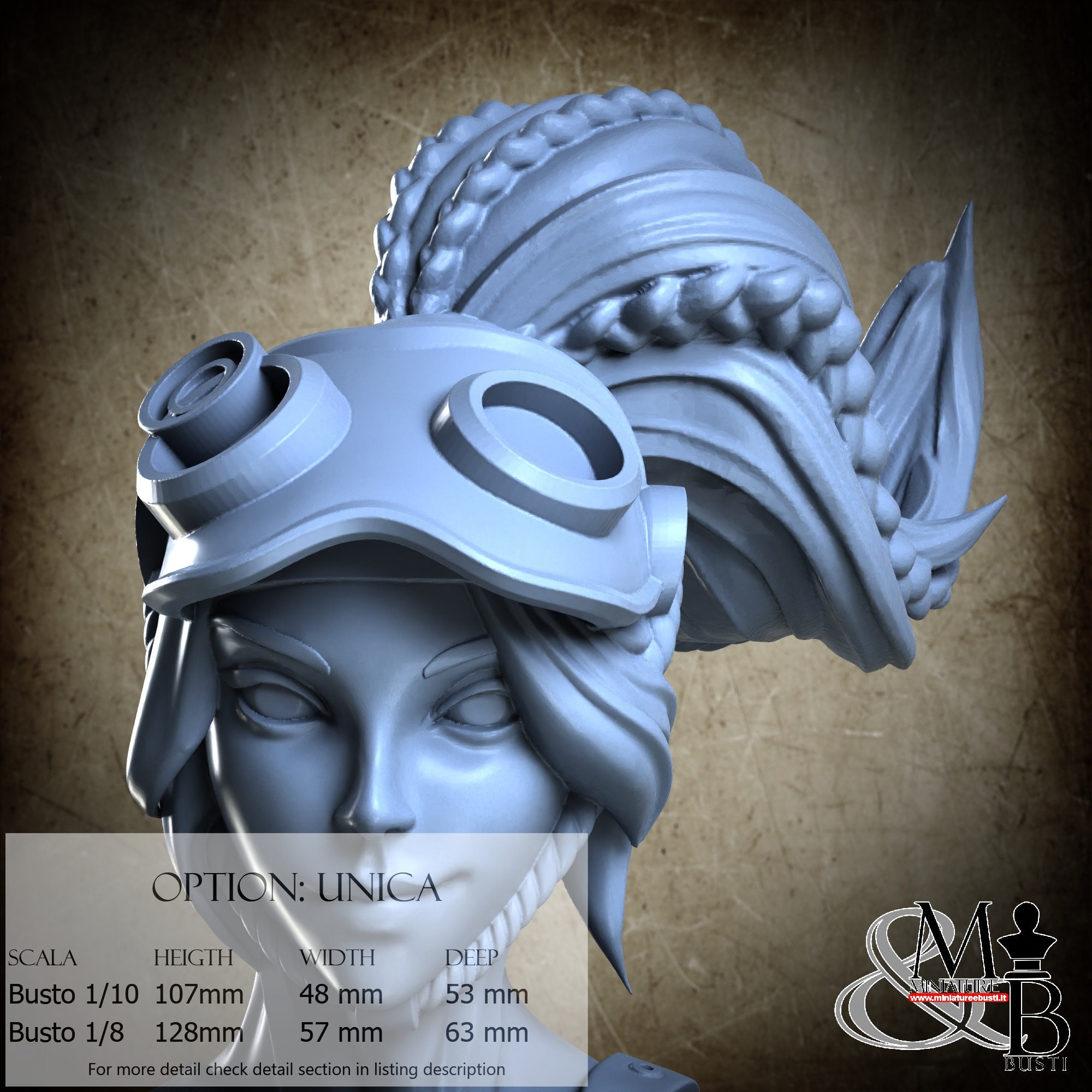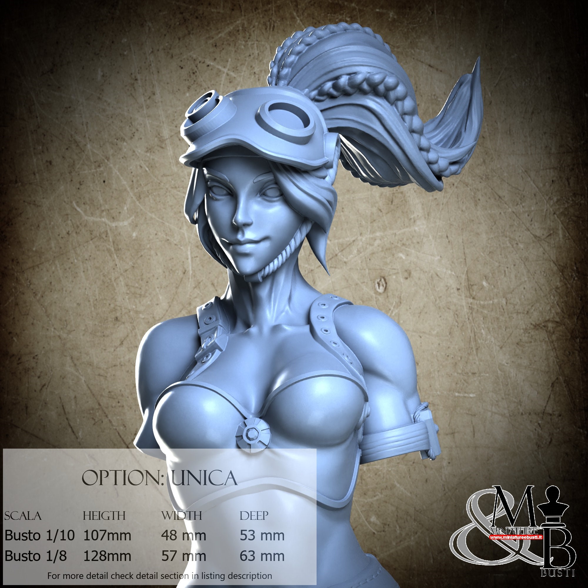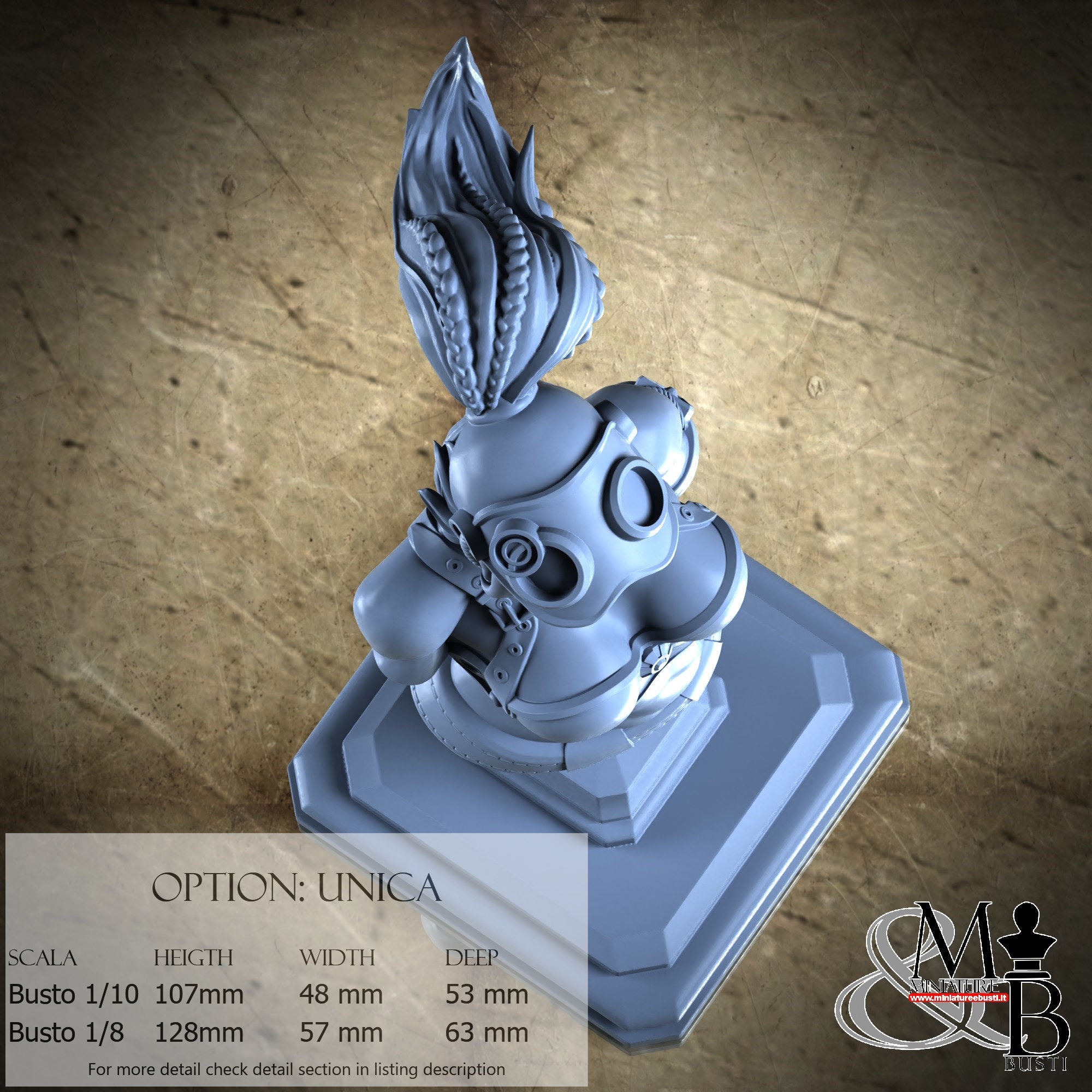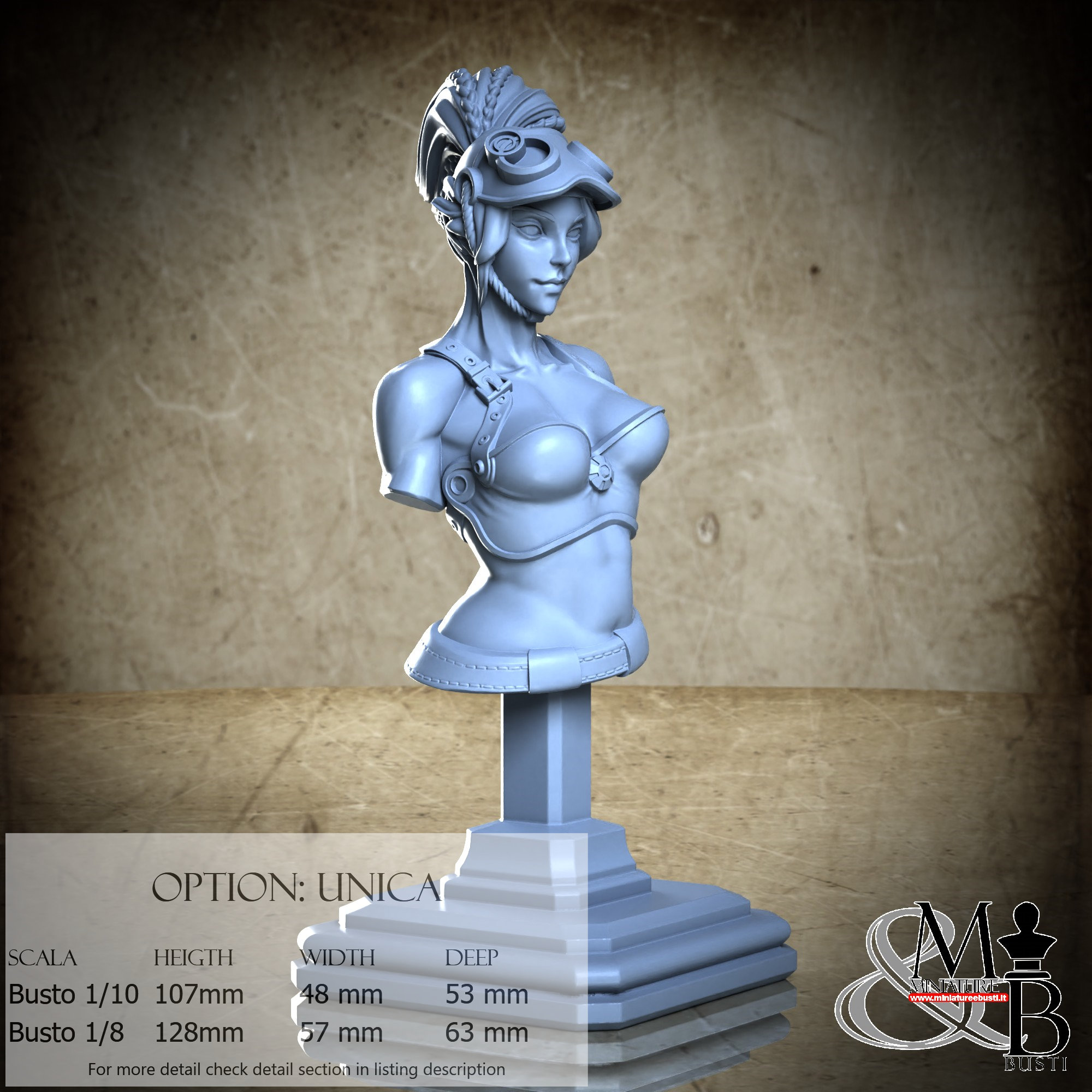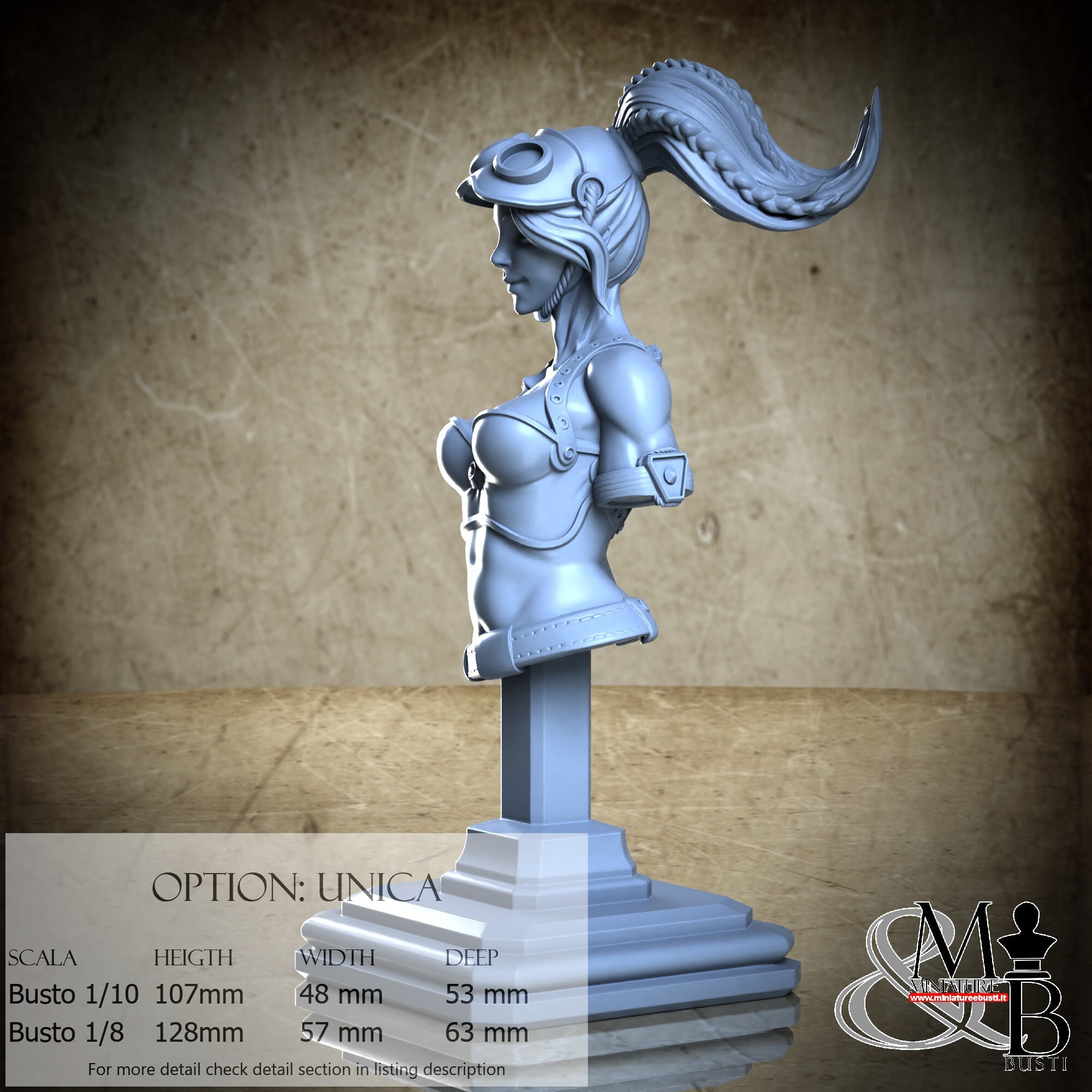 Bust Scale 1/10, cost €. 35.00 (Height: 107 mm, Width: 48 mm, Depth: 53 mm), composed of the following components: