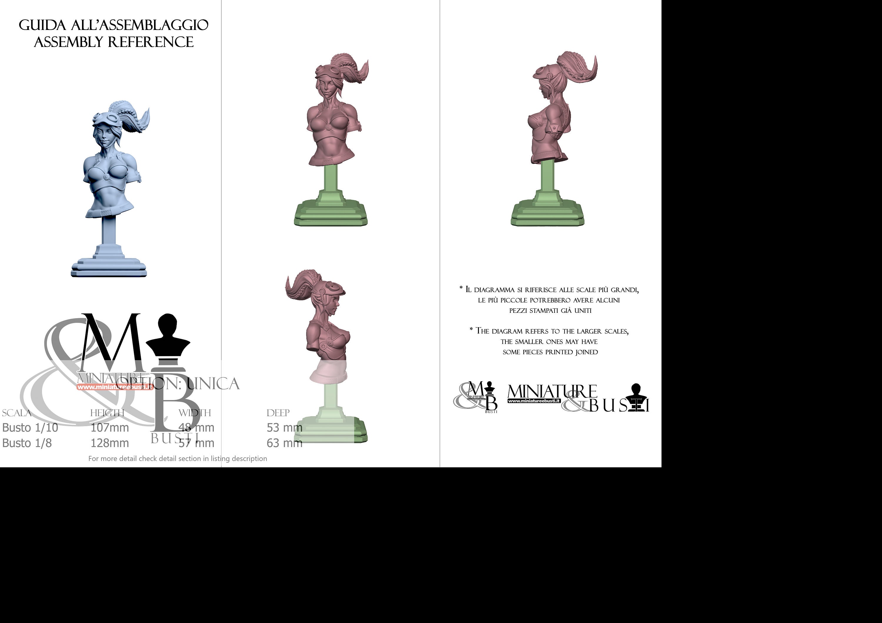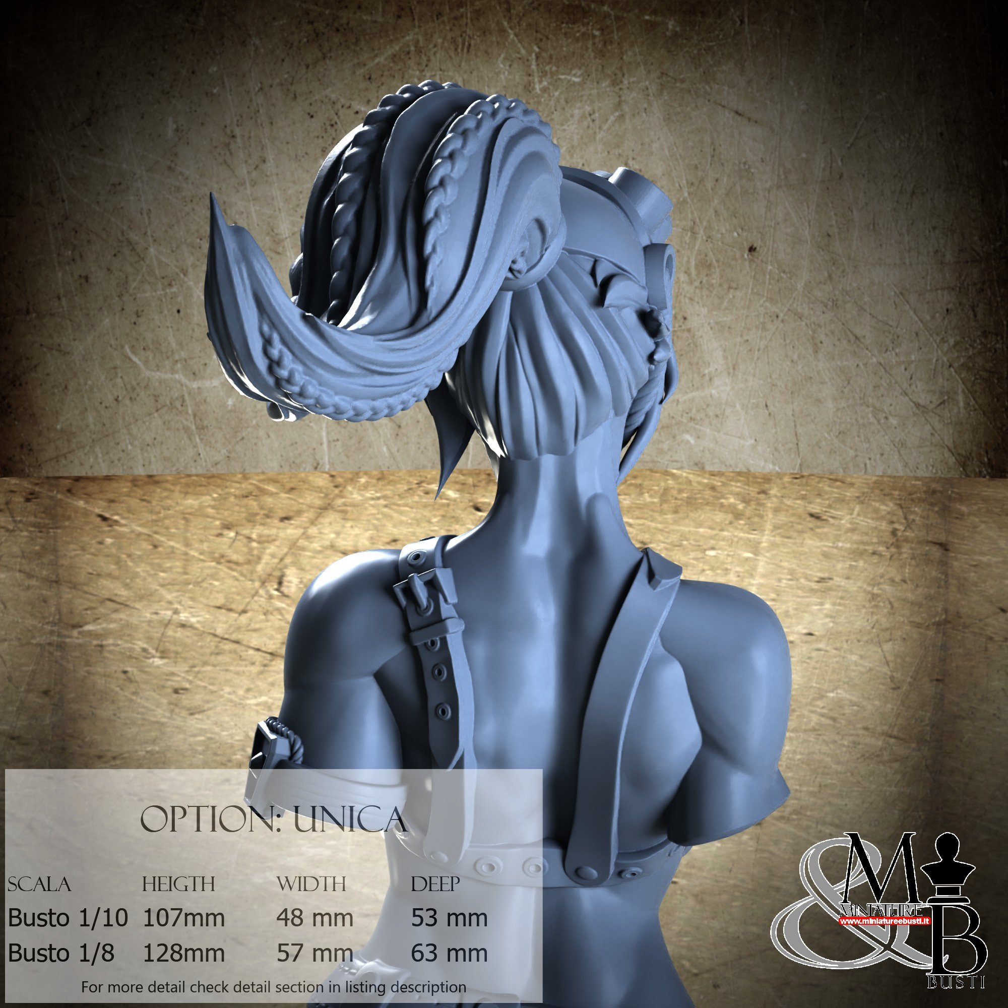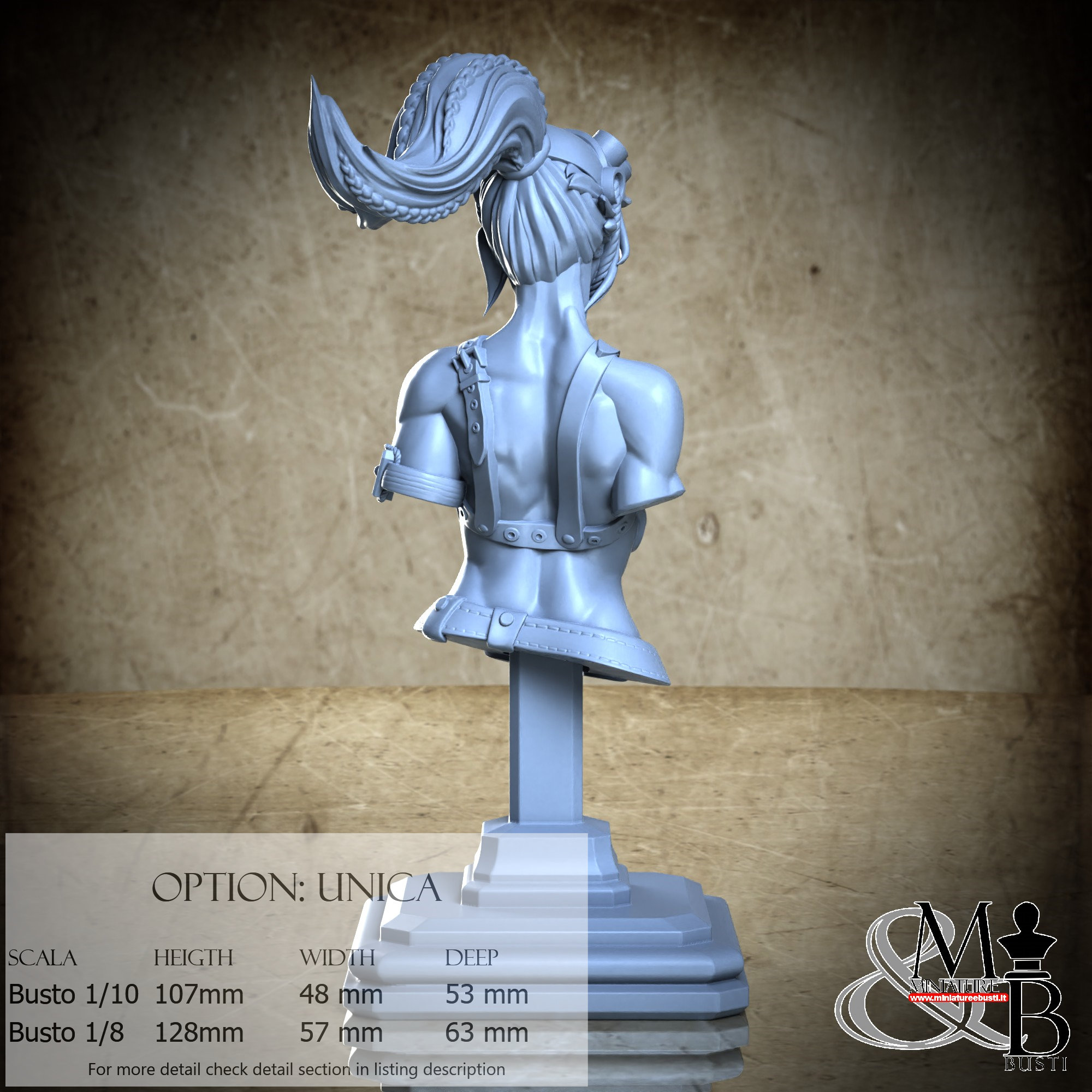 Bust Scale 1/8, cost €. 45.00 (Height: 128 mm, Width: 57 mm, Depth: 63 mm), composed of the following components: