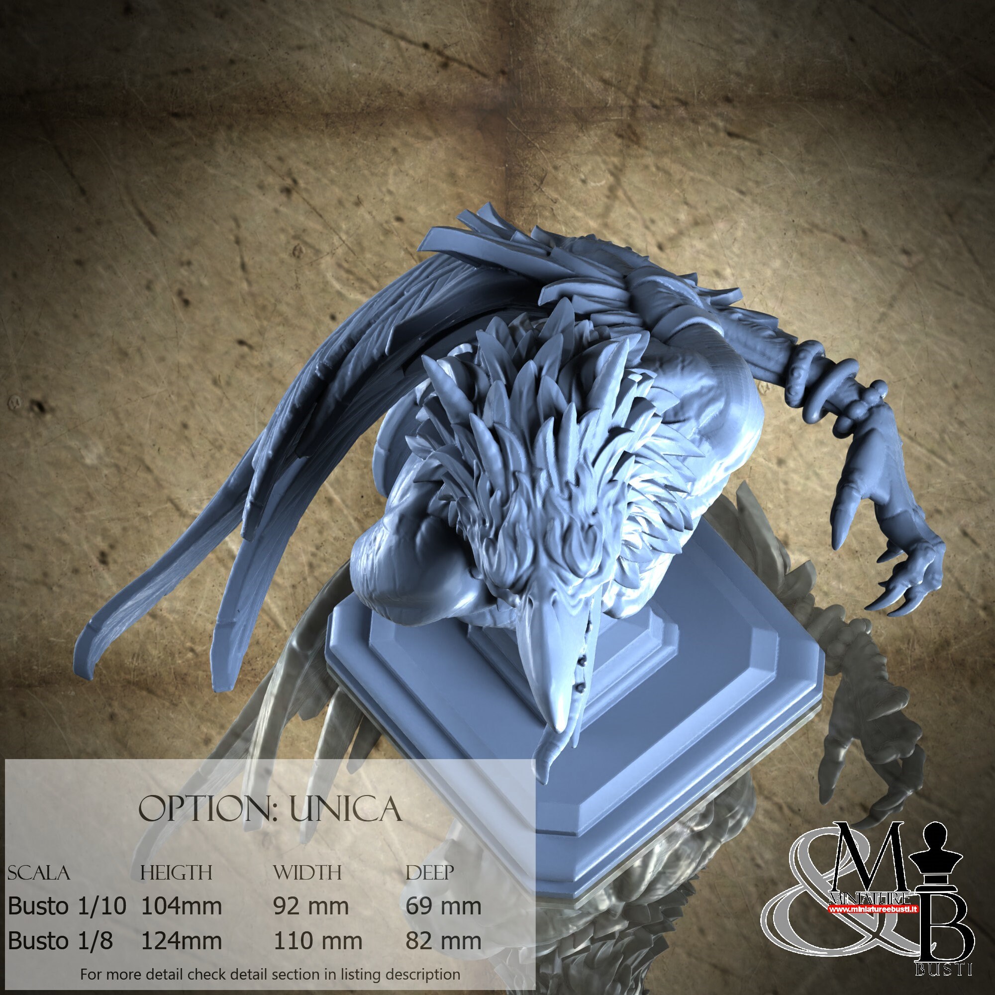 Bust Scale 1/10, cost €. 35.00 (Height: 104 mm, Width: 92 mm, Depth: 69 mm), composed of the following components:
