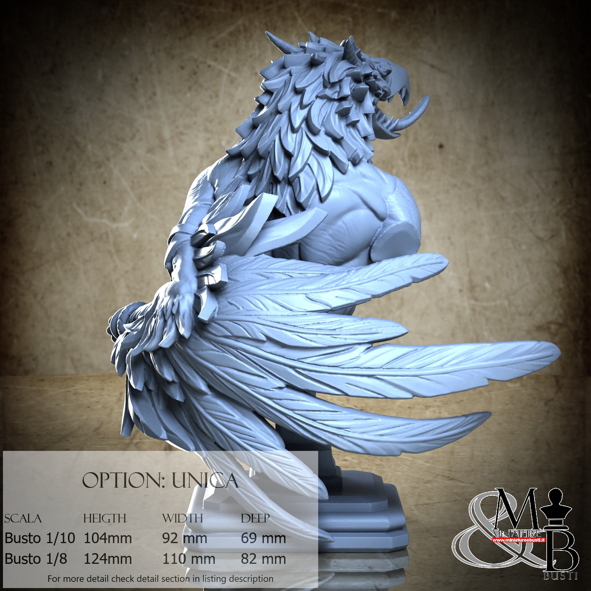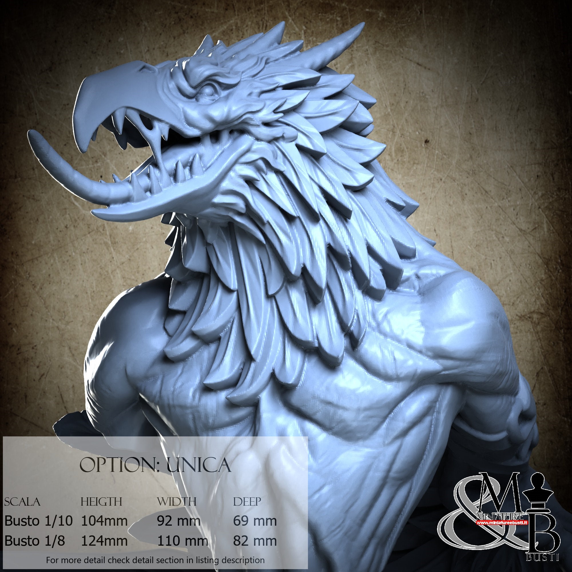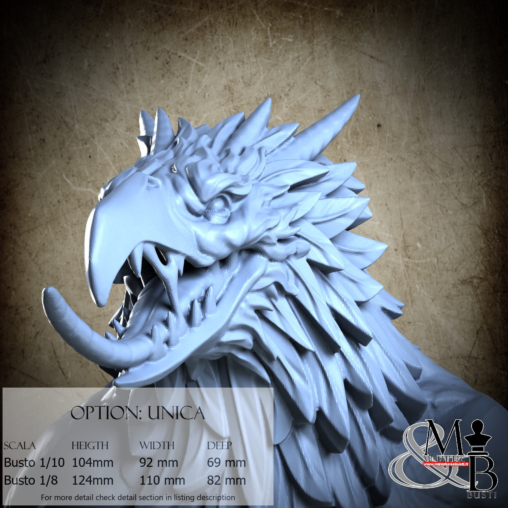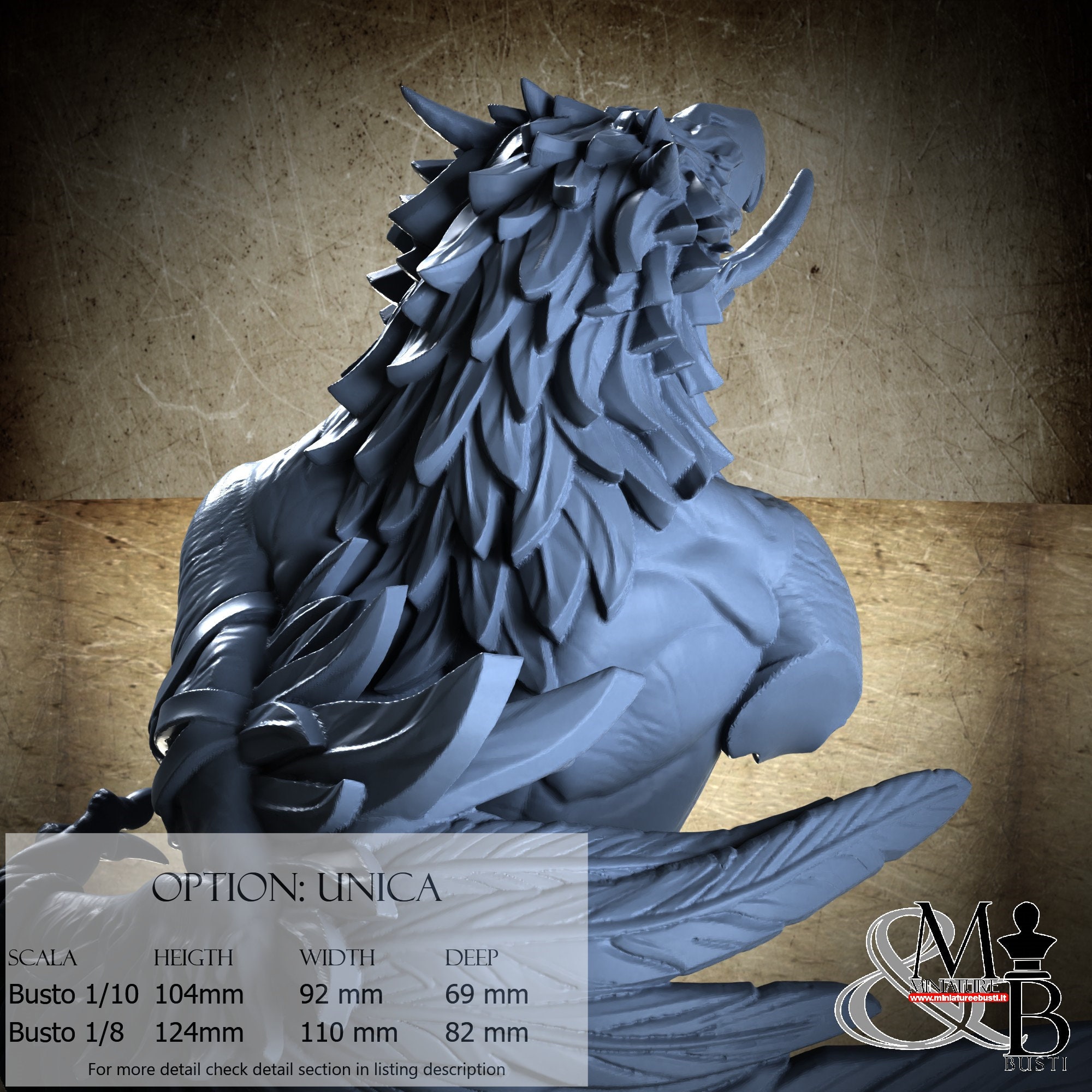 Bust Scale 1/8, cost €. 45.00 (Height: 124 mm, Width: 110 mm, Depth: 82 mm), composed of the following components: