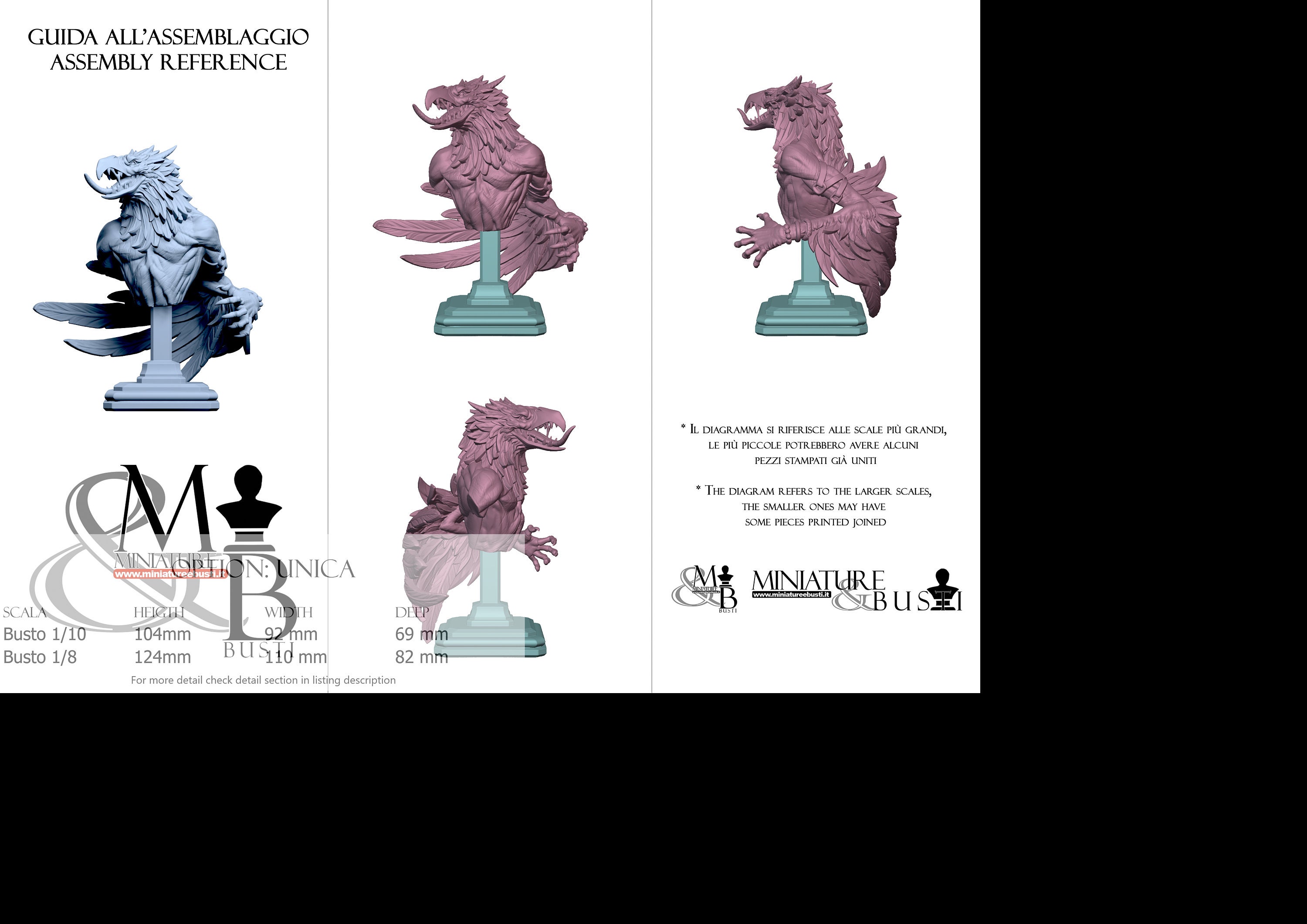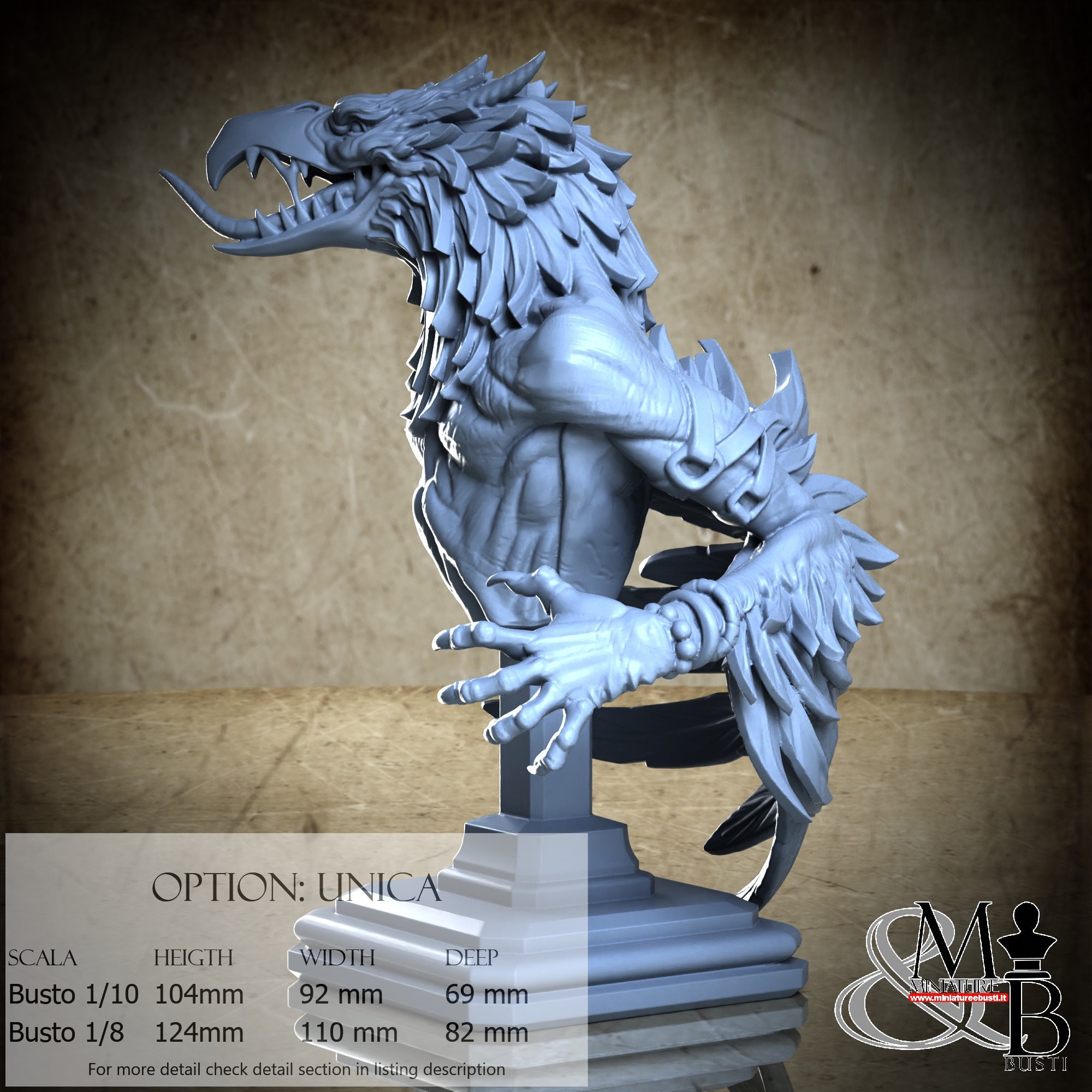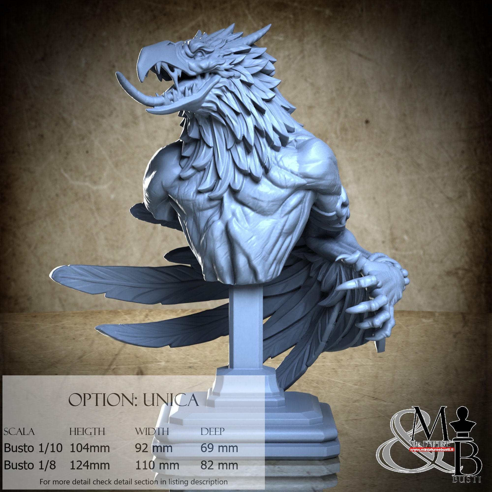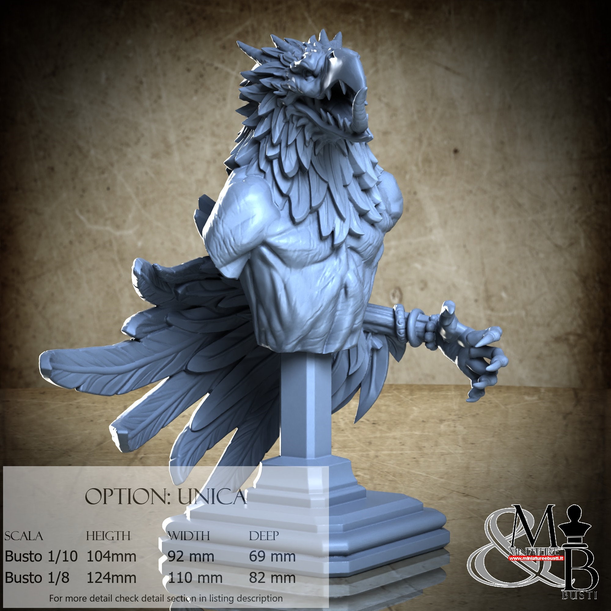 Bust Scale 1/8, cost €. 45.00 (Height: 124 mm, Width: 110 mm, Depth: 82 mm), composed of the following components: