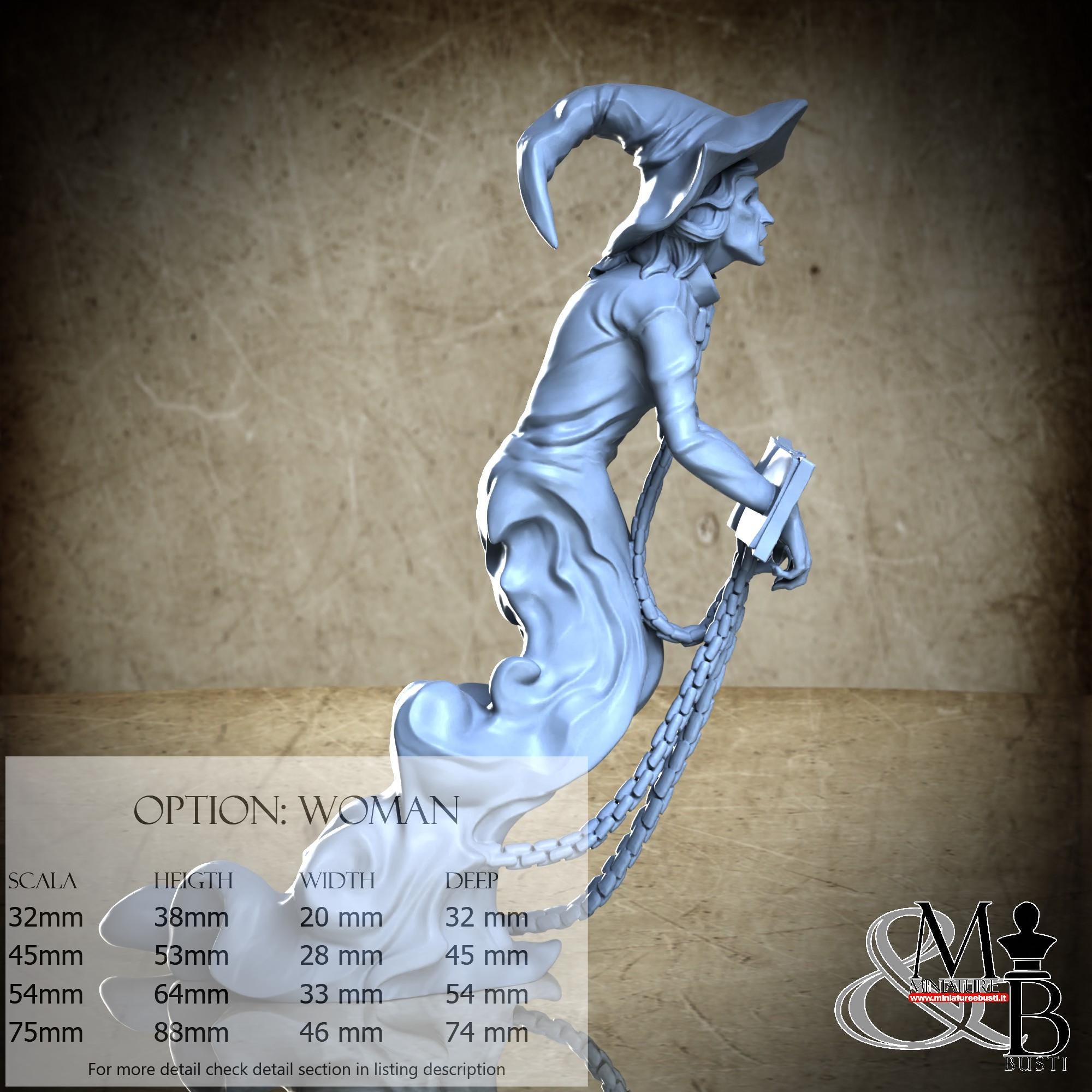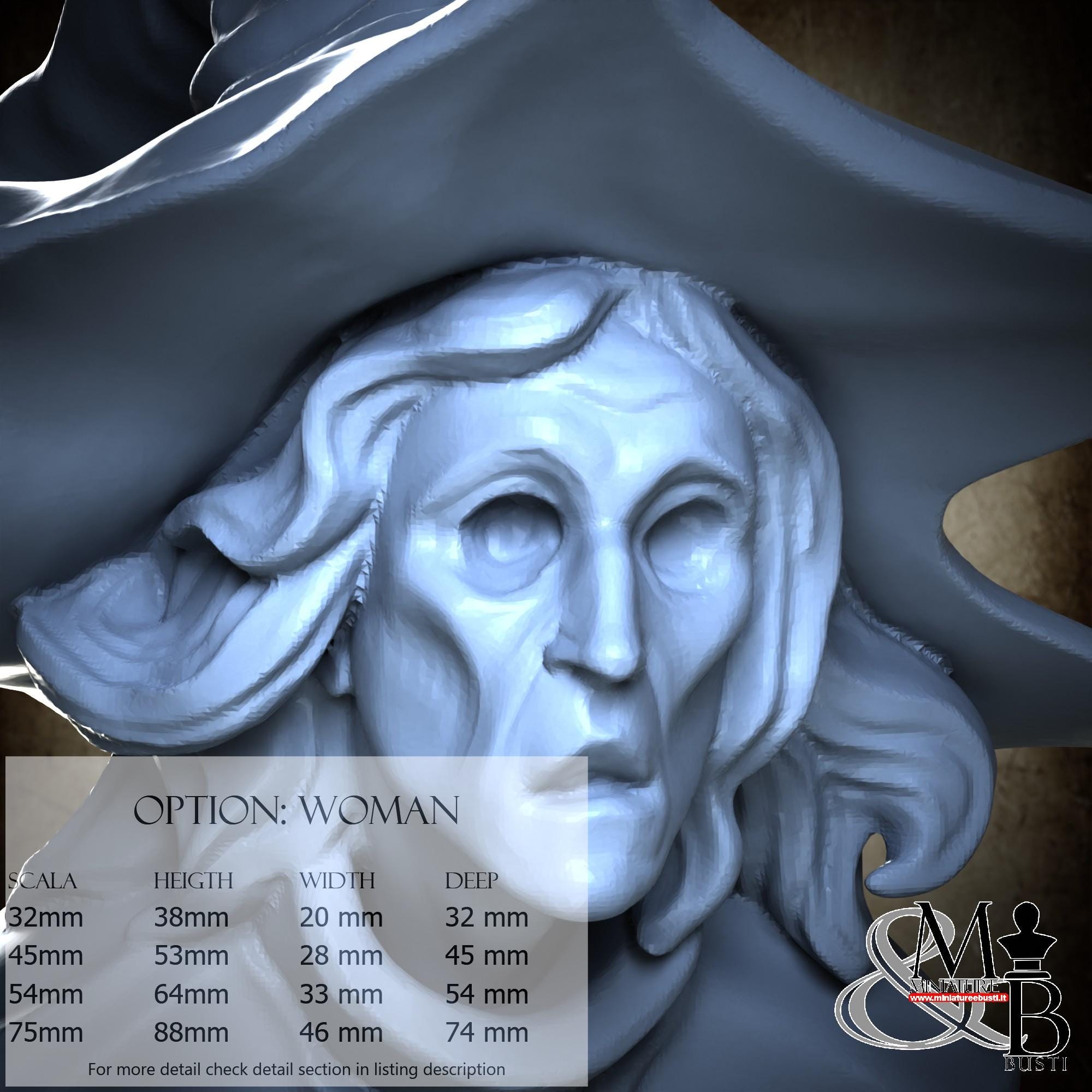 Woman variant, available in the following scales and costs: