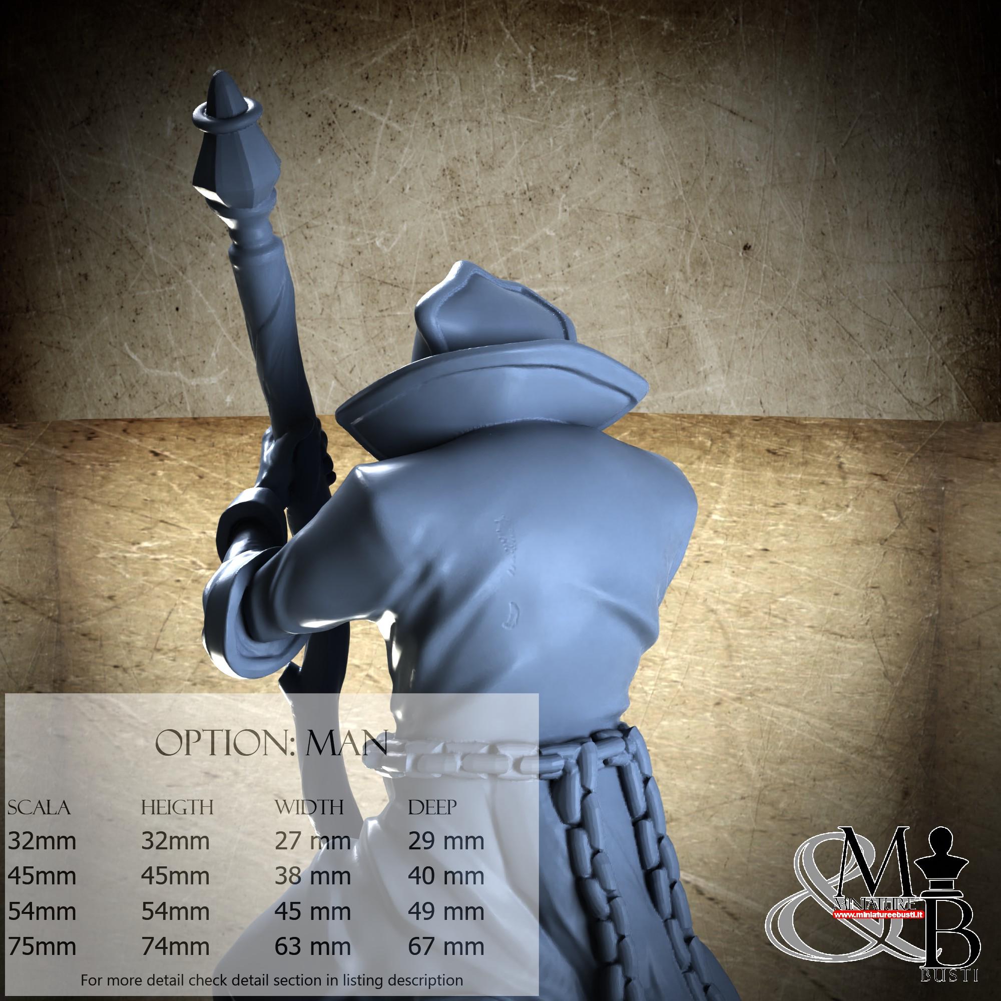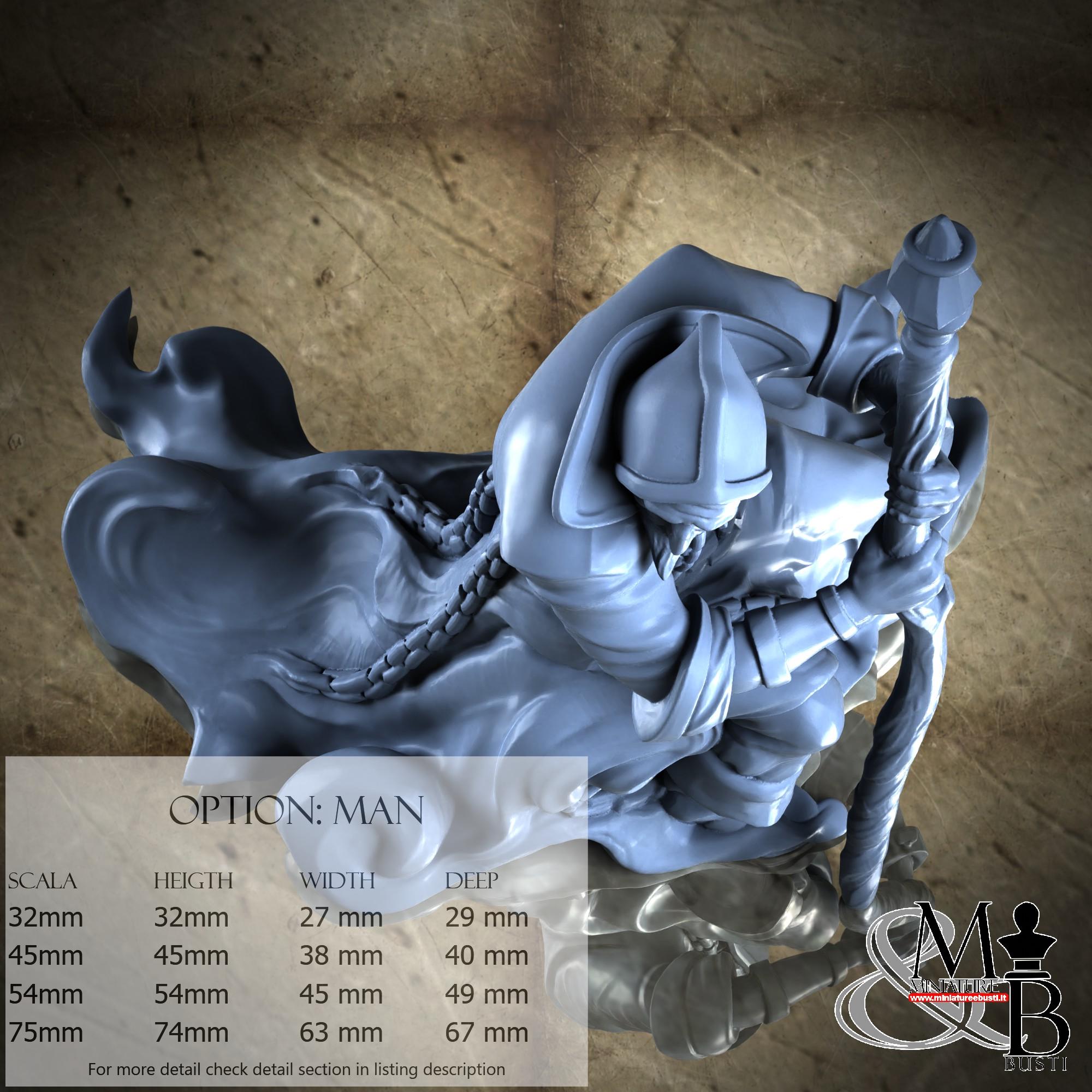 - Figure (1 piece) in Resin: Height: 53 mm, Width: 28 mm, Depth: 45 mm