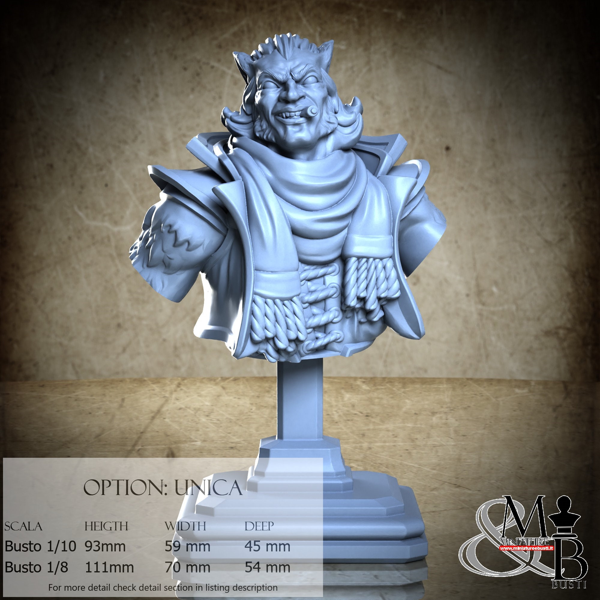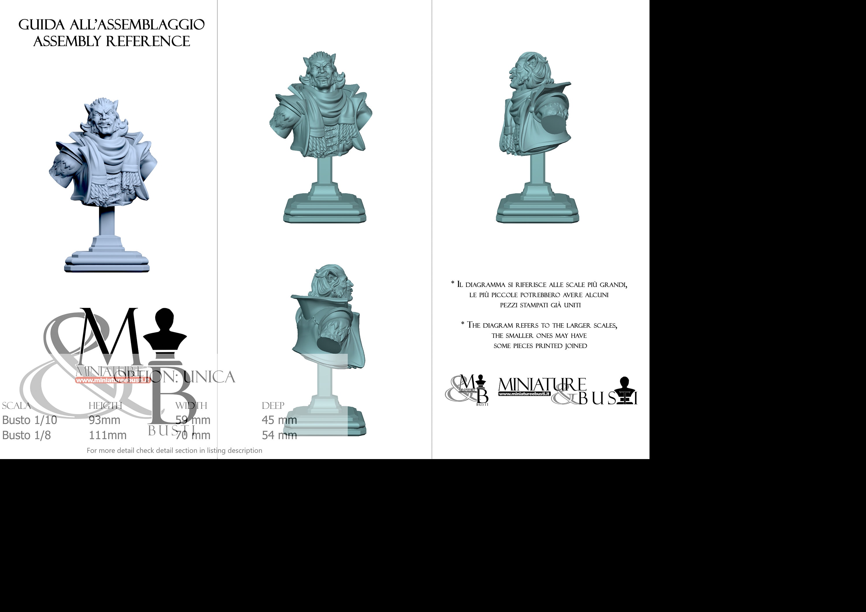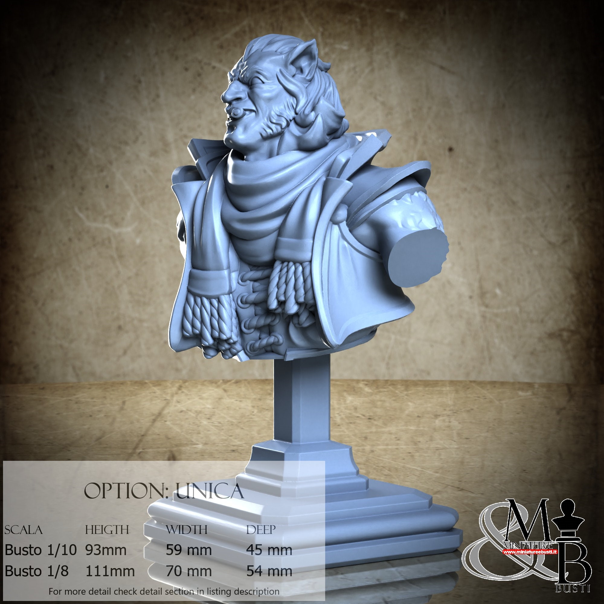 1/8 Bust Scale, cost €45.00 (Height: 111 mm, Width: 70 mm, Depth: 54 mm), composed of the following components: