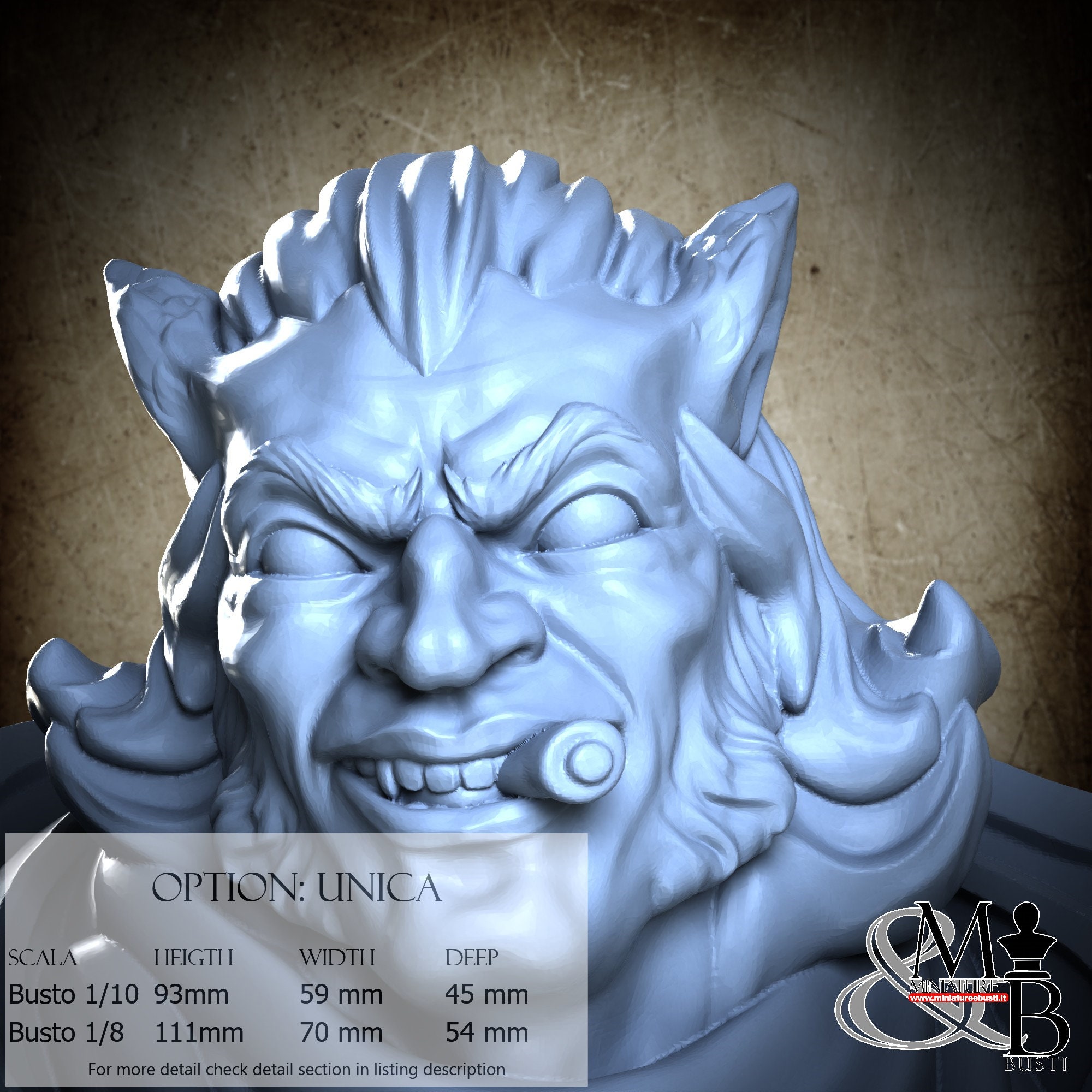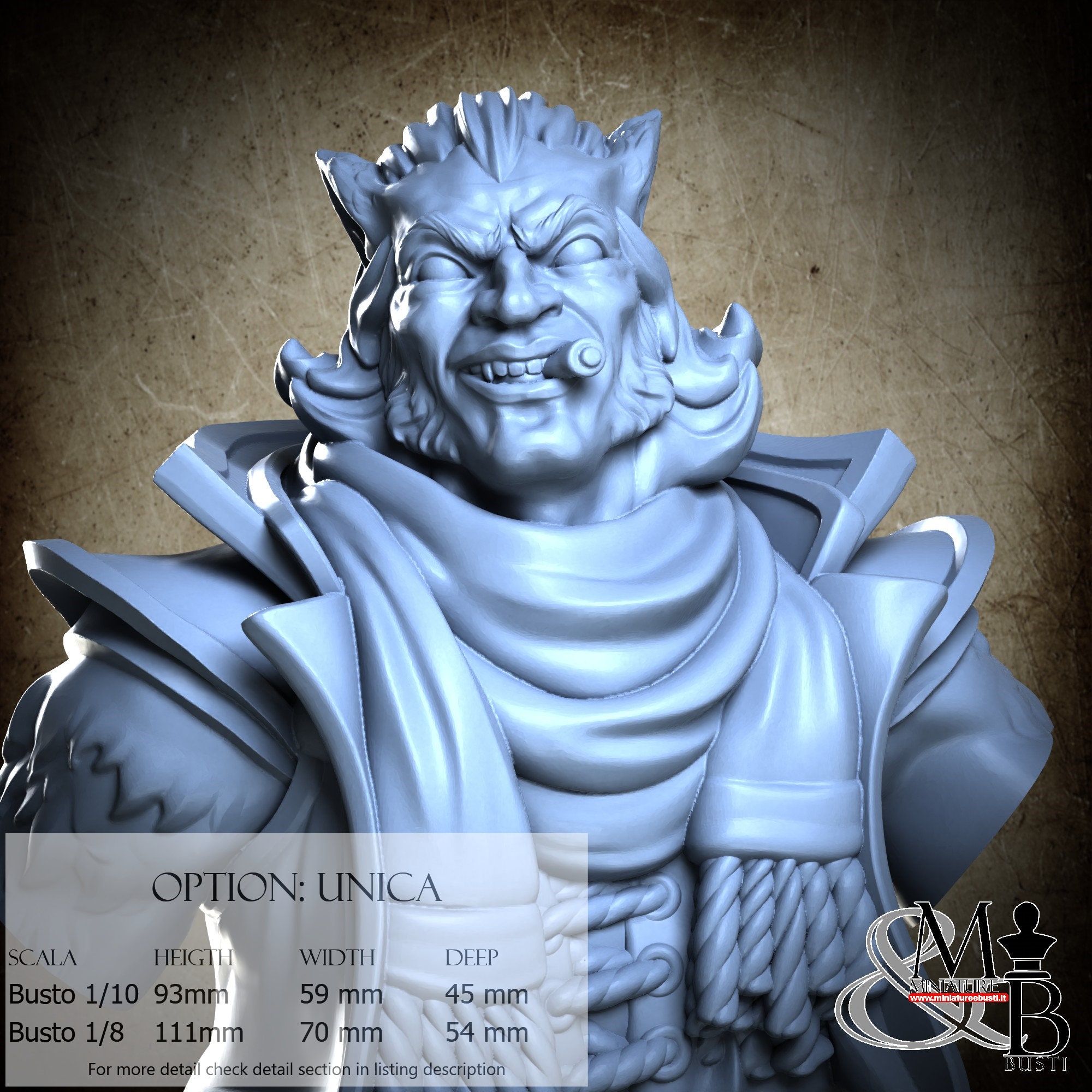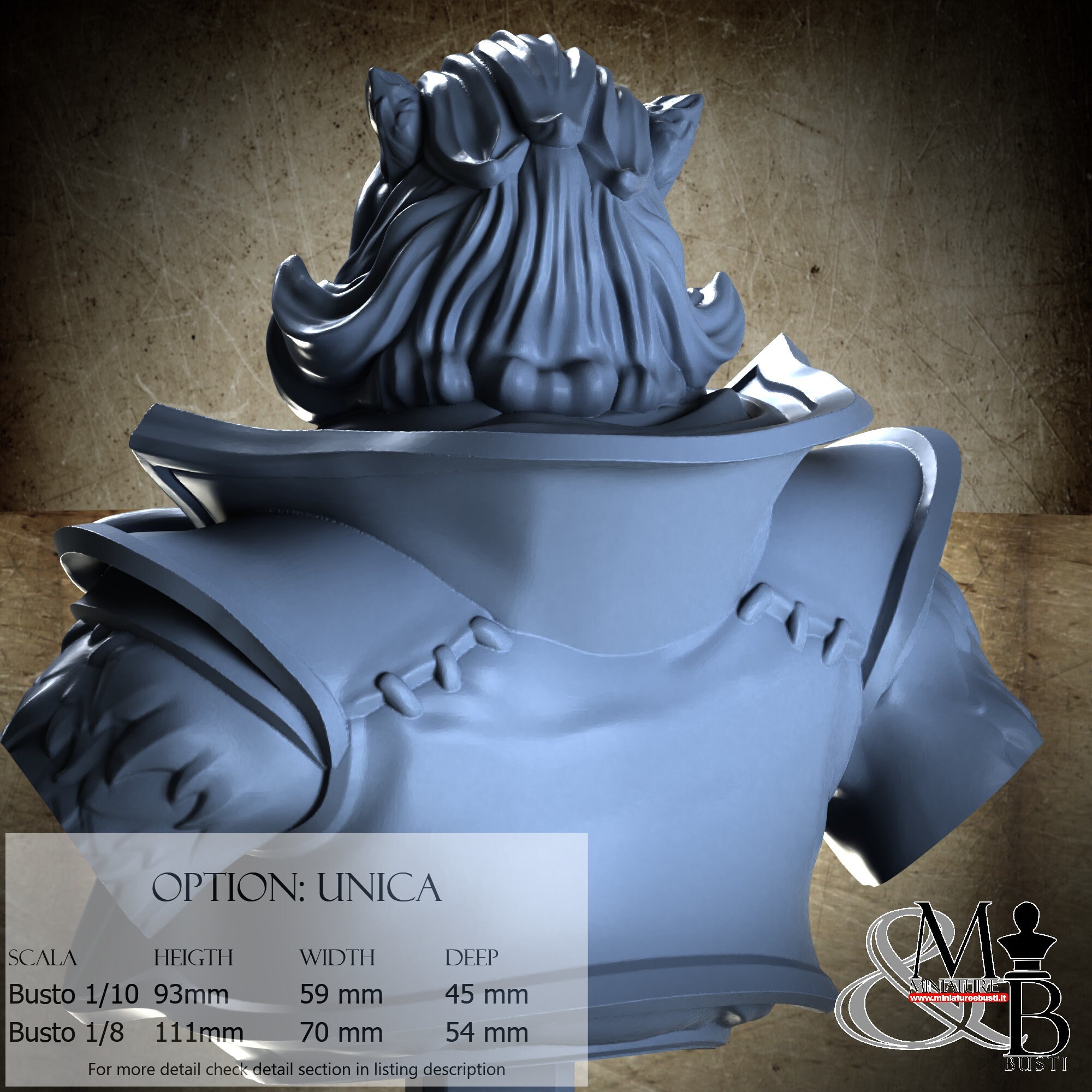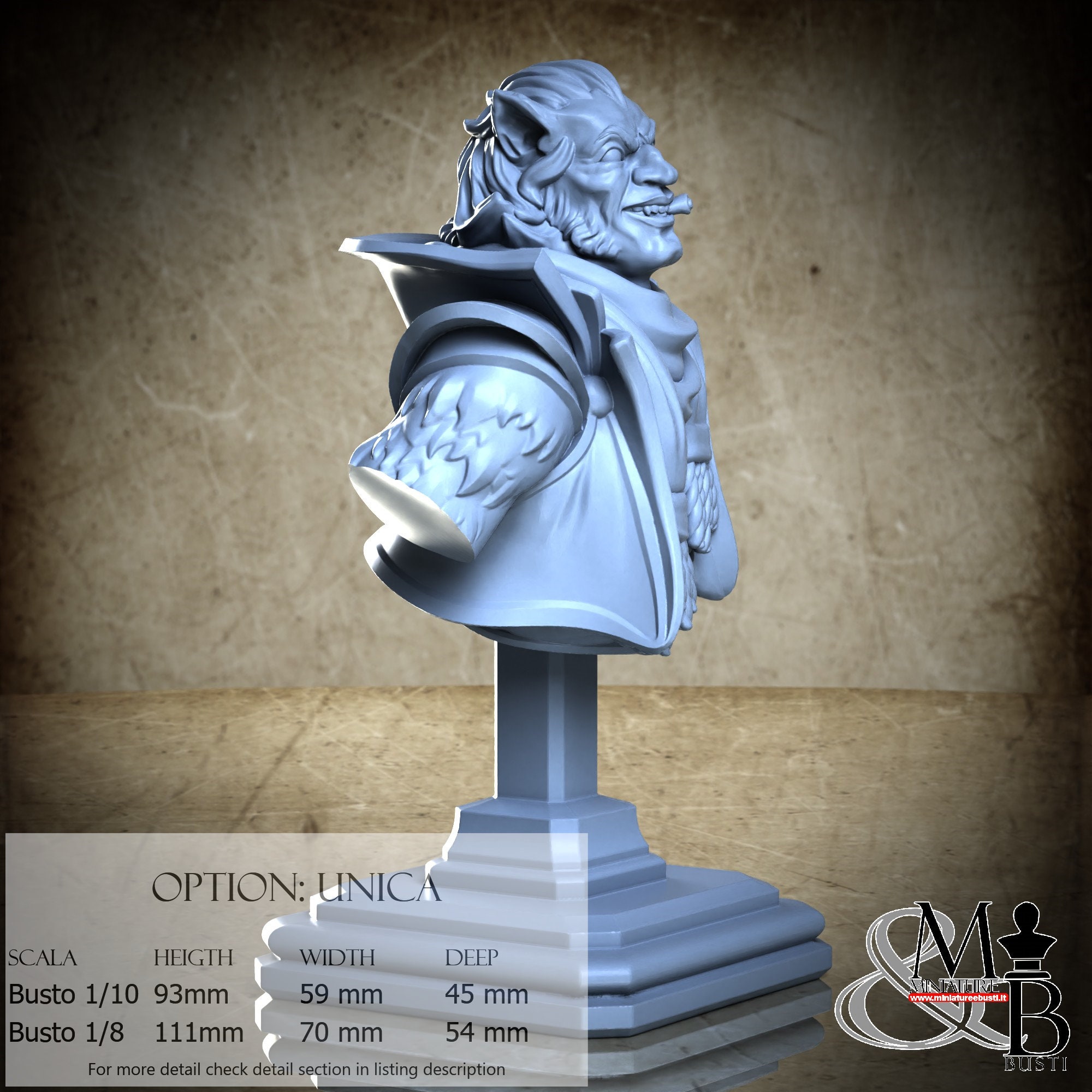 1/8 Bust Scale, cost €45.00 (Height: 111 mm, Width: 70 mm, Depth: 54 mm), composed of the following components: