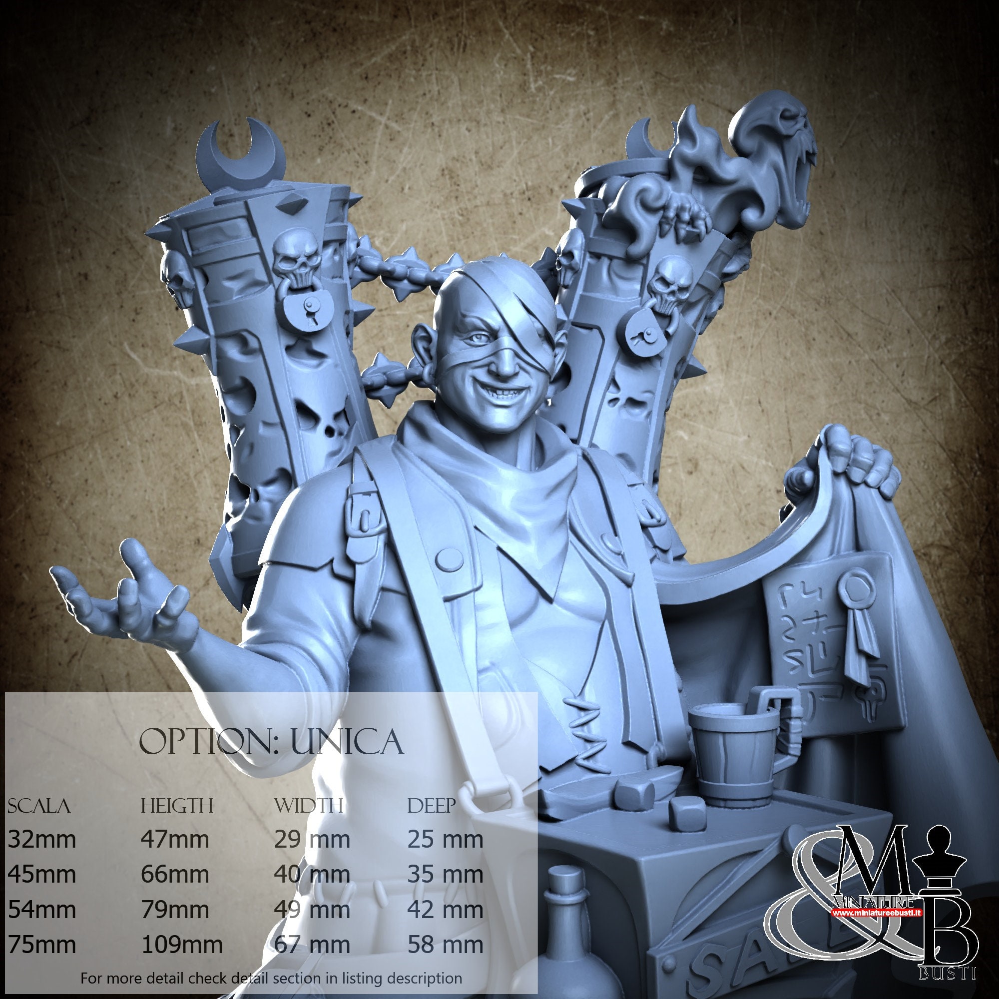 - Scale 32 mm, total measures Height: 47 mm, Width: 29 mm, Depth: 25 mm, €. 9.00