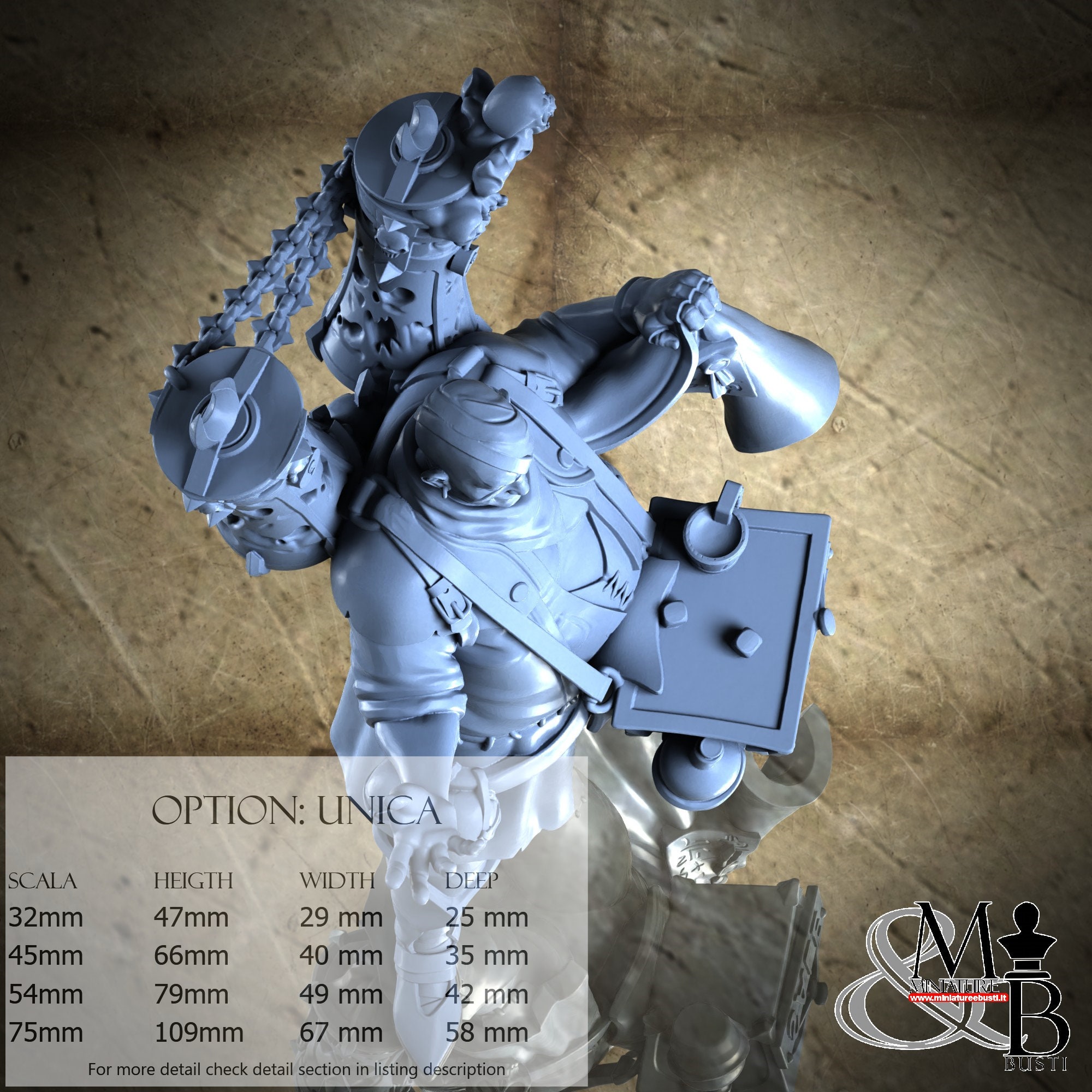 - Figure (1 piece) in Resin: Height: 79 mm, Width: 49 mm, Depth: 42 mm