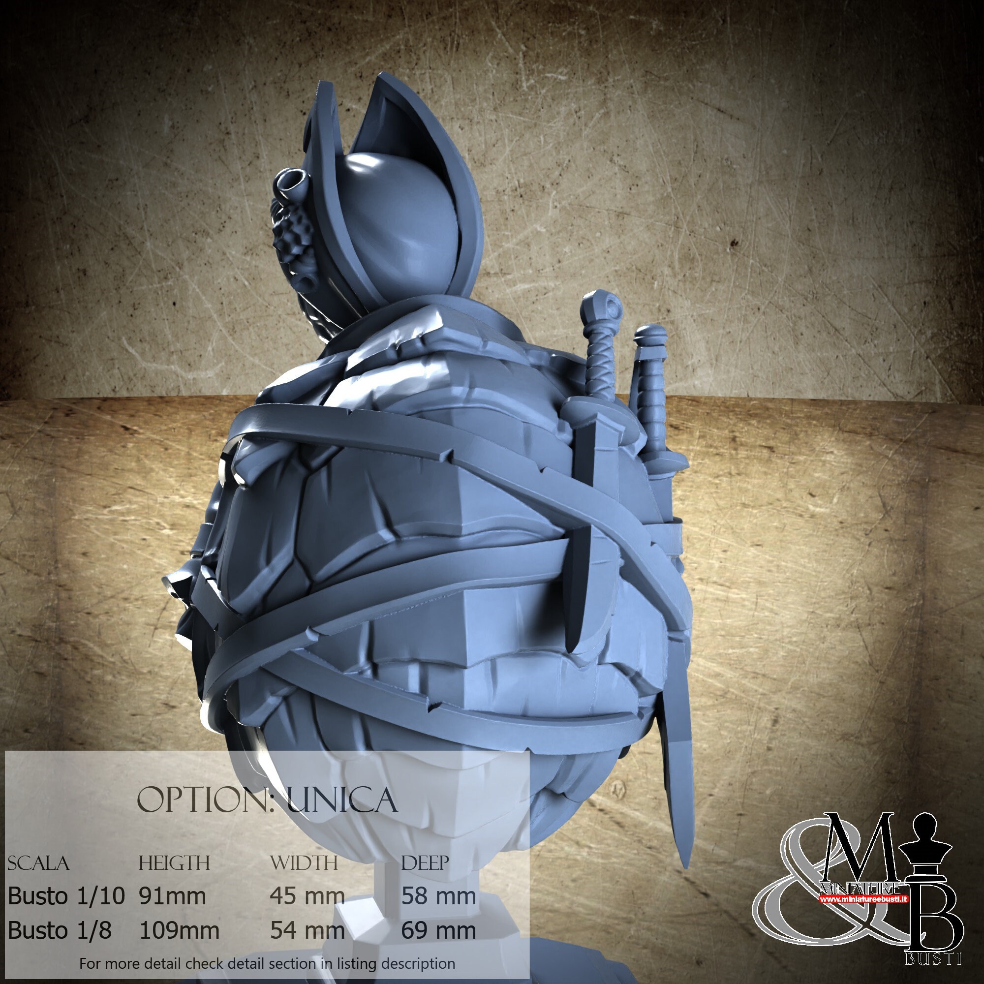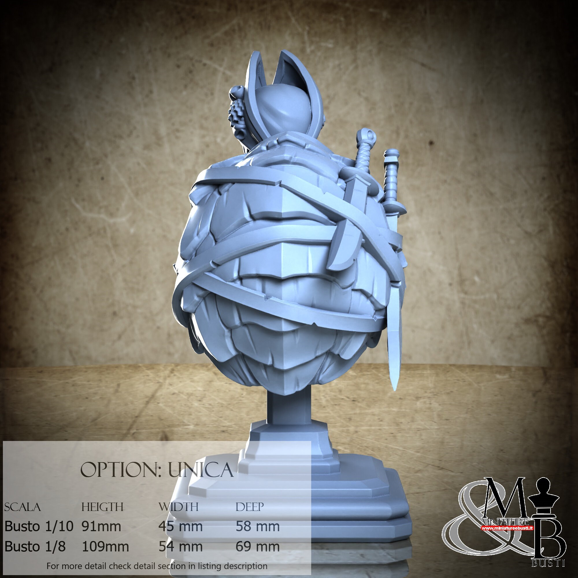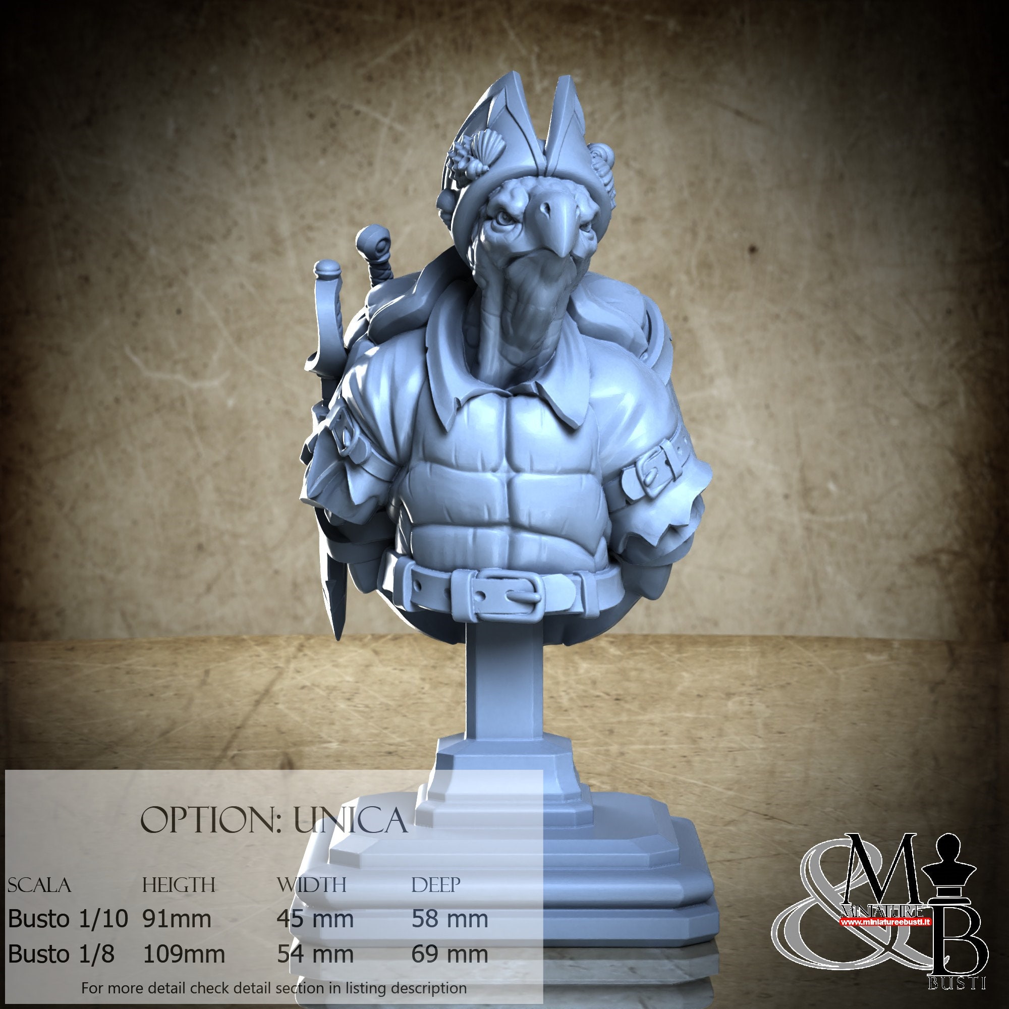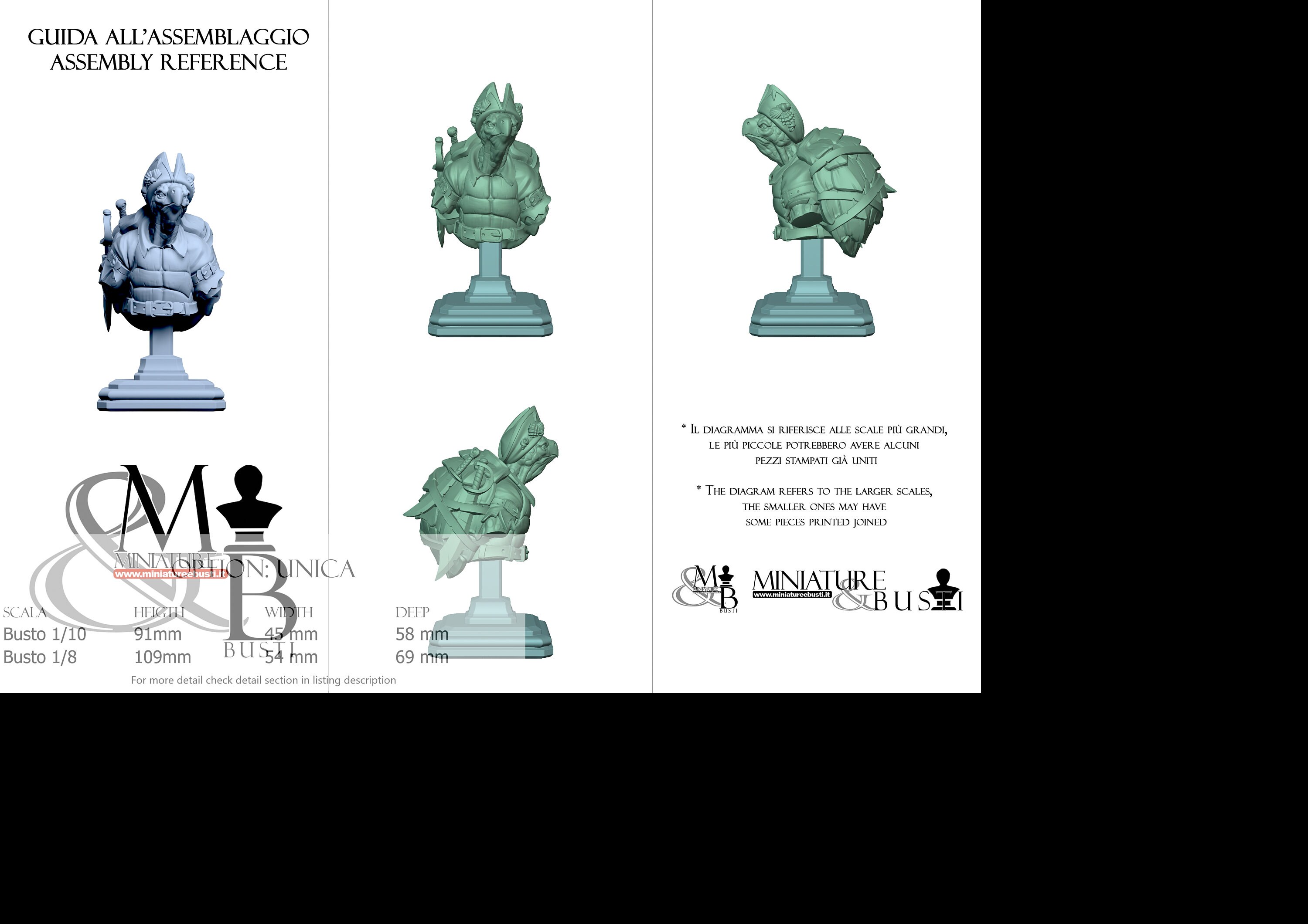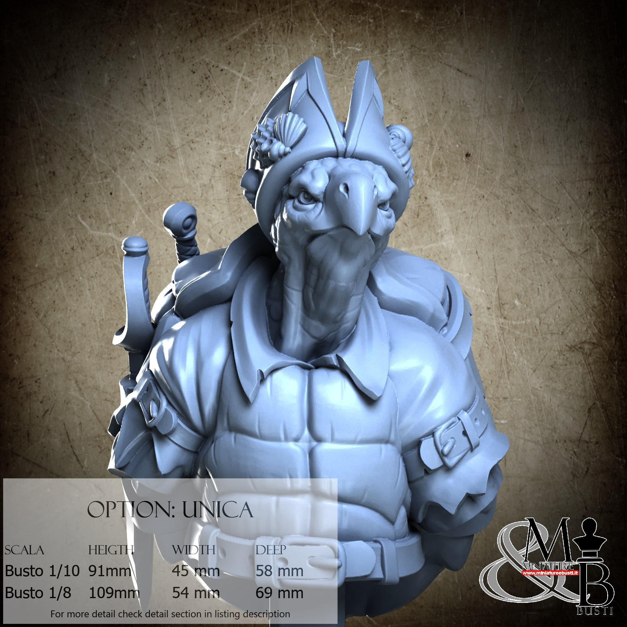 Bust Scale 1/10, cost €. 35.00 (Height: 91 mm, Width: 45 mm, Depth: 58 mm), composed of the following components: