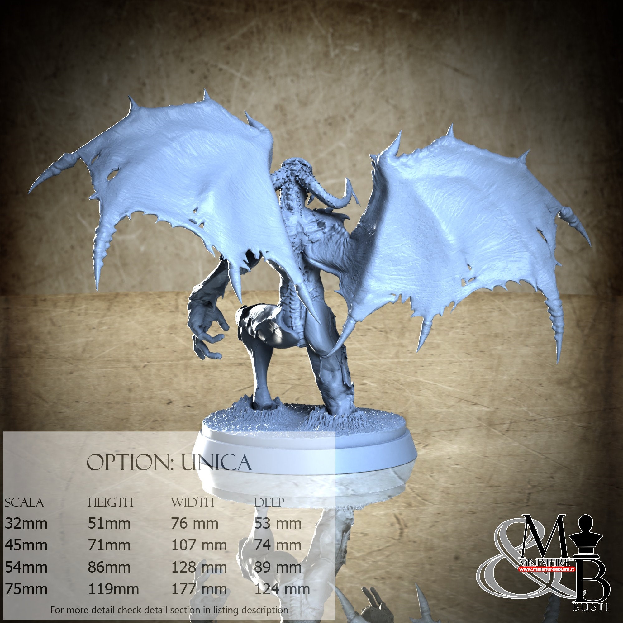 - Figure (1 piece) in Resin: Height: 51 mm, Width: 76 mm, Depth: 53 mm