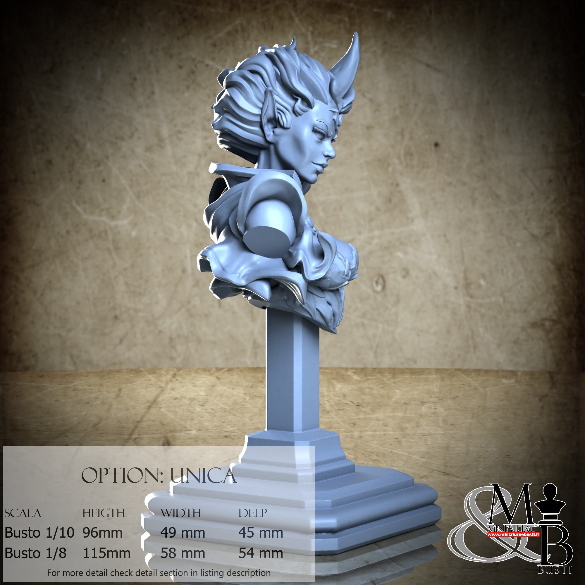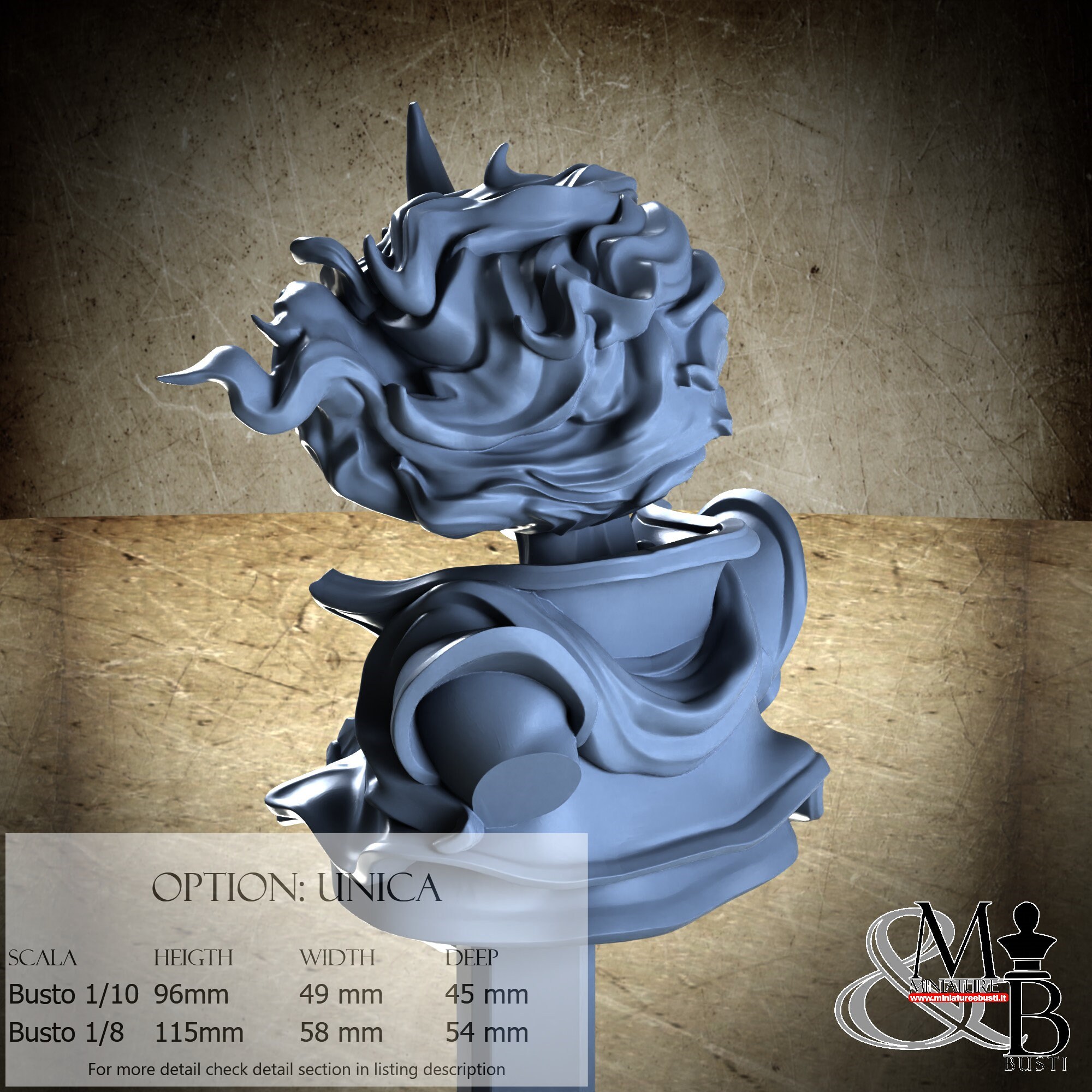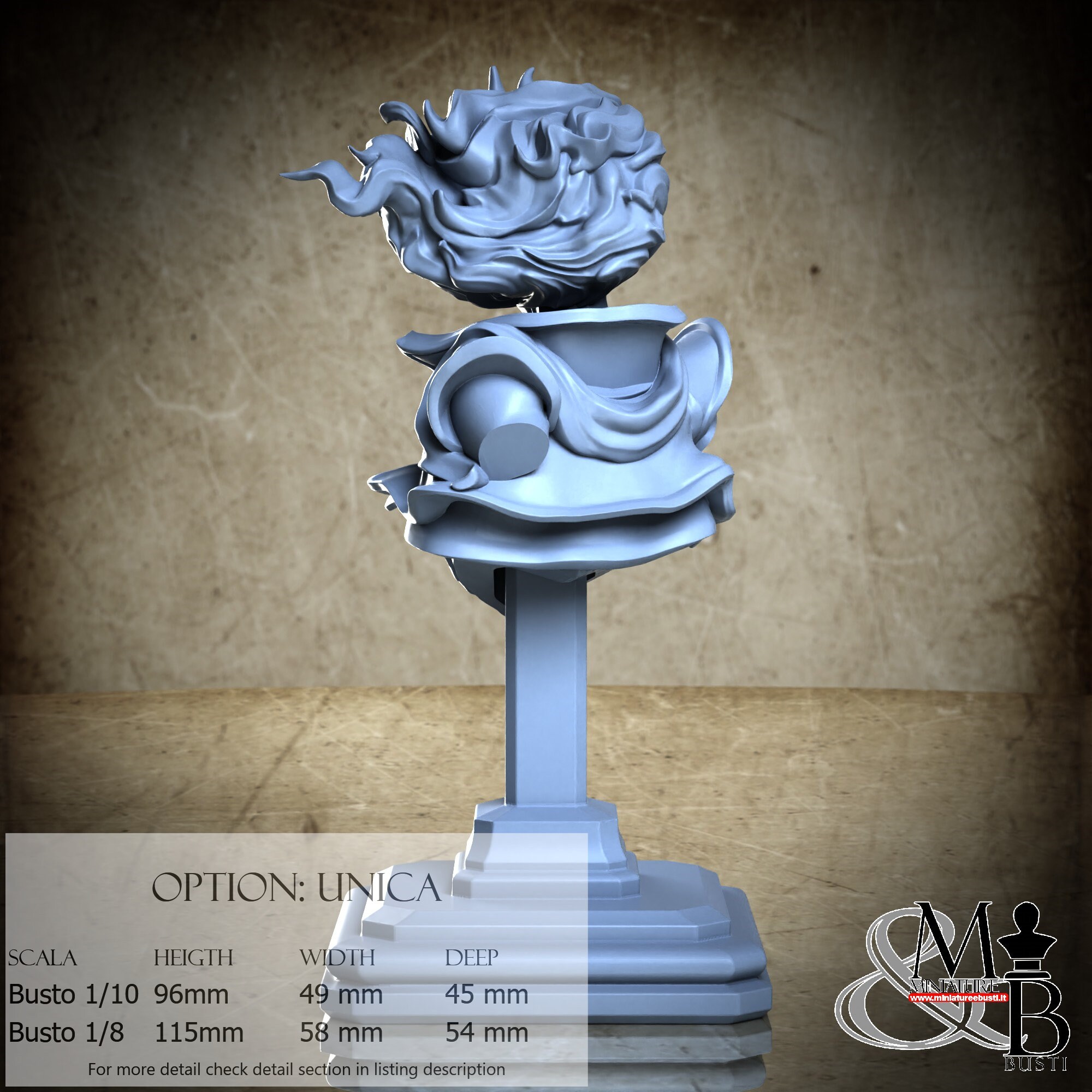 Bust Scale 1/10, cost €. 35.00 (Height: 96 mm, Width: 49 mm, Depth: 45 mm), composed of the following components: