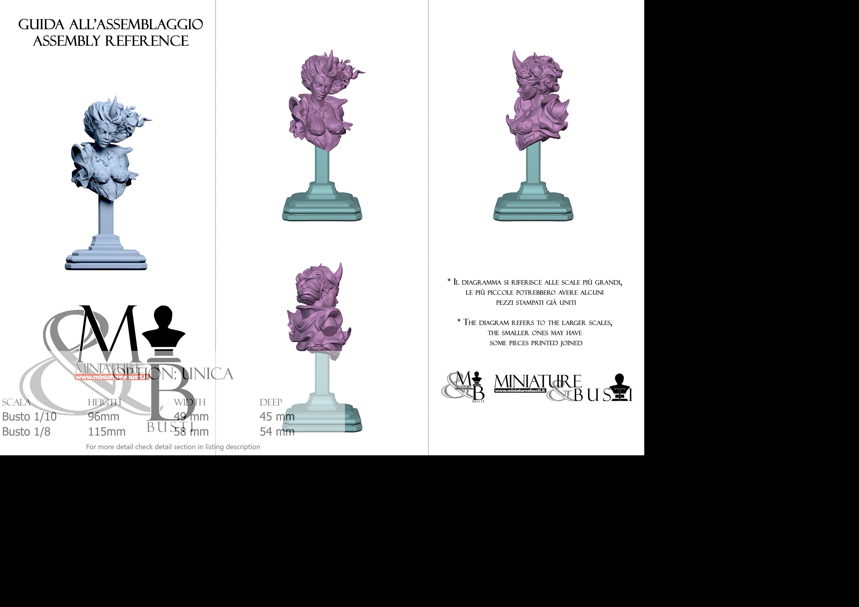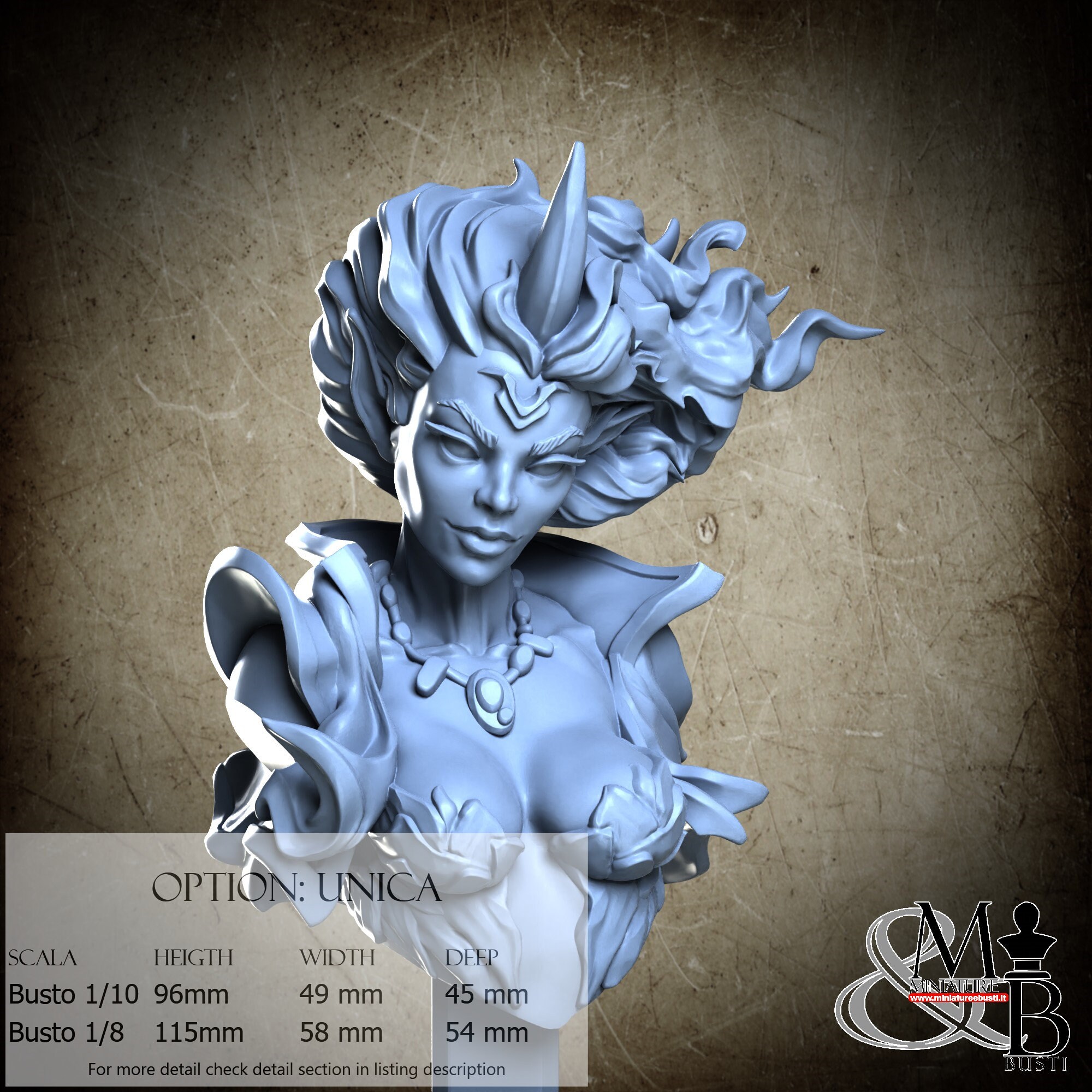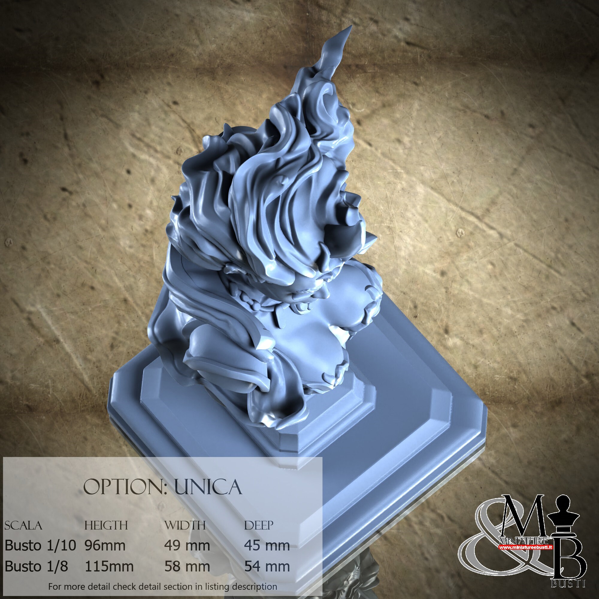 Bust Scale 1/10, cost €. 35.00 (Height: 96 mm, Width: 49 mm, Depth: 45 mm), composed of the following components: