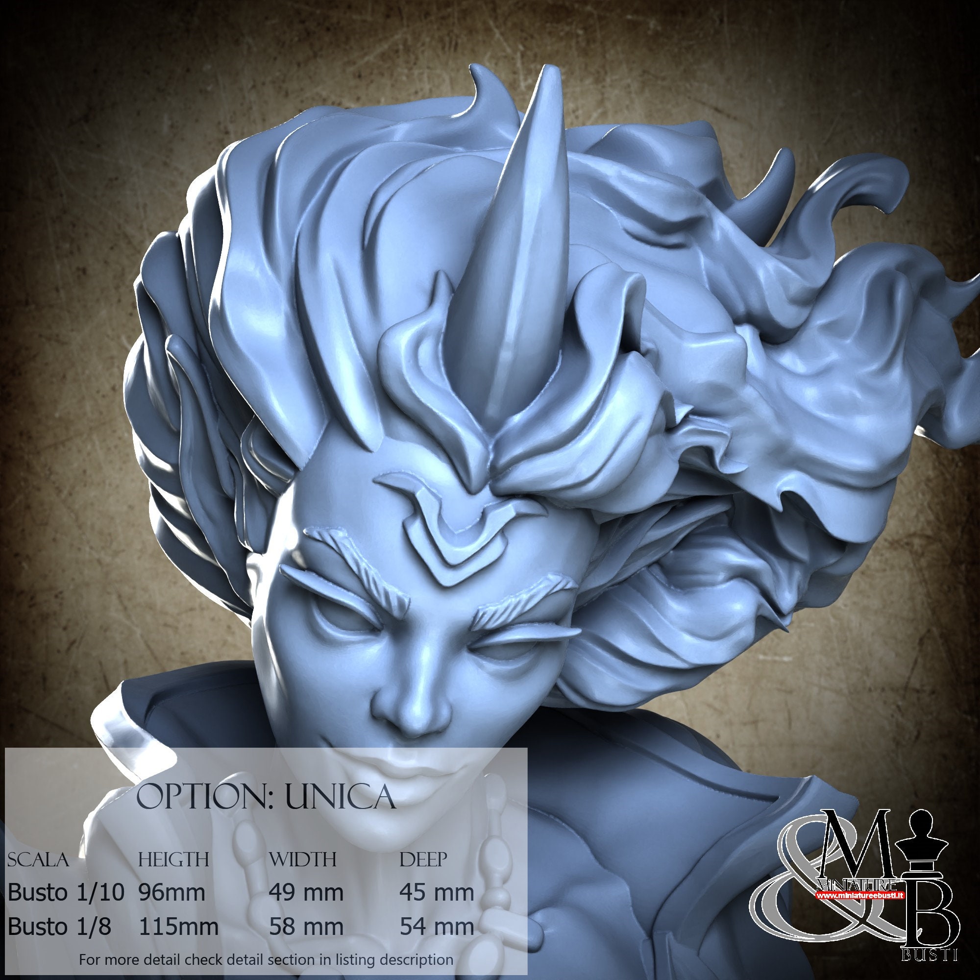 Bust Scale 1/8, cost €. 45.00 (Height: 115 mm, Width: 58 mm, Depth: 54 mm), composed of the following components: