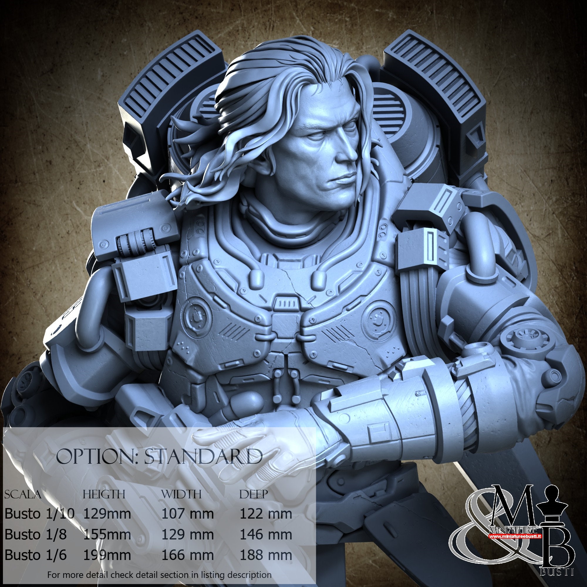 - Scala Busto 1/10, misure totali Altezza: 129 mm, Larghezza: 107 mm, Profondità: 122 mm, €. 35.00