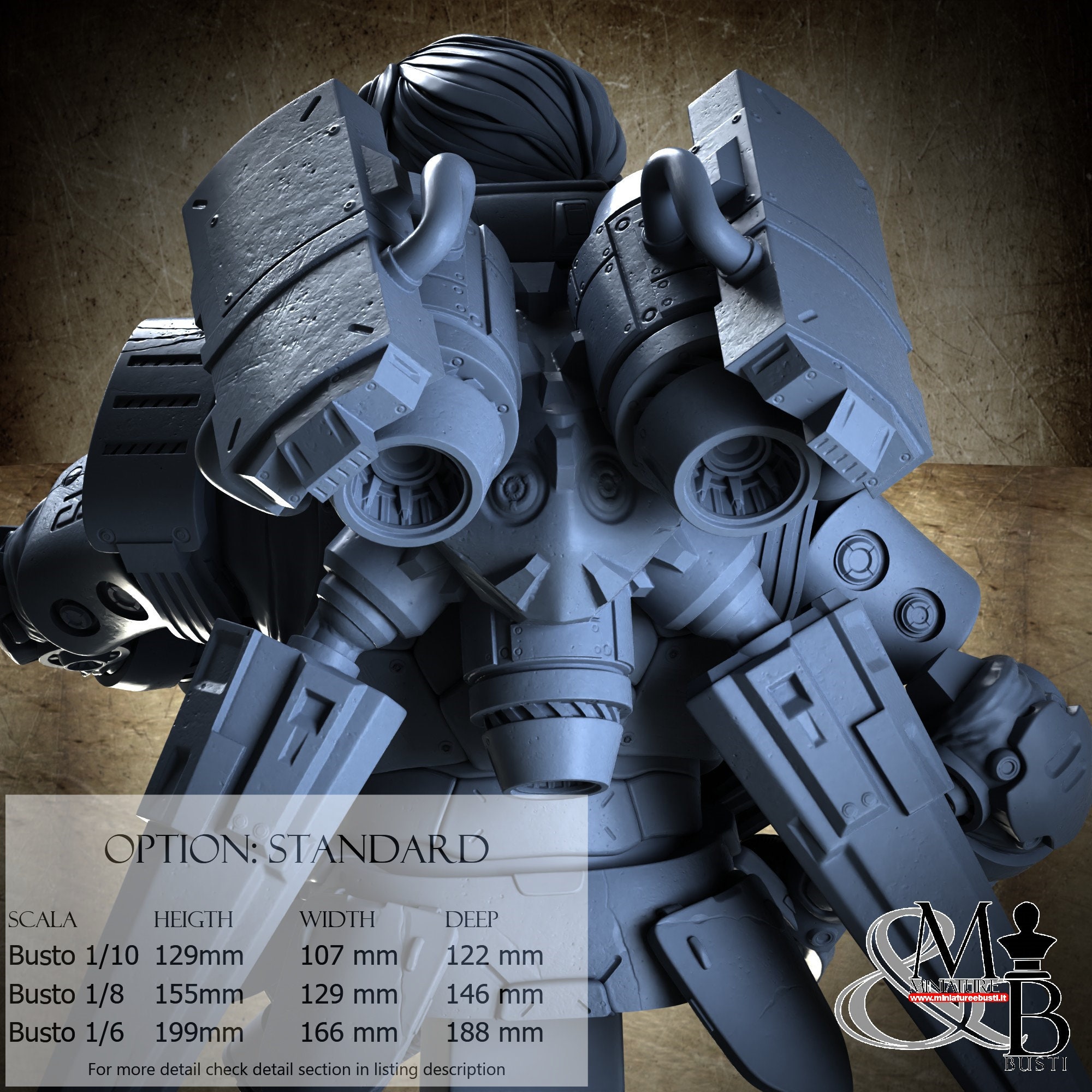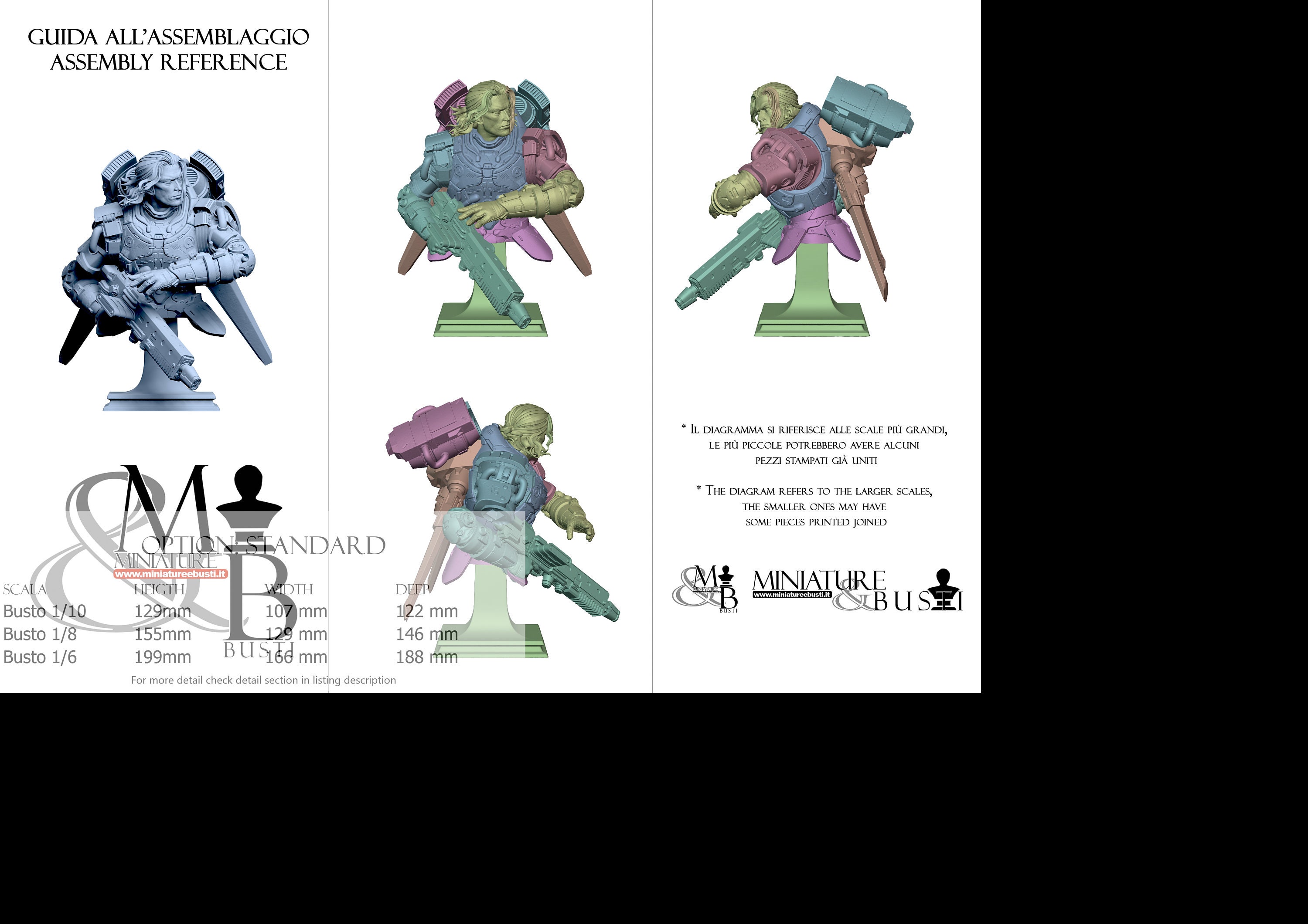 Scala Busto 1/8, costo €. 60.00 ( Altezza: 155 mm, Larghezza: 129 mm, Profondità: 146 mm), composta dai seguenti componenti: