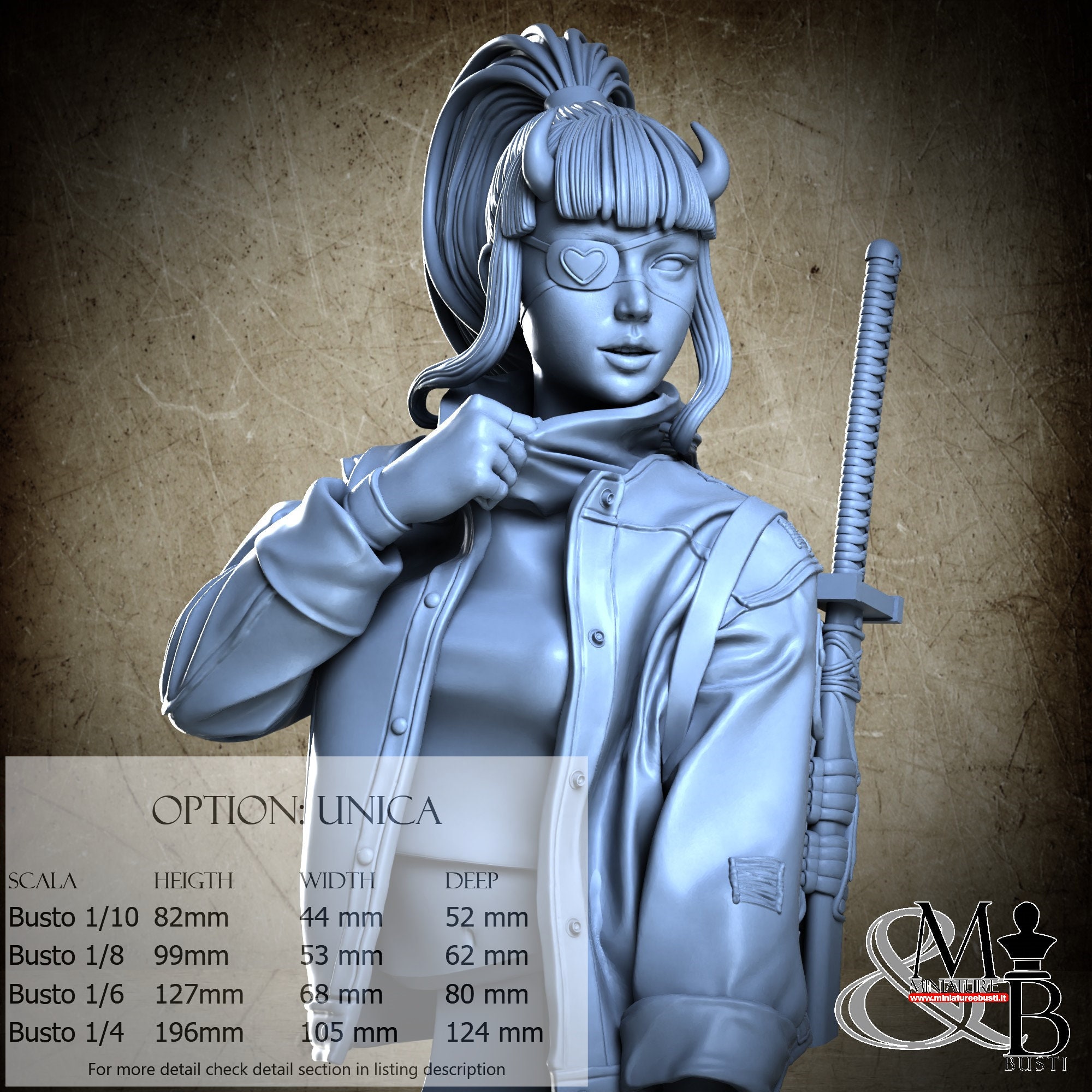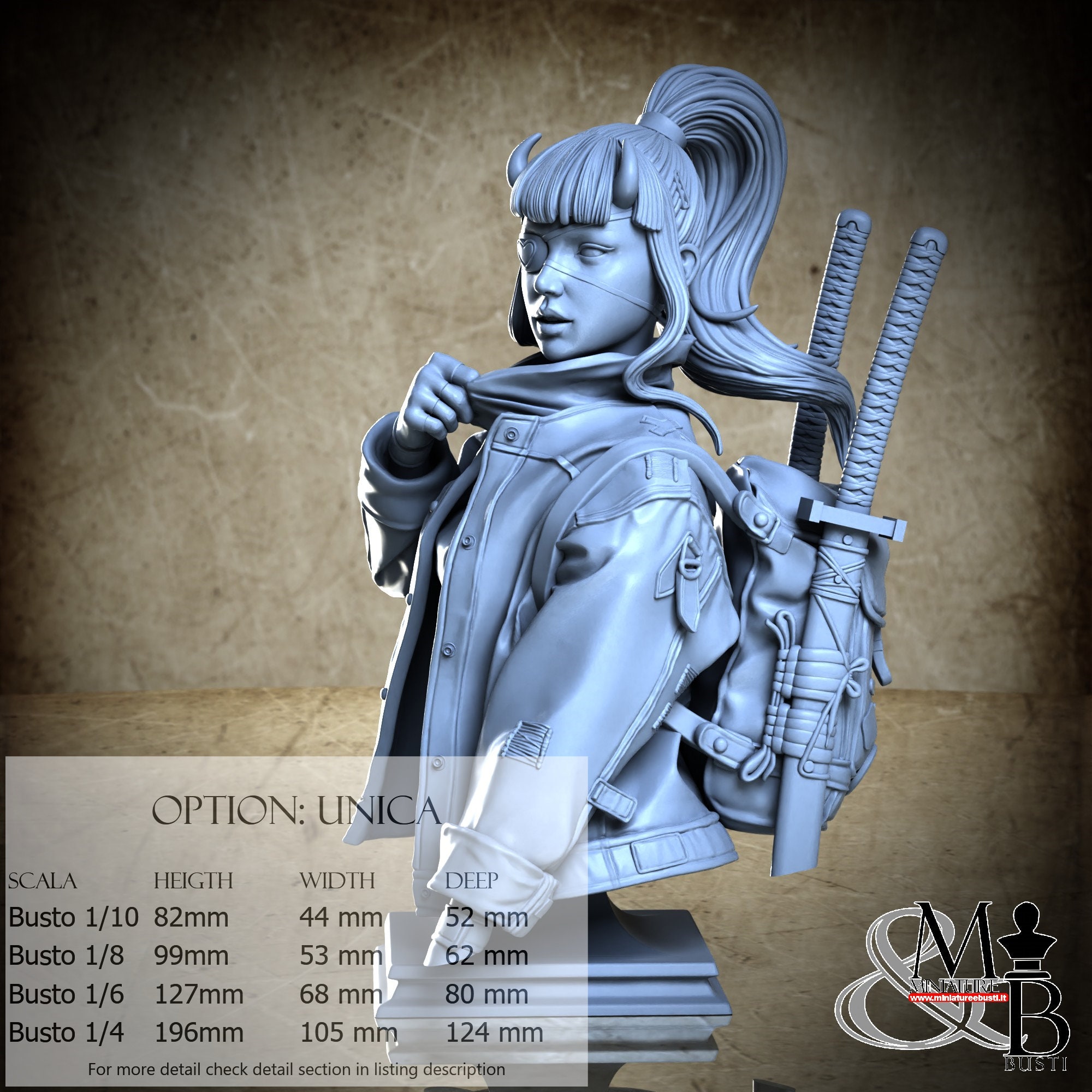 Bust Scale 1/10, cost €35.00 (Height: 82 mm, Width: 44 mm, Depth: 52 mm), composed of the following components: