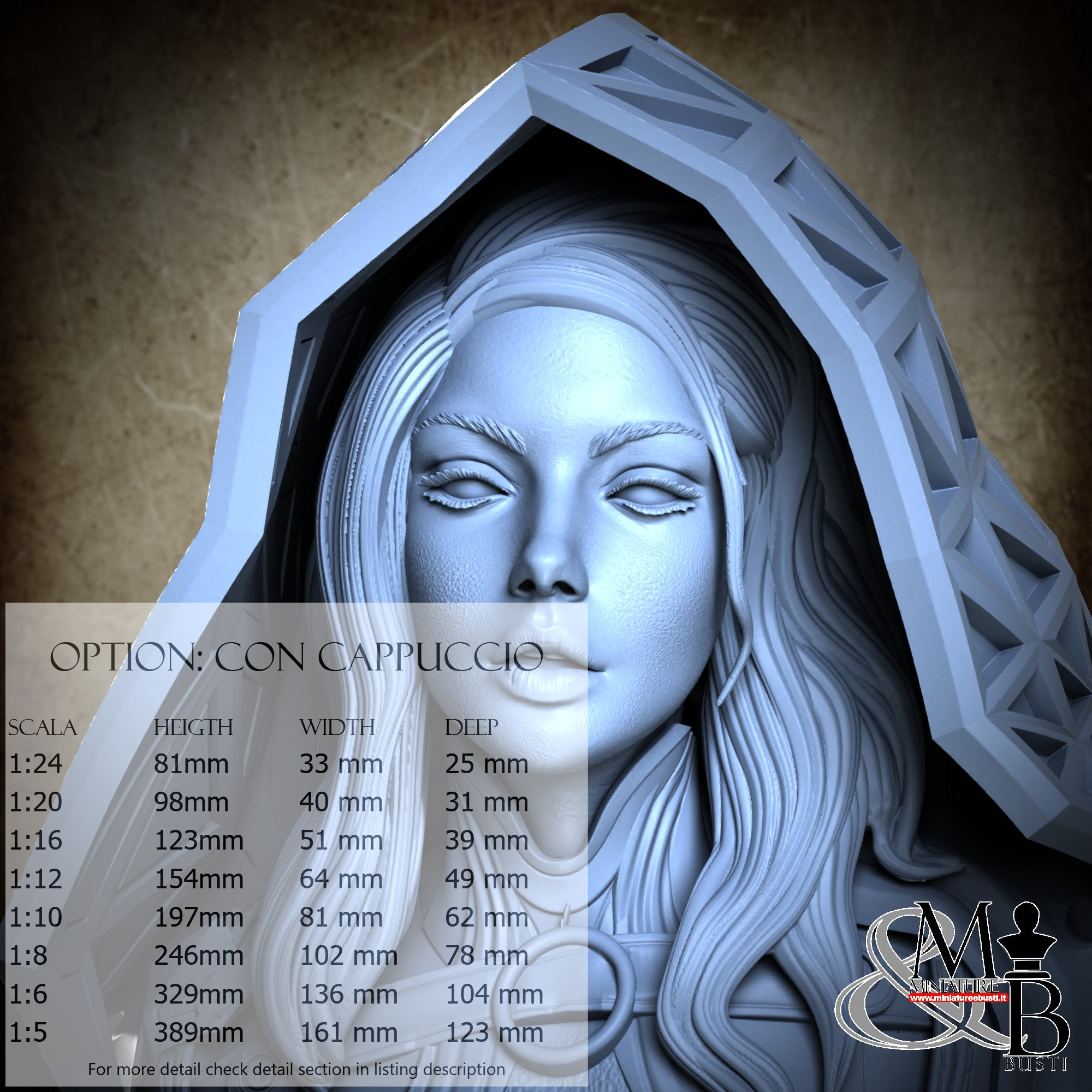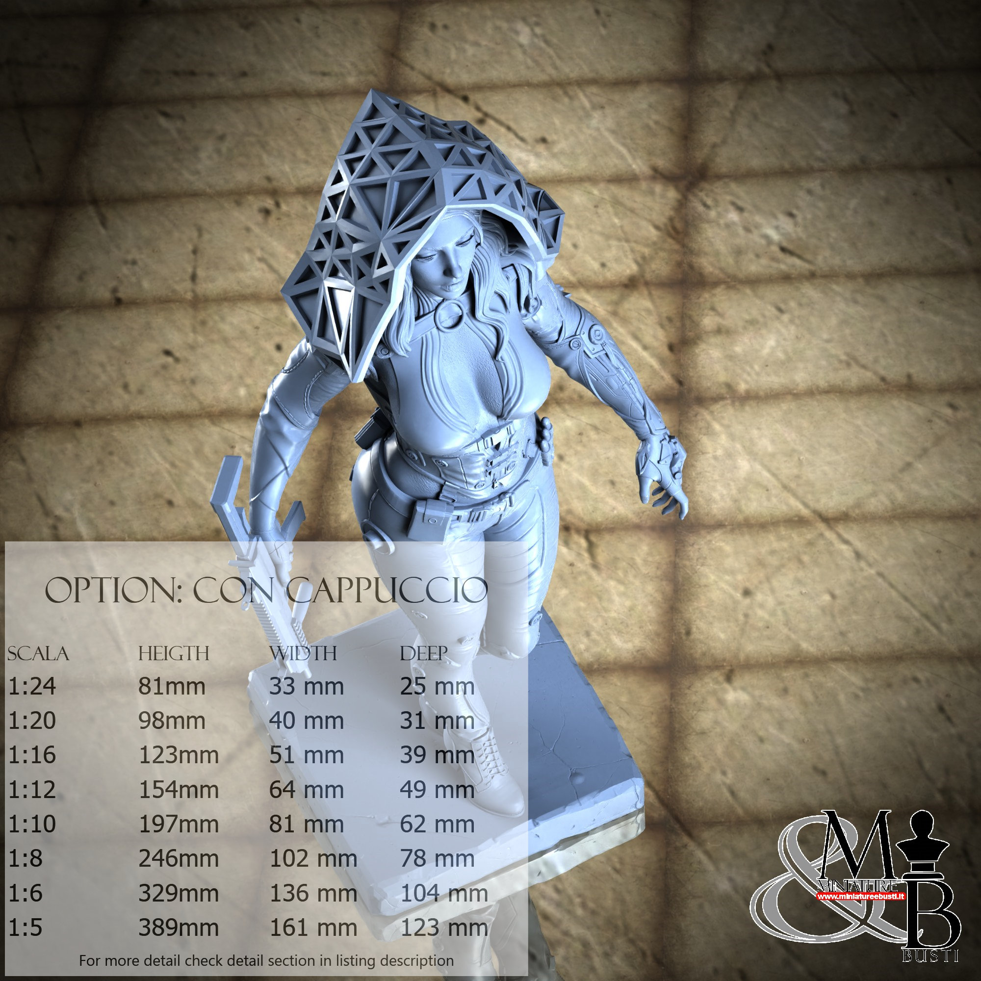 Variante Con Cappuccio, disponibile nelle seguenti scale: